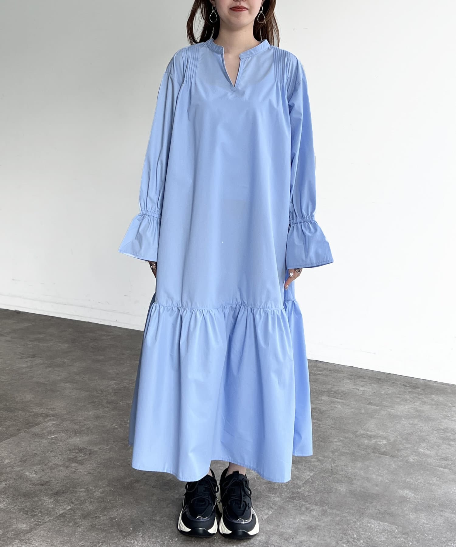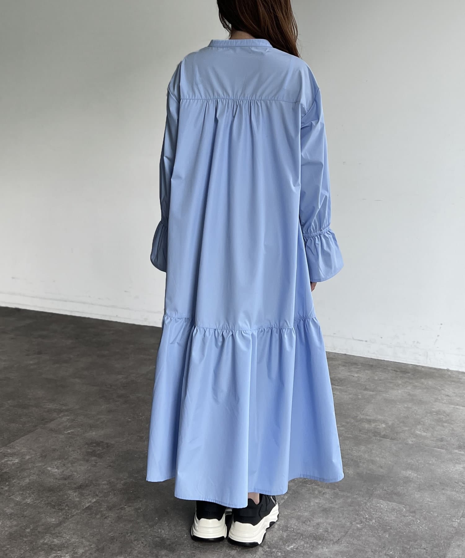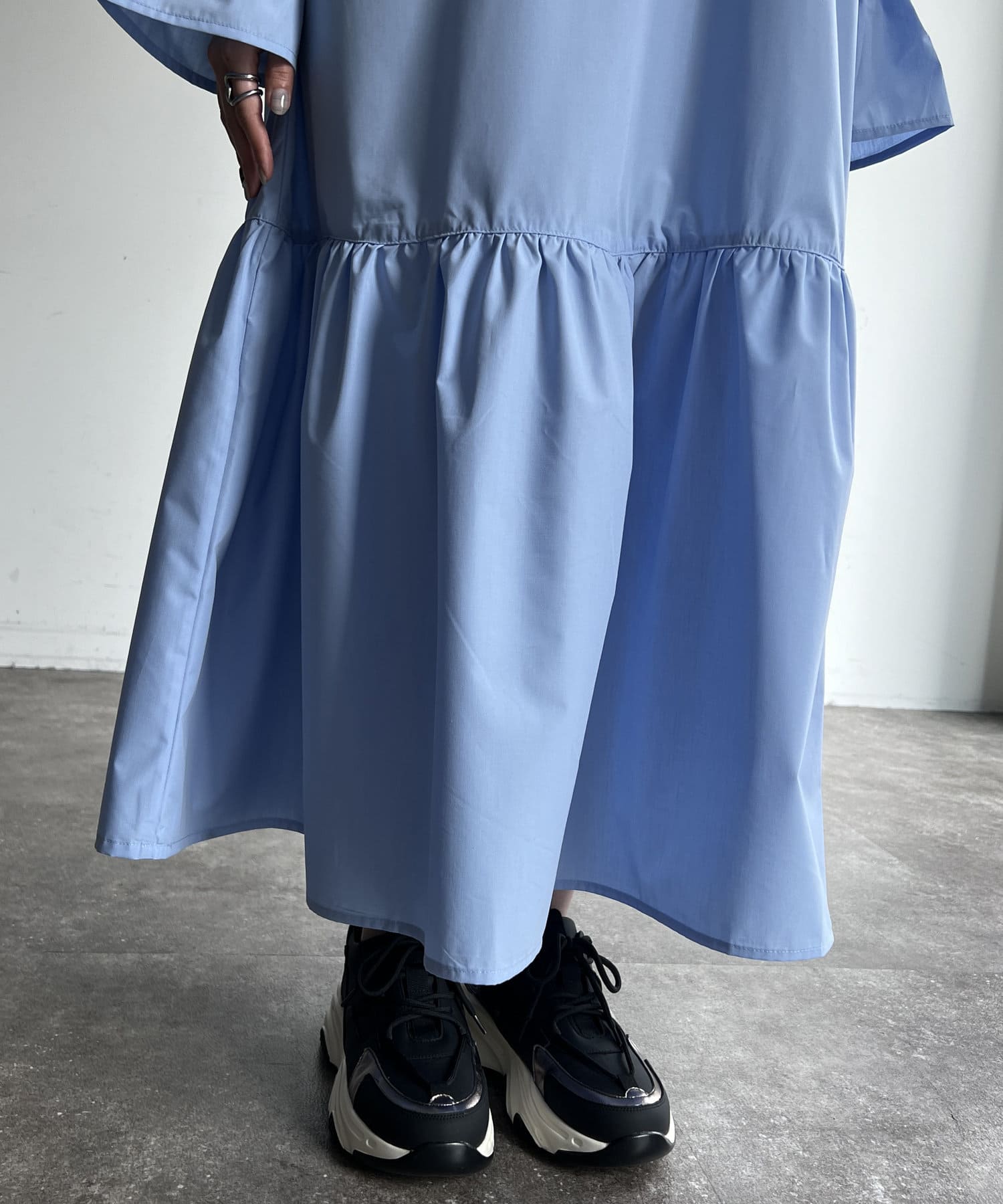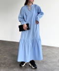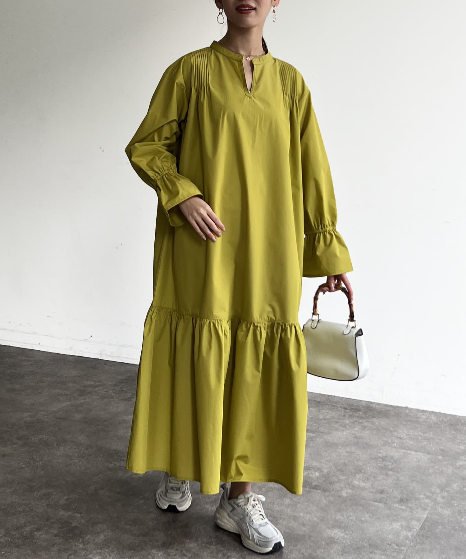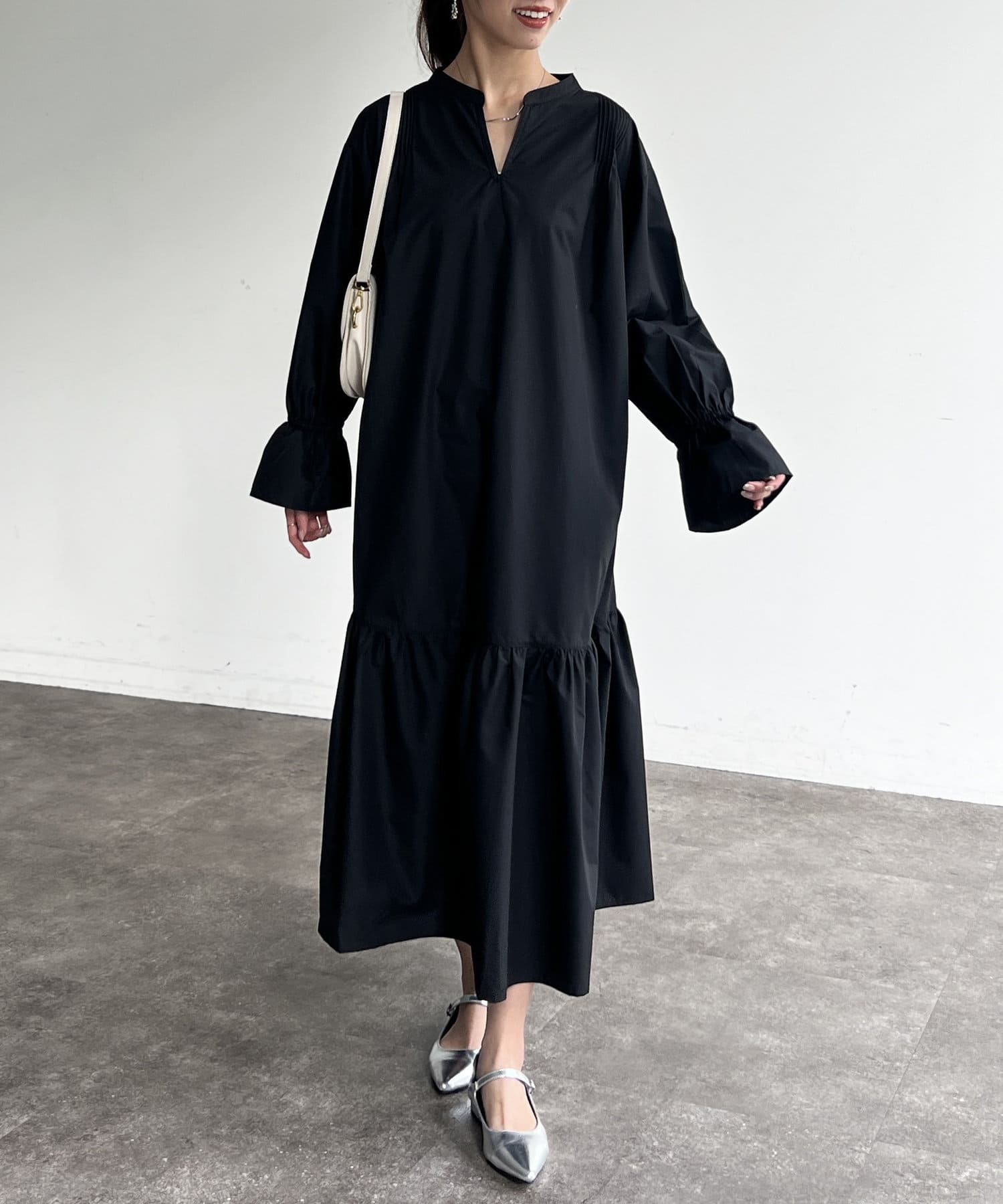 裾に向かって広がりの出るシルエットで、切り替えのティアードシルエットが大人ガーリーな雰囲気を醸し出してくれます。
