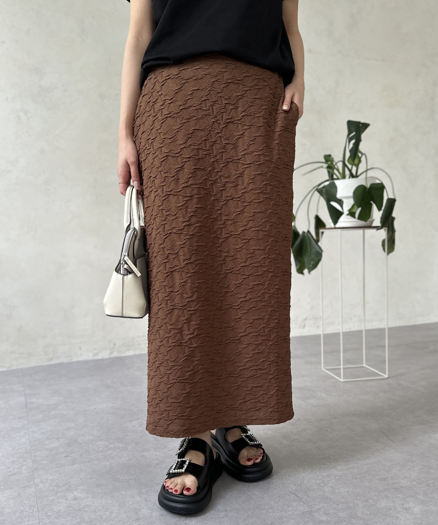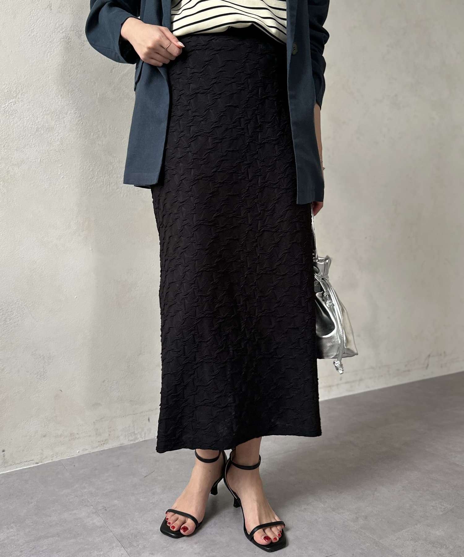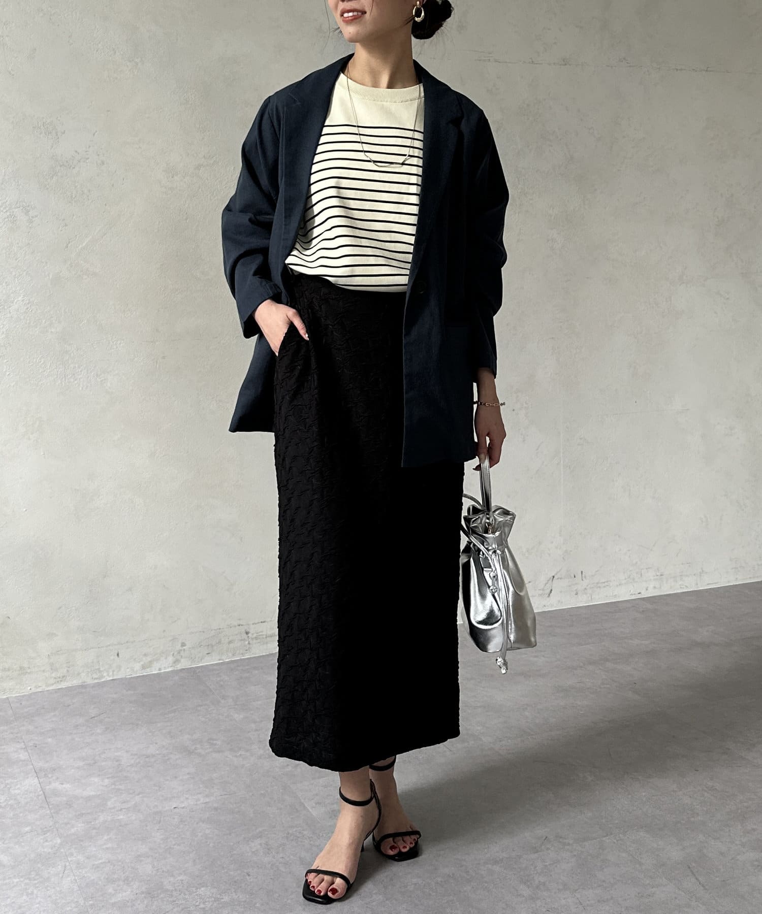 コーディネートを格上げしてくれるジャガードナロースカート。