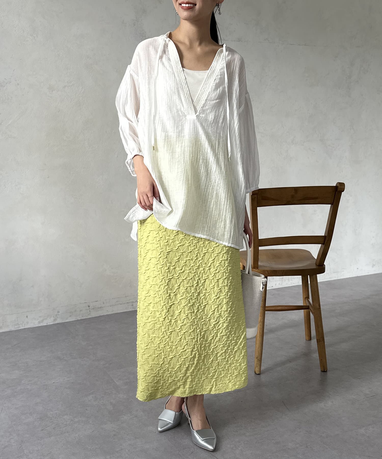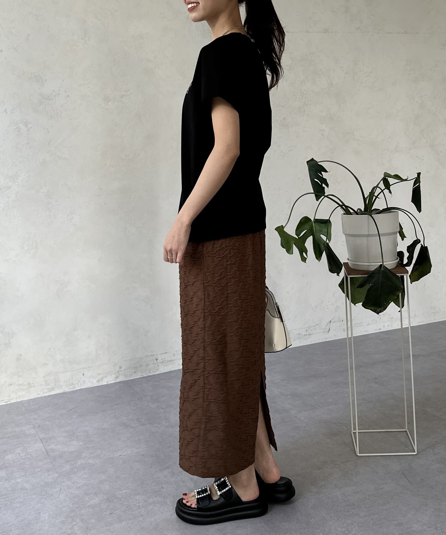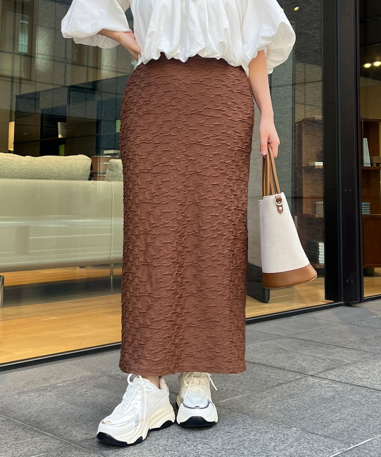 コーディネートを格上げしてくれるジャガードナロースカート。