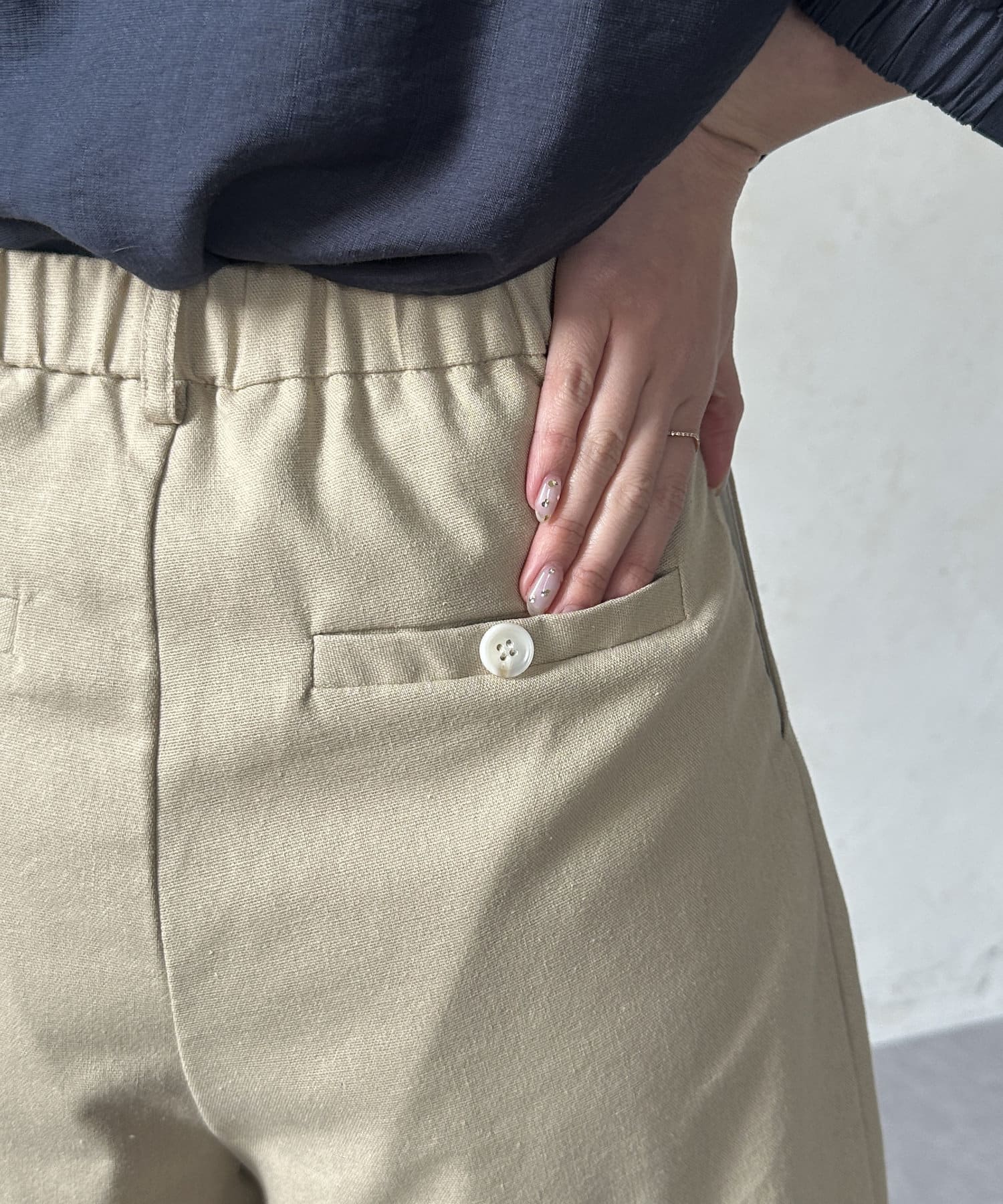 後ろウエストがゴム仕様なのでストレスフリーな履き心地で、