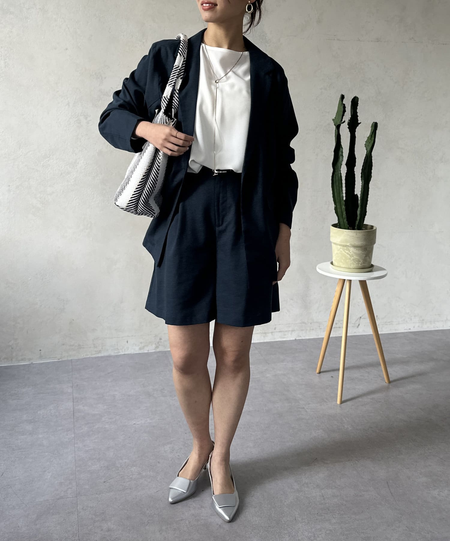 テーラードジャケットとの組み合わせはもちろん、