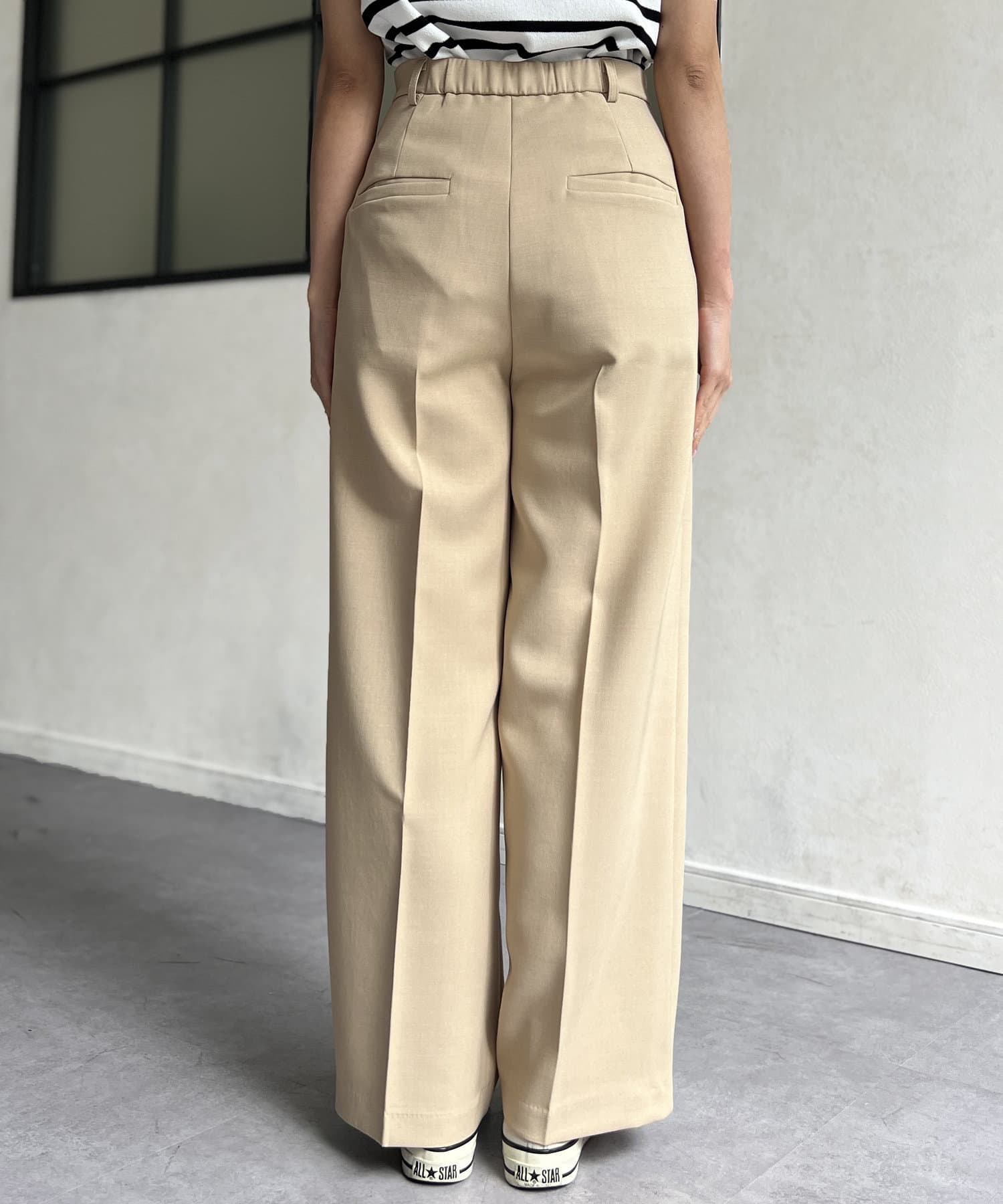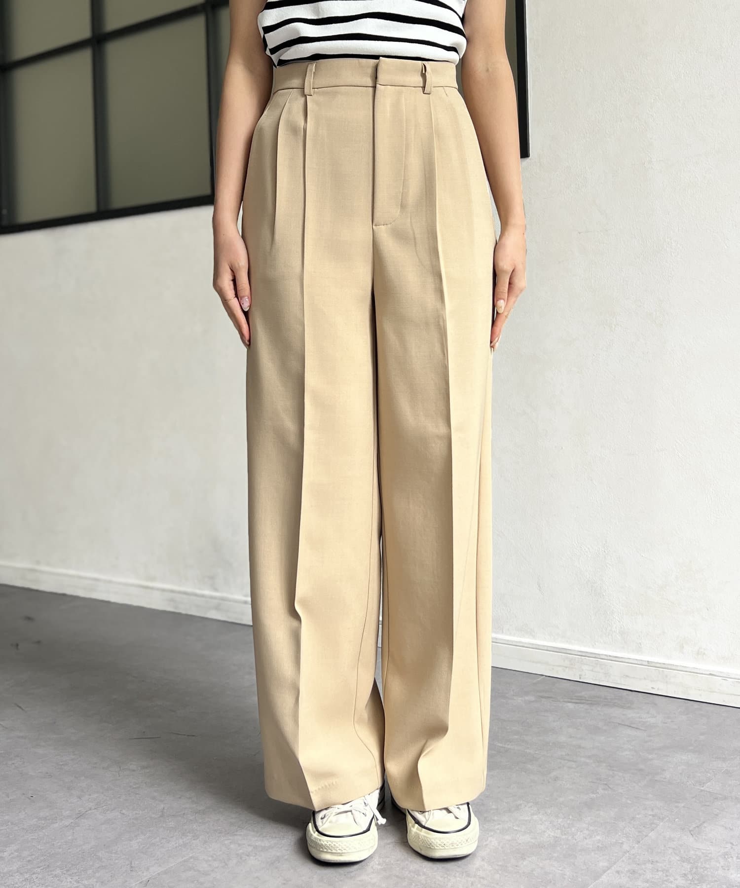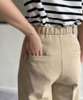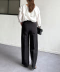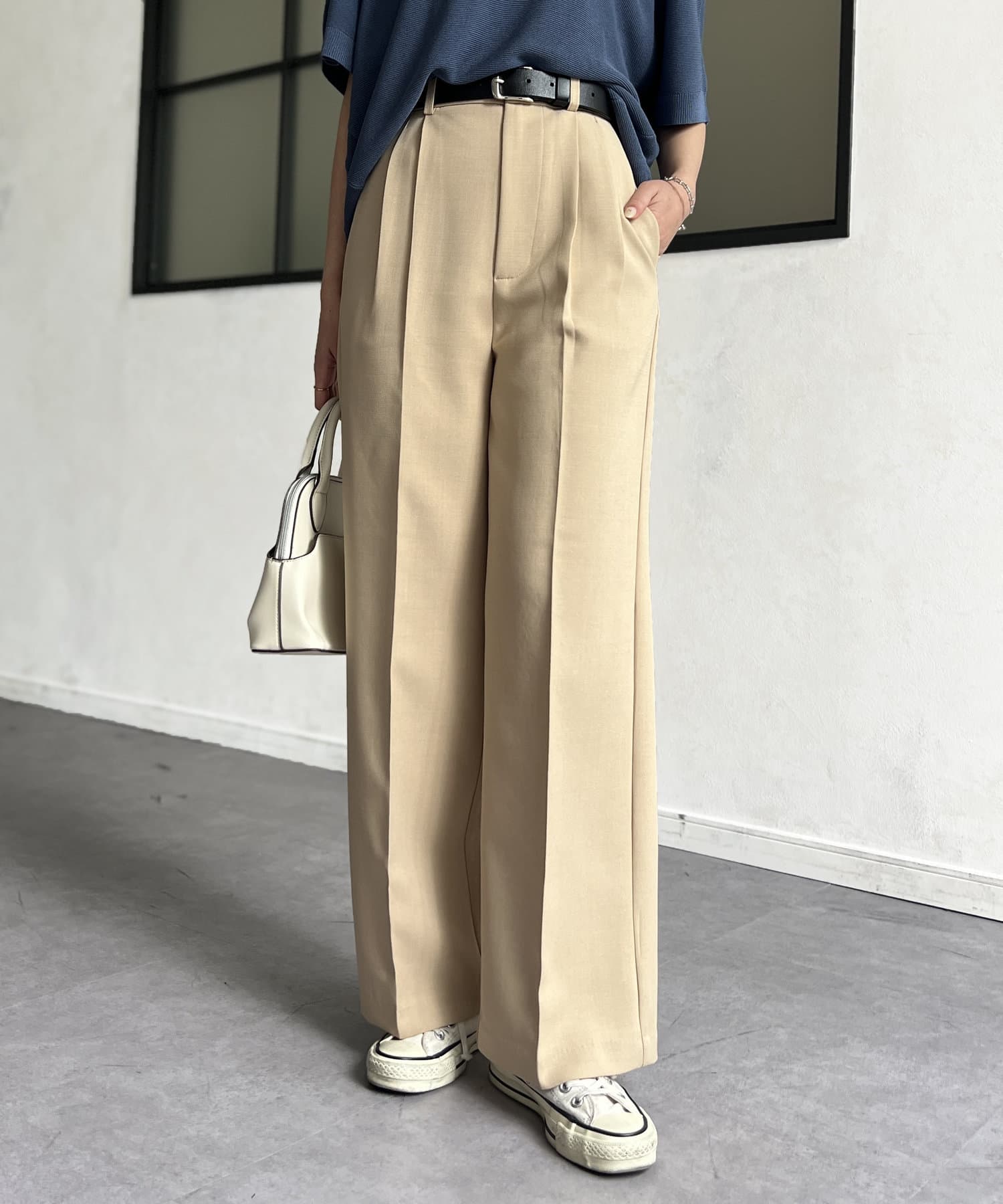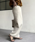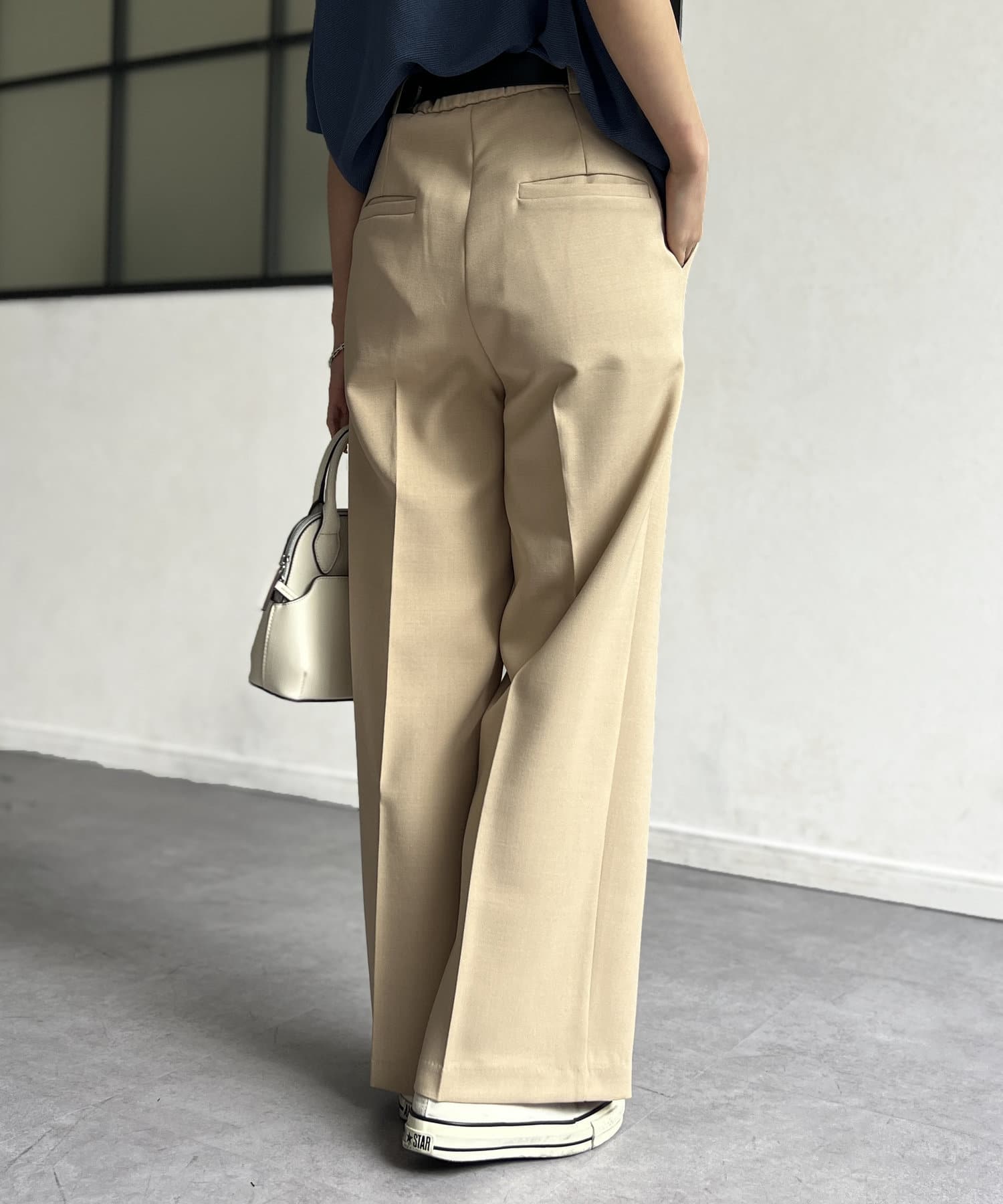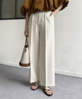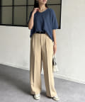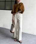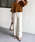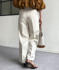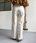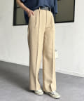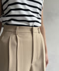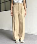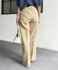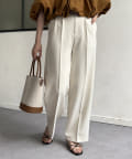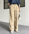 ウエストにタックが入っているので、トップスをタックインしたスタイルや前だけ引っ掛けメリハリを付けた着こなしがオススメ。