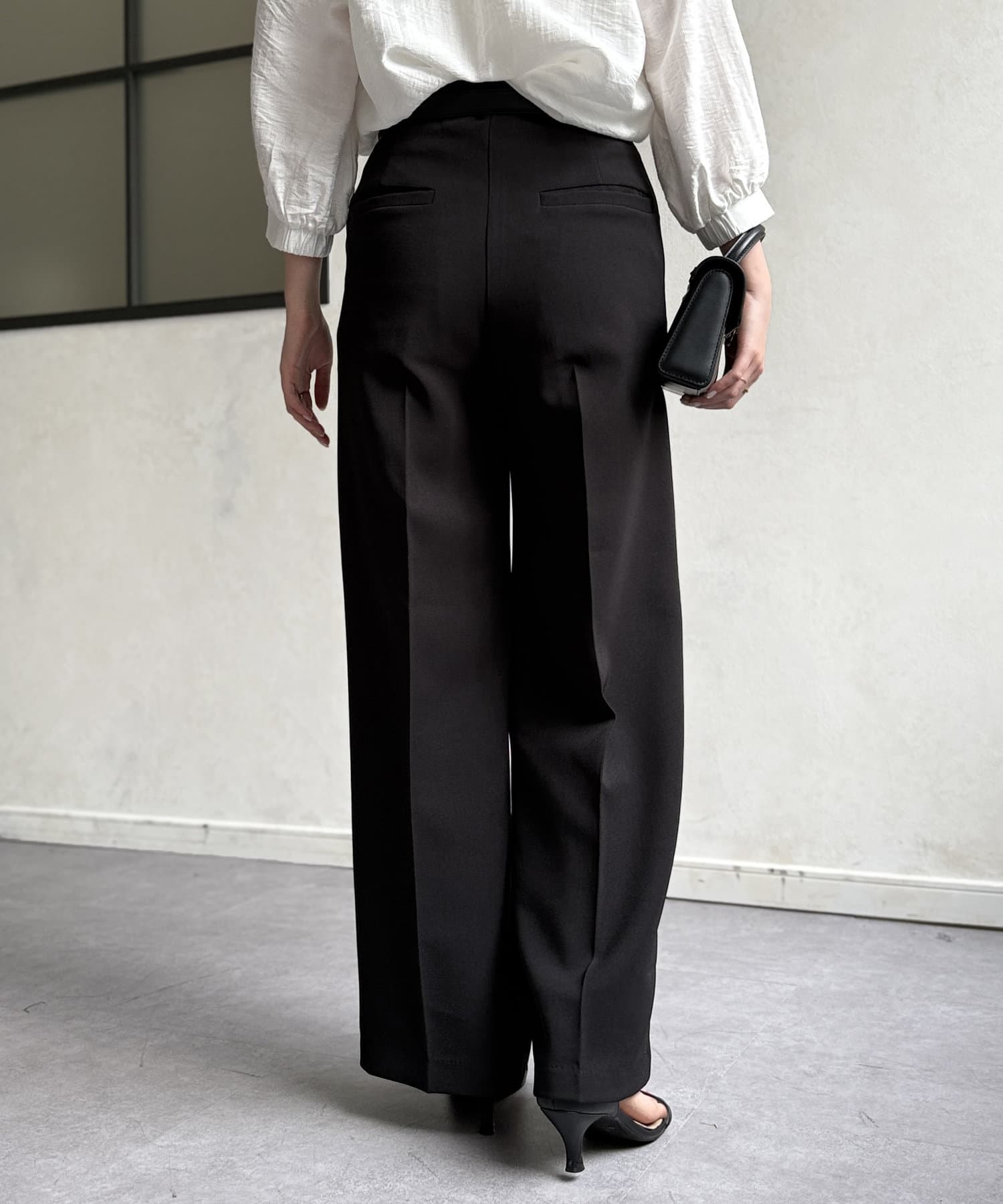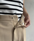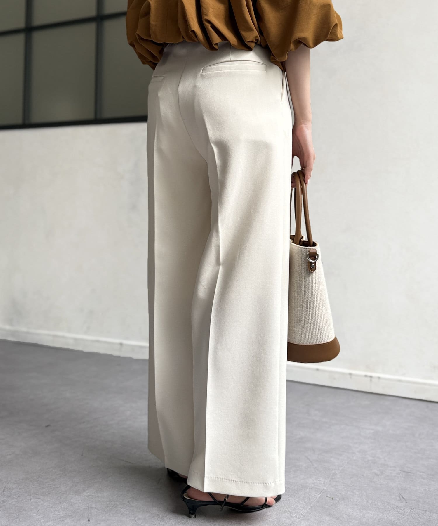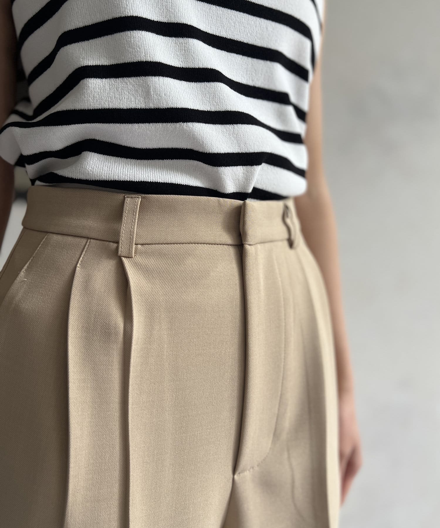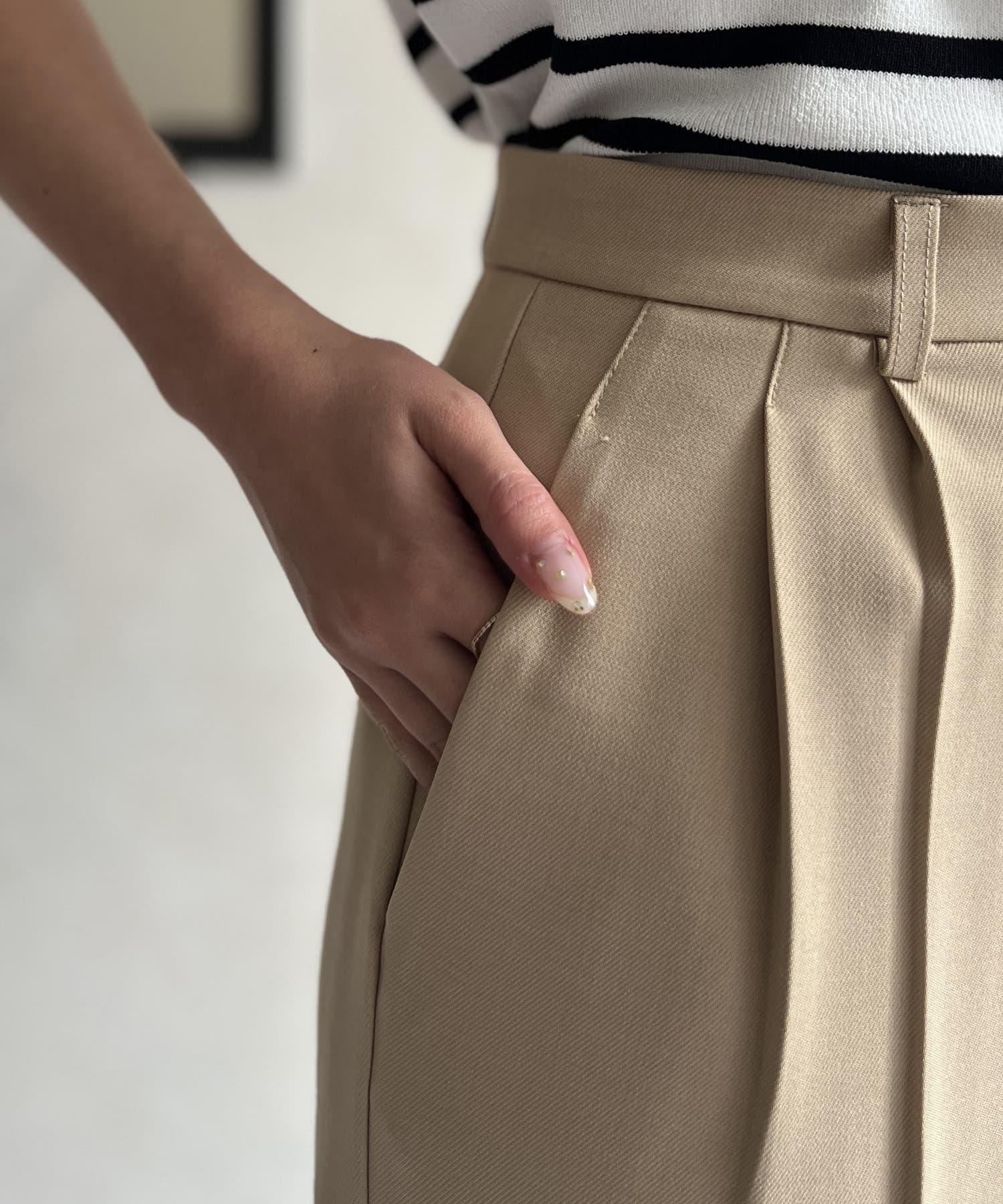 フロントにタックを入れることで立体感が生まれ、気になるウエスト周りや太ももをしっかりとカバーします。