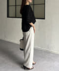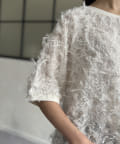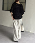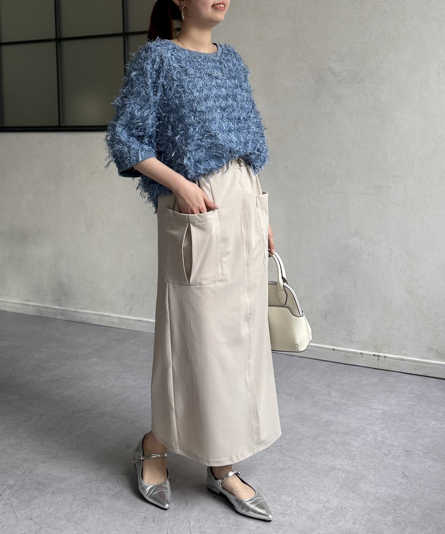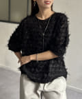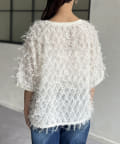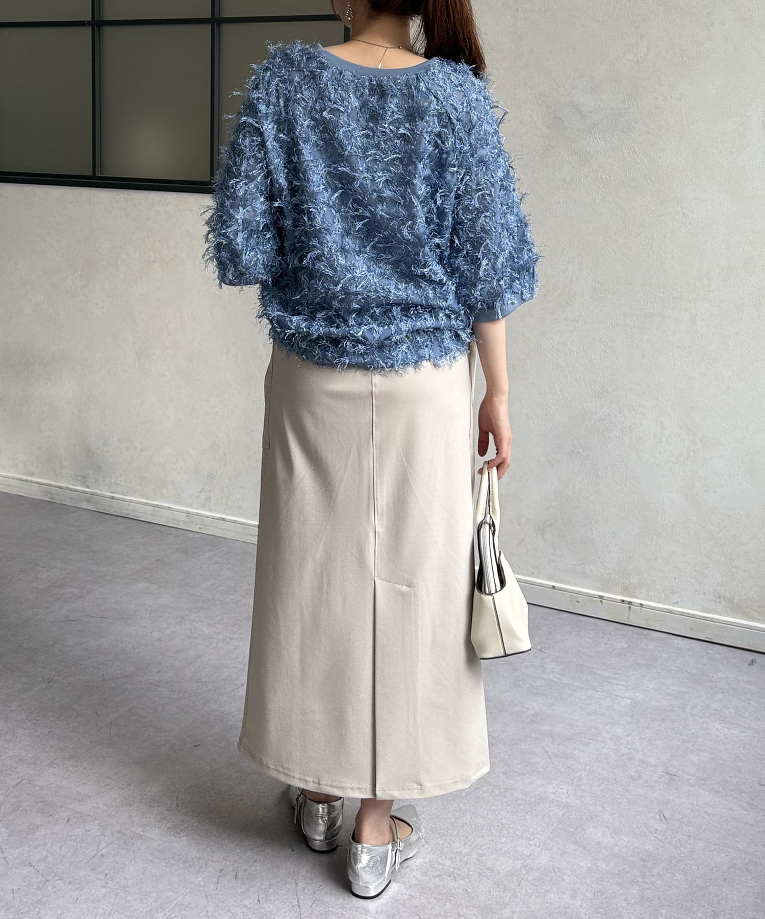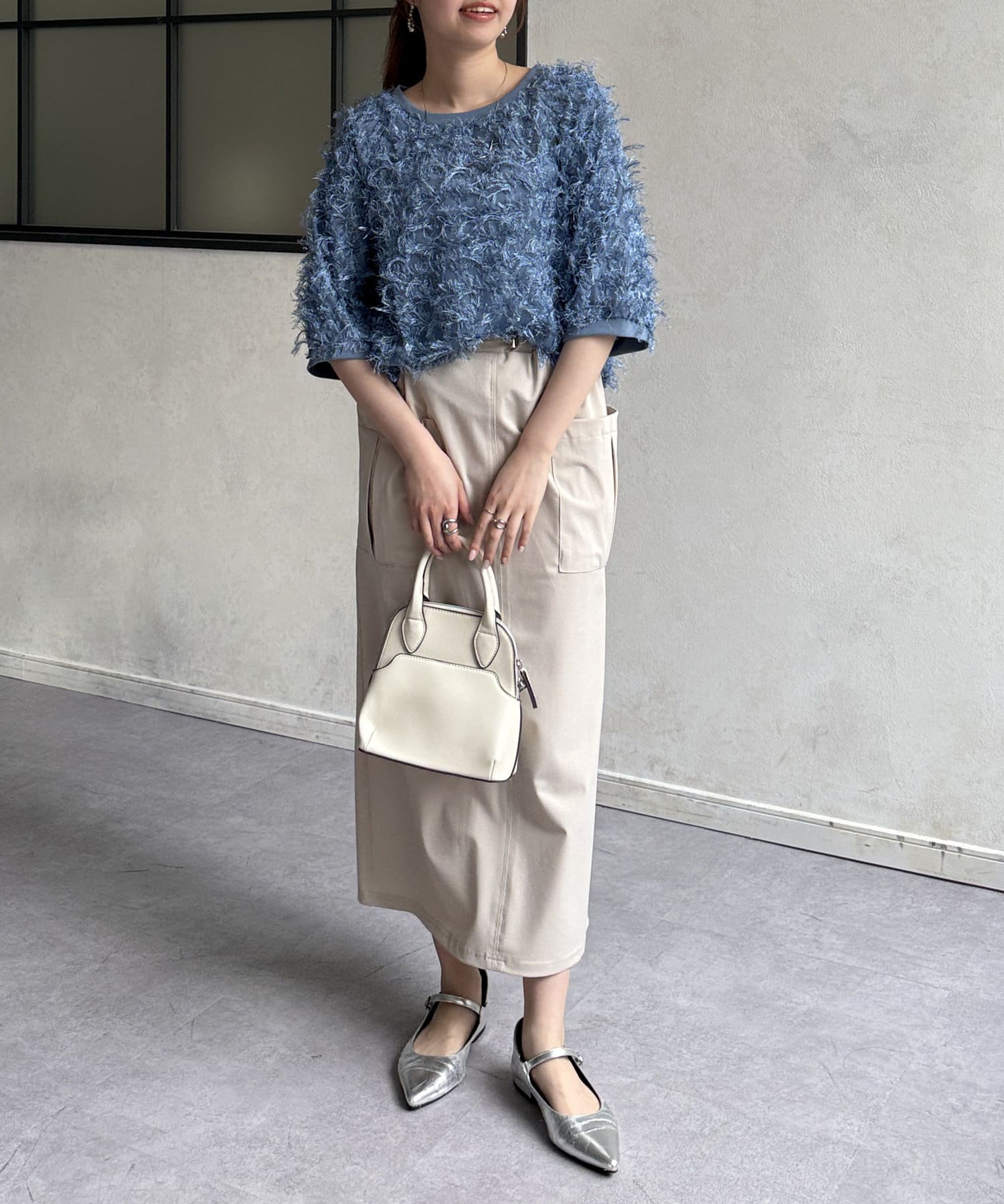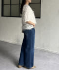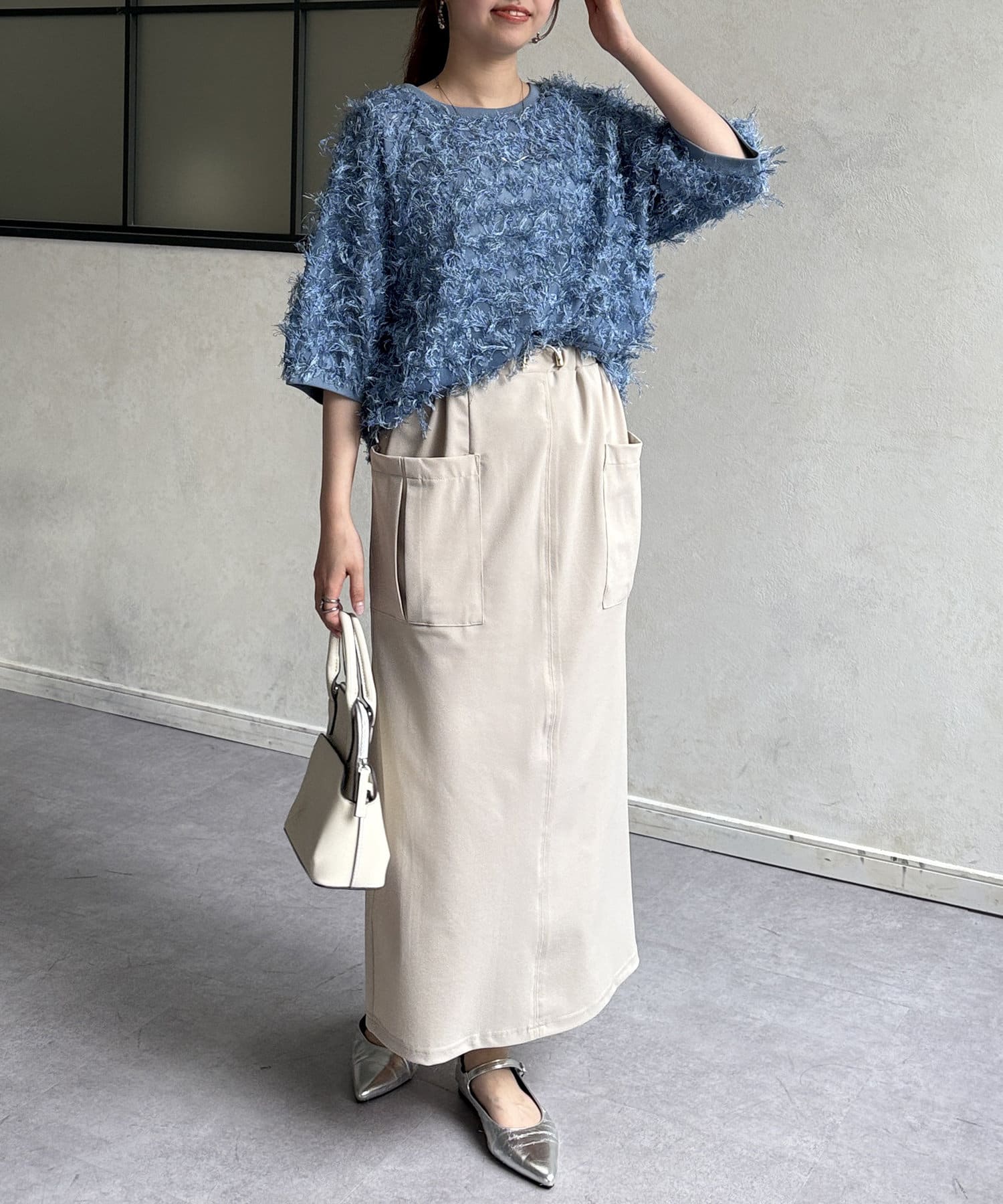 着映えするシアーフリンジ素材には、シンプルなスラックスやデニムとの合わせがおすすめです。