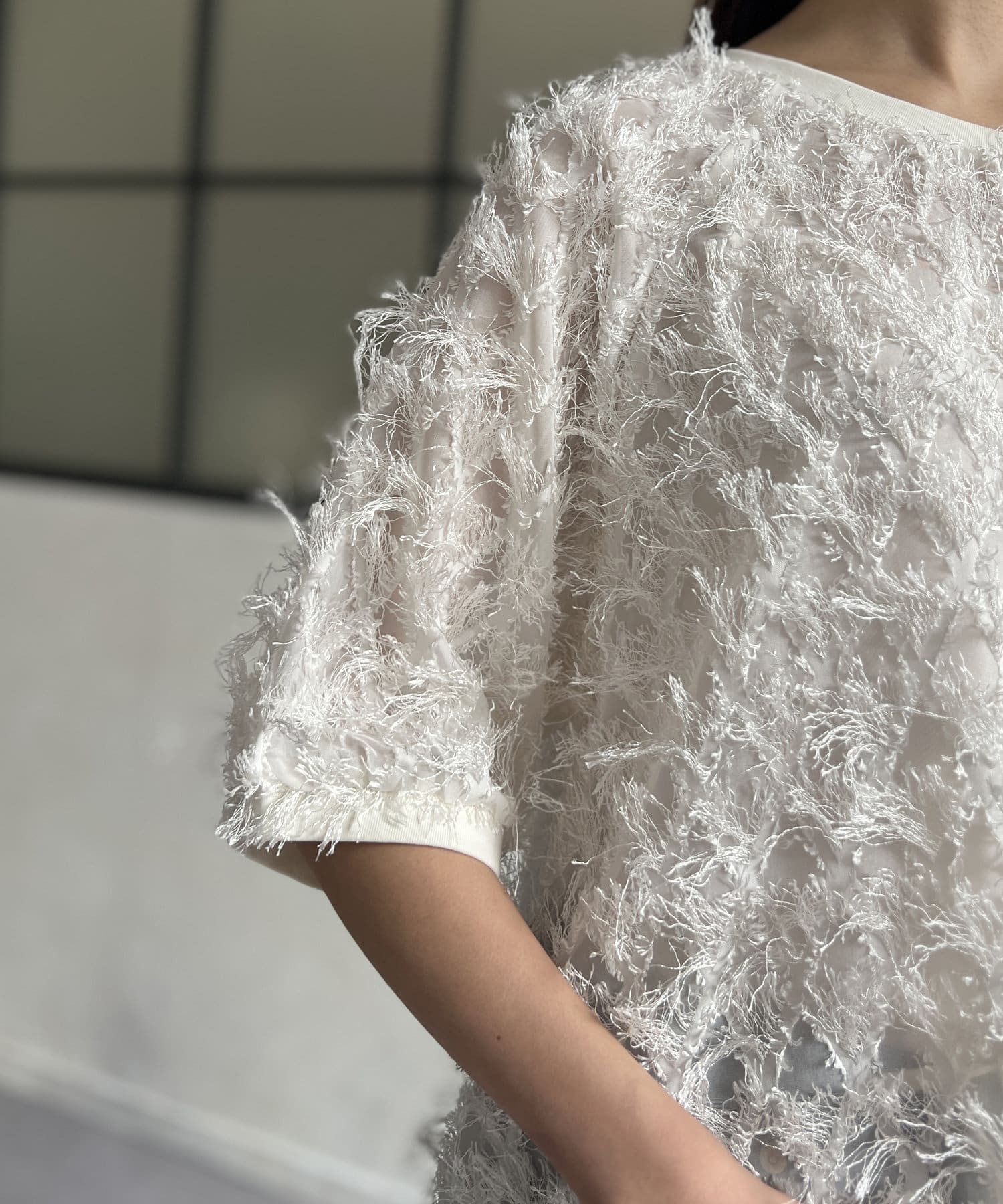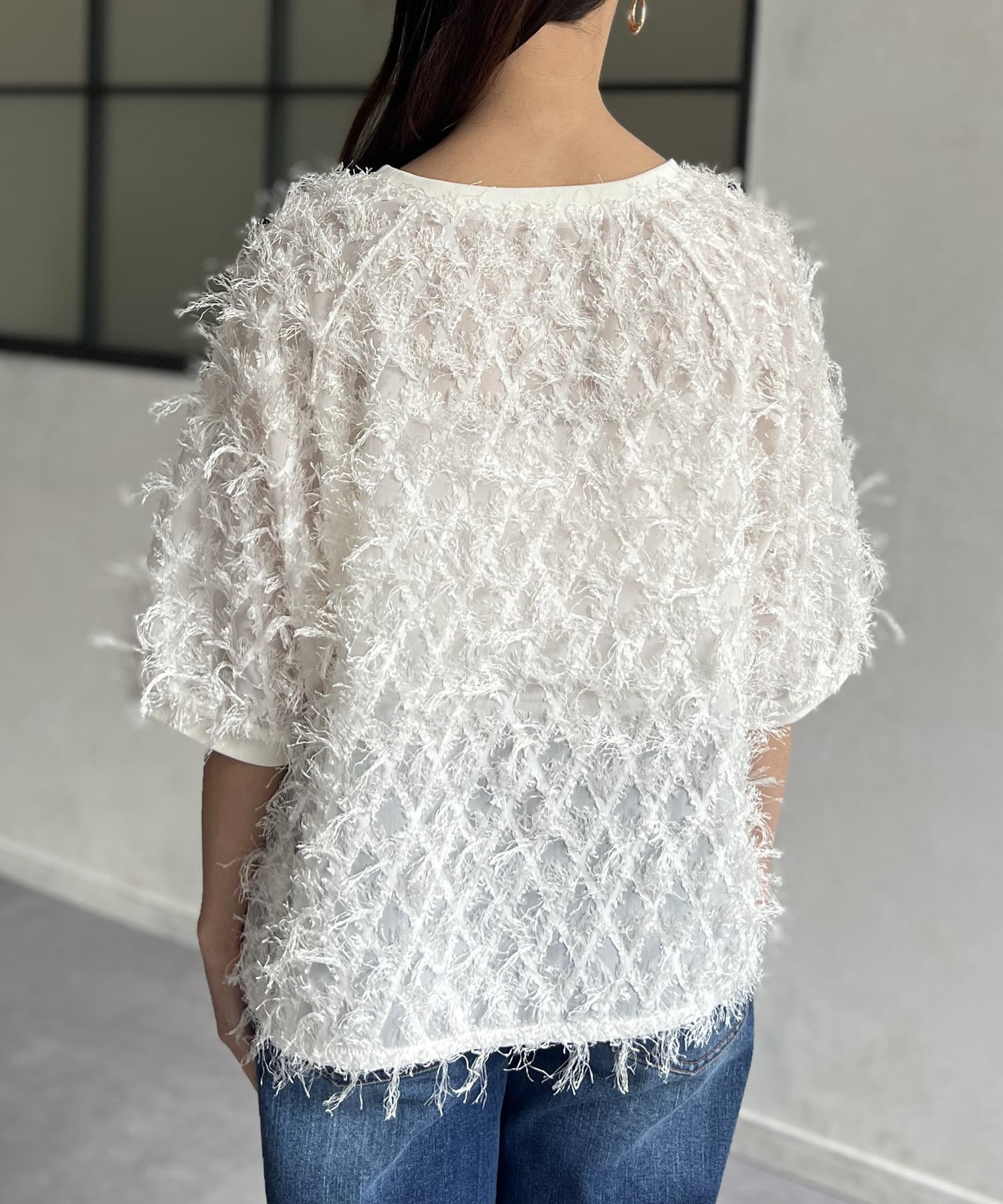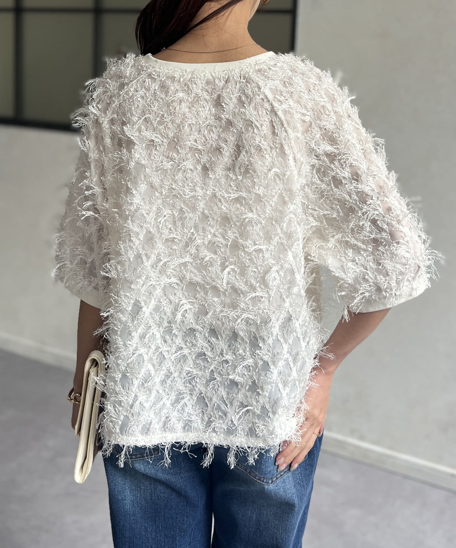 華やかな印象になるフリンジ素材で、女性らしい大人な透け感♪