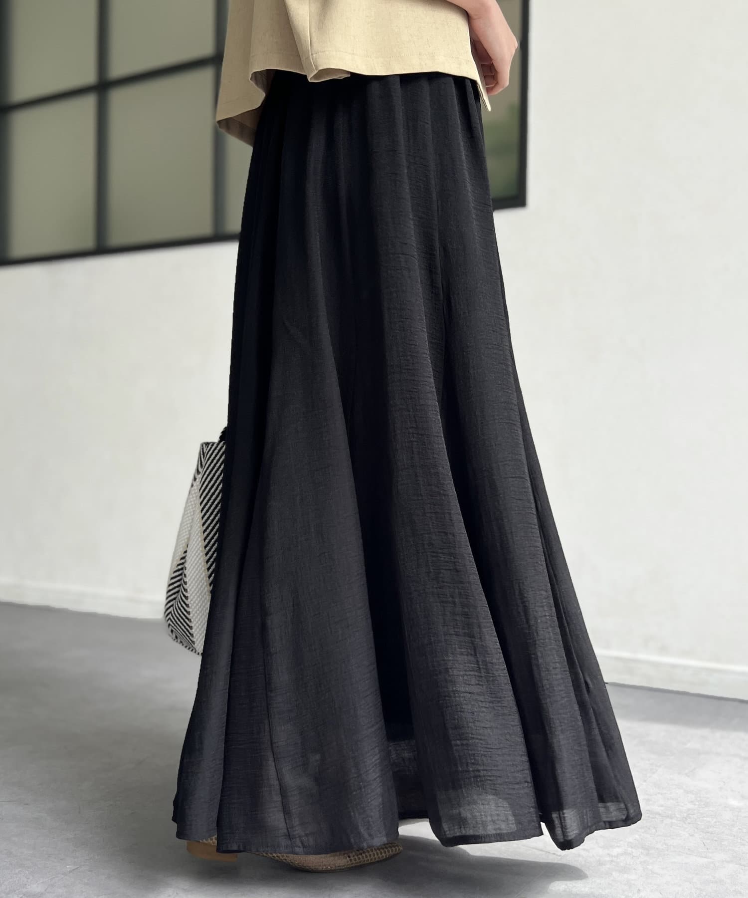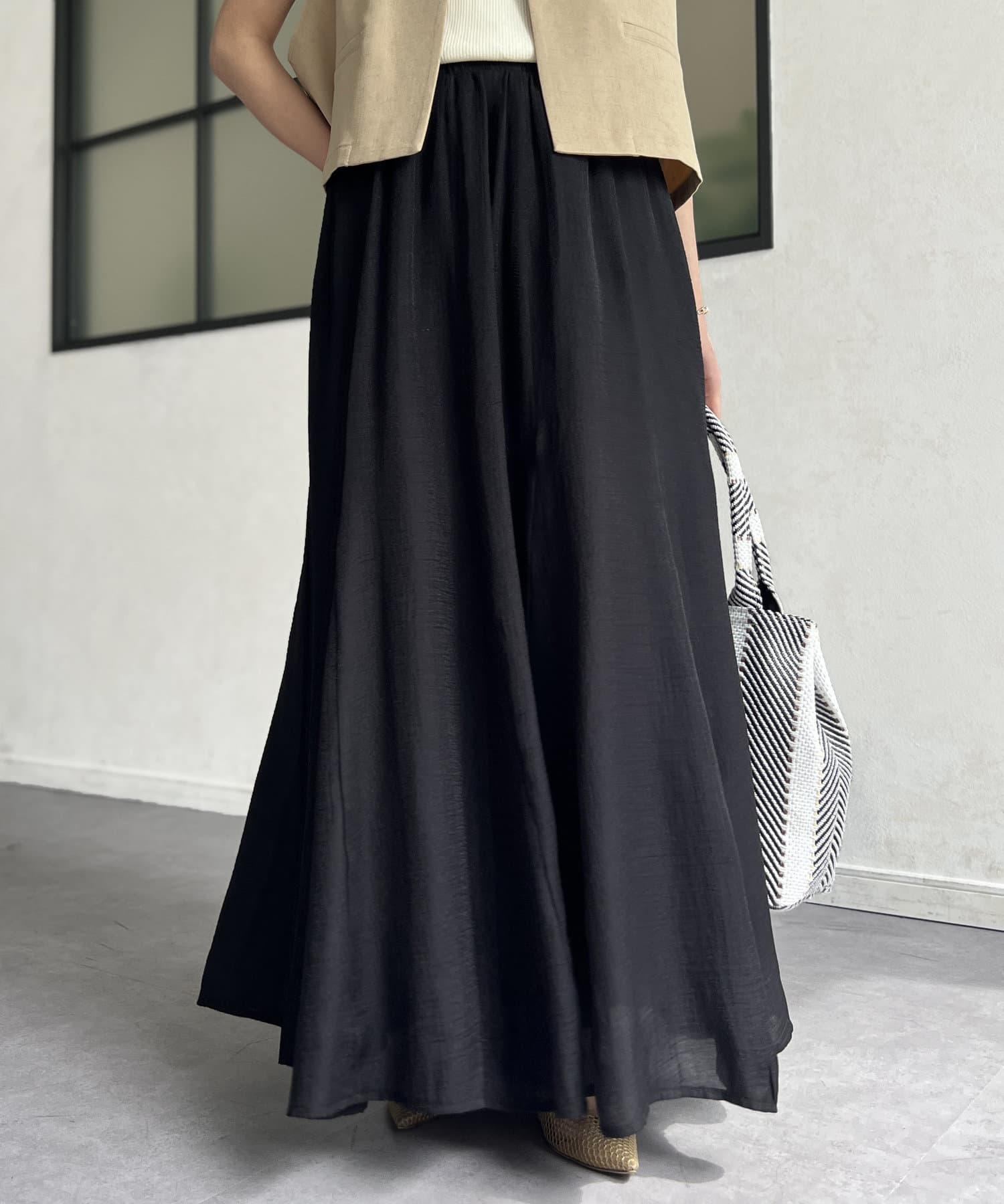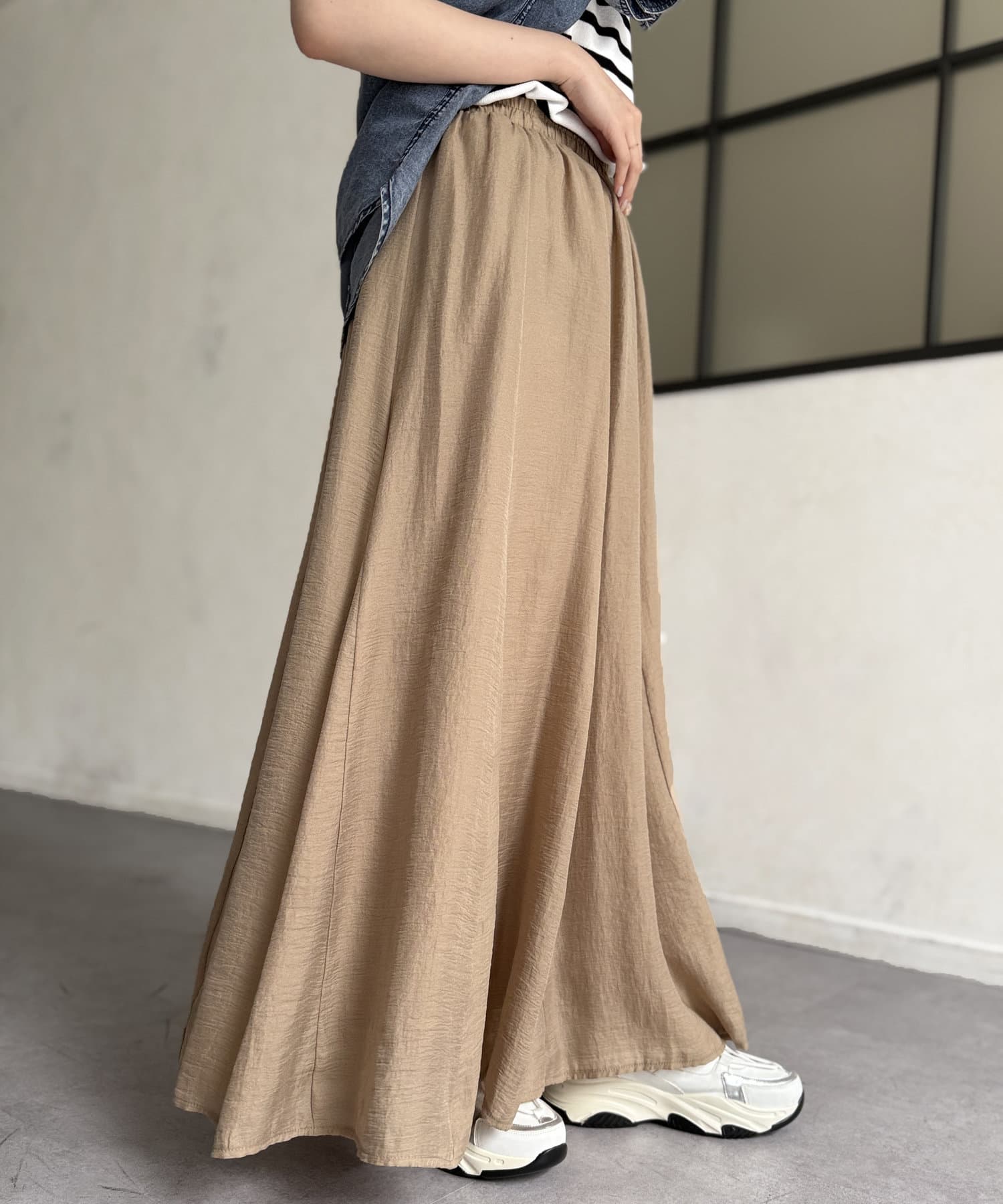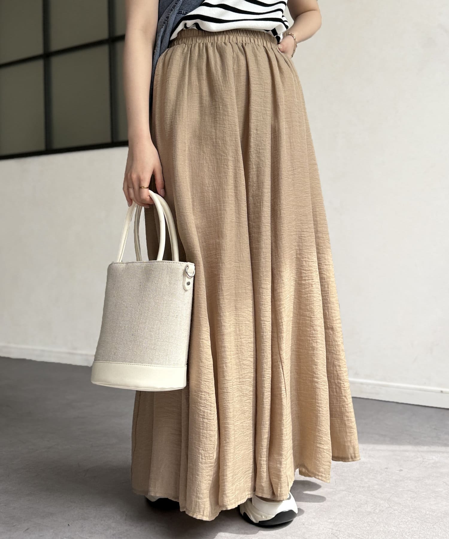 腰回りはスッキリと、裾にかけて広がるボリューム感が女性らしさを演出してくれるはぎスカート。
