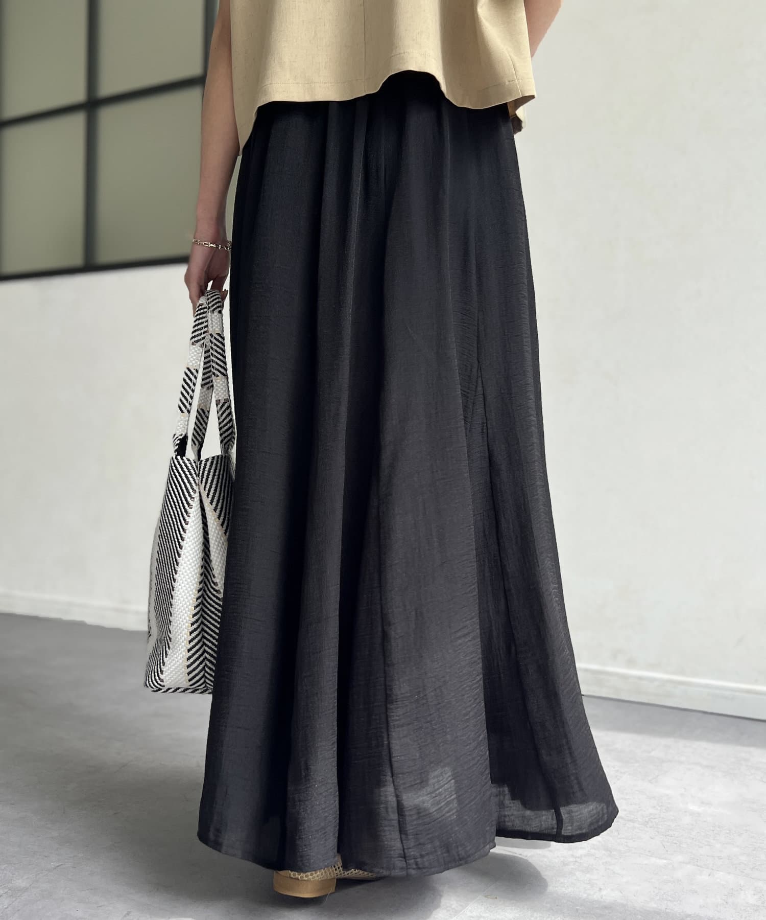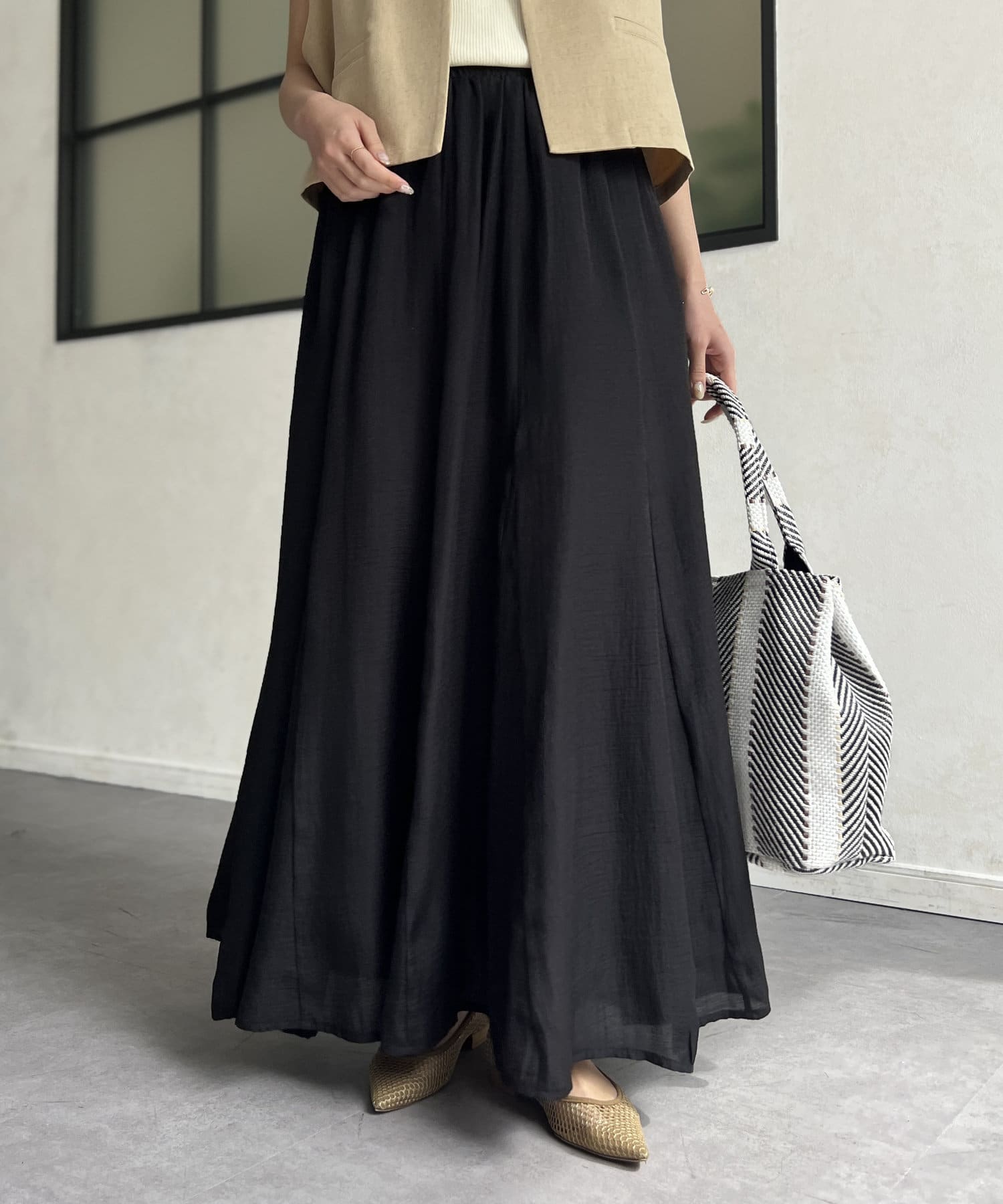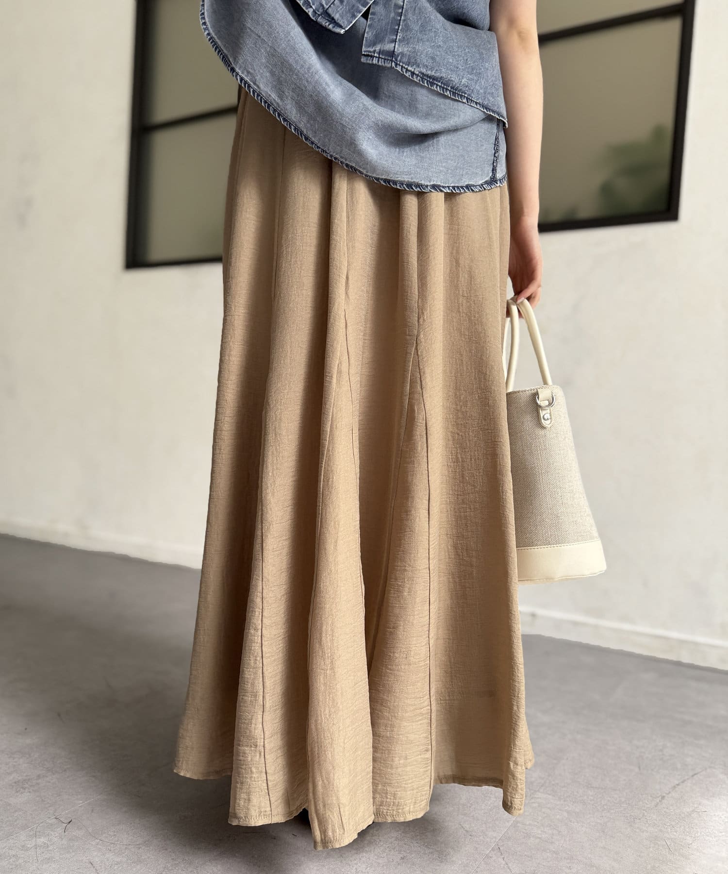 腰回りはスッキリと、裾にかけて広がるボリューム感が女性らしさを演出してくれるはぎスカート。