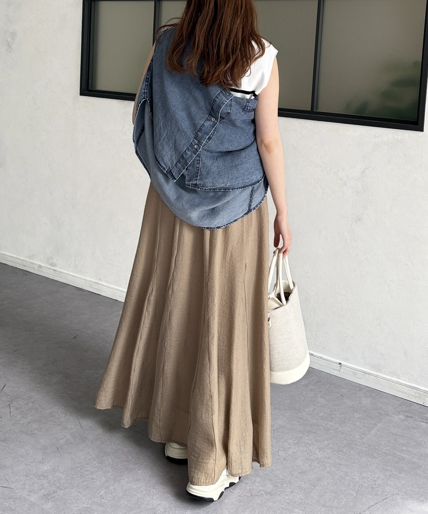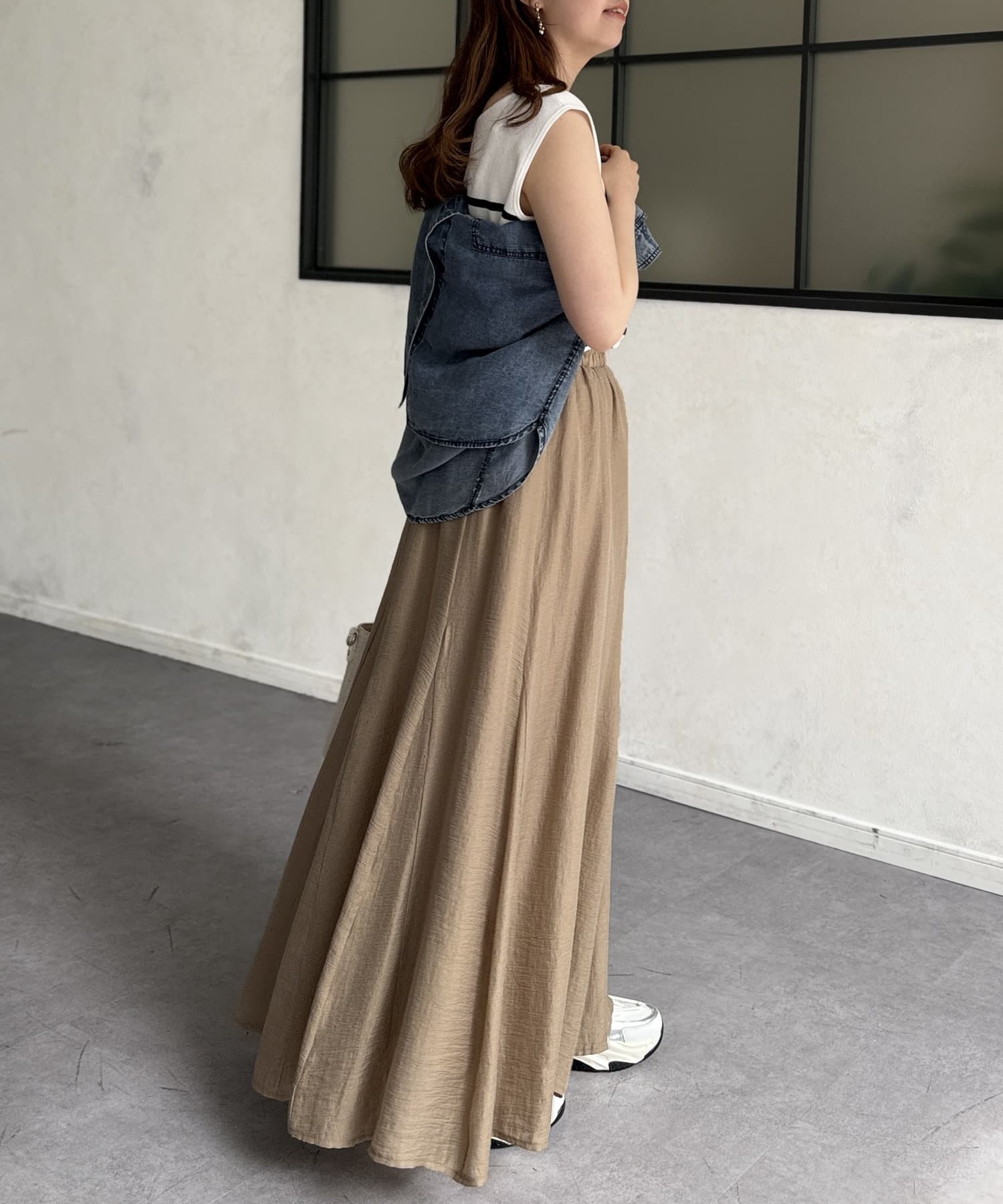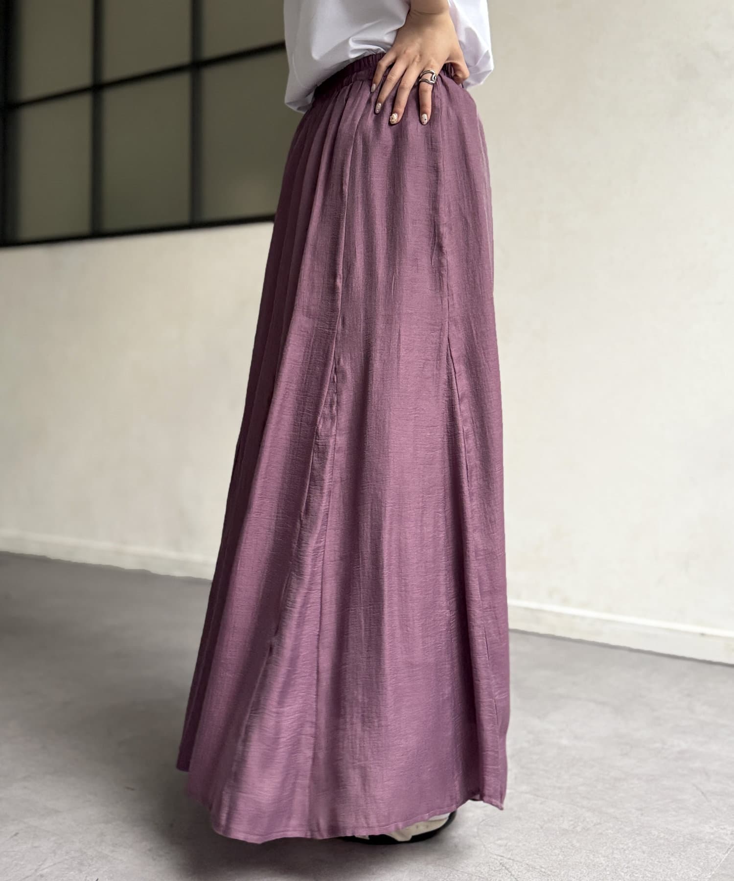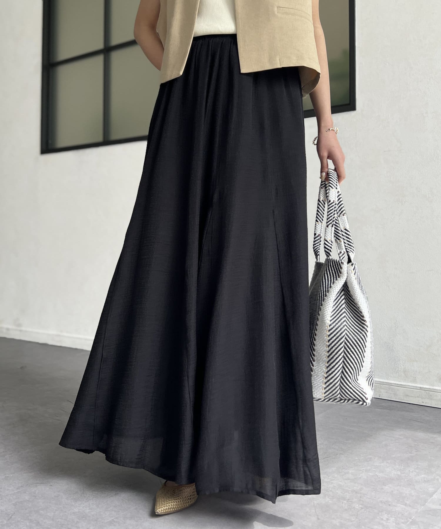 腰回りはスッキリと、裾にかけて広がるボリューム感が女性らしさを演出してくれるはぎスカート。