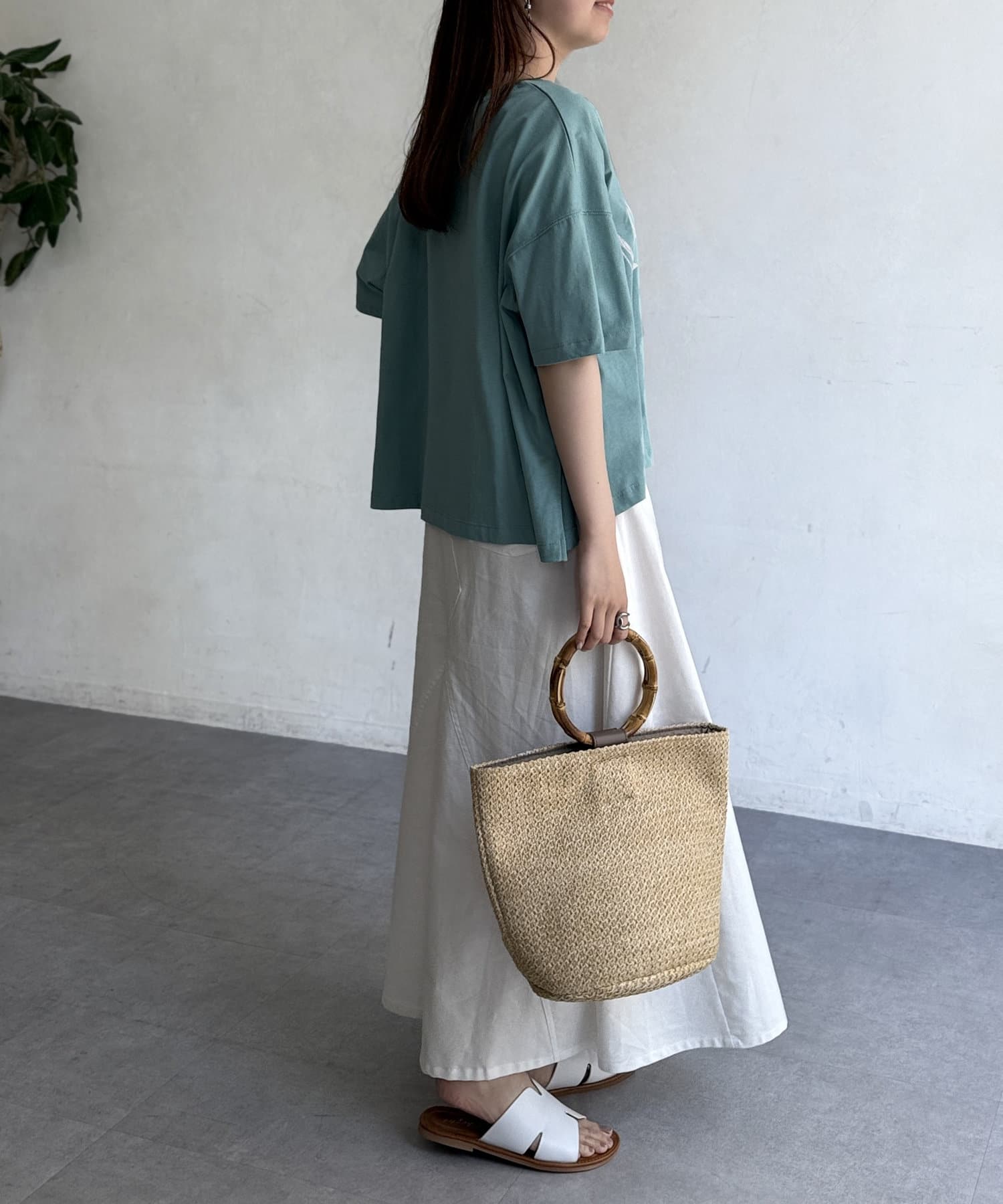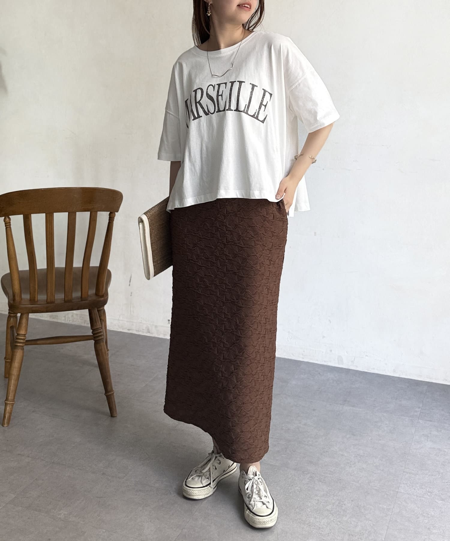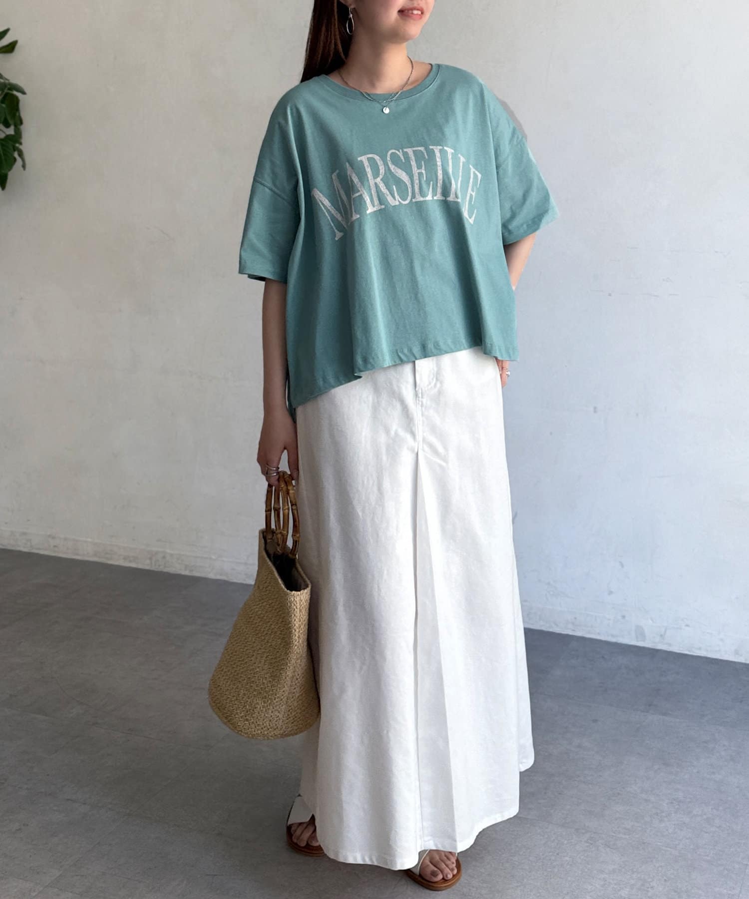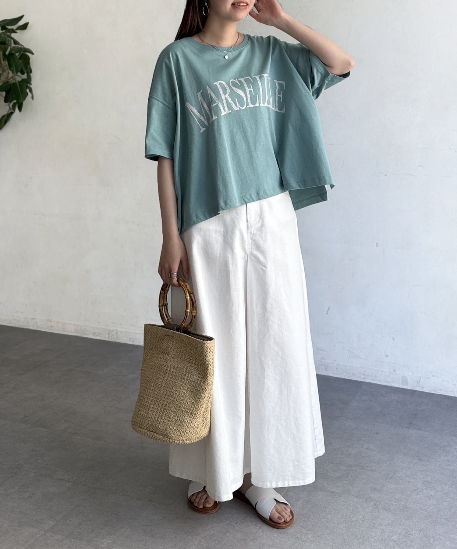 ハイウエストパンツやスカートを合わせ、前インしてスッキリ見せるのもおすすめ!