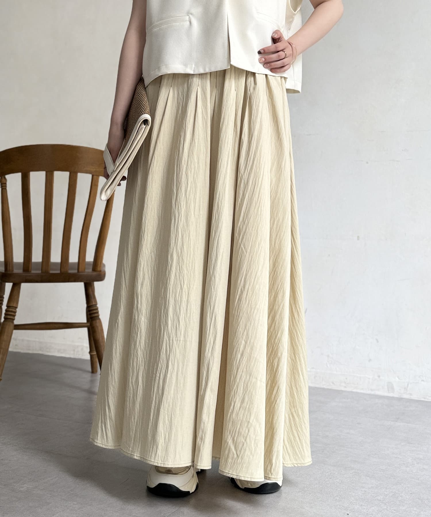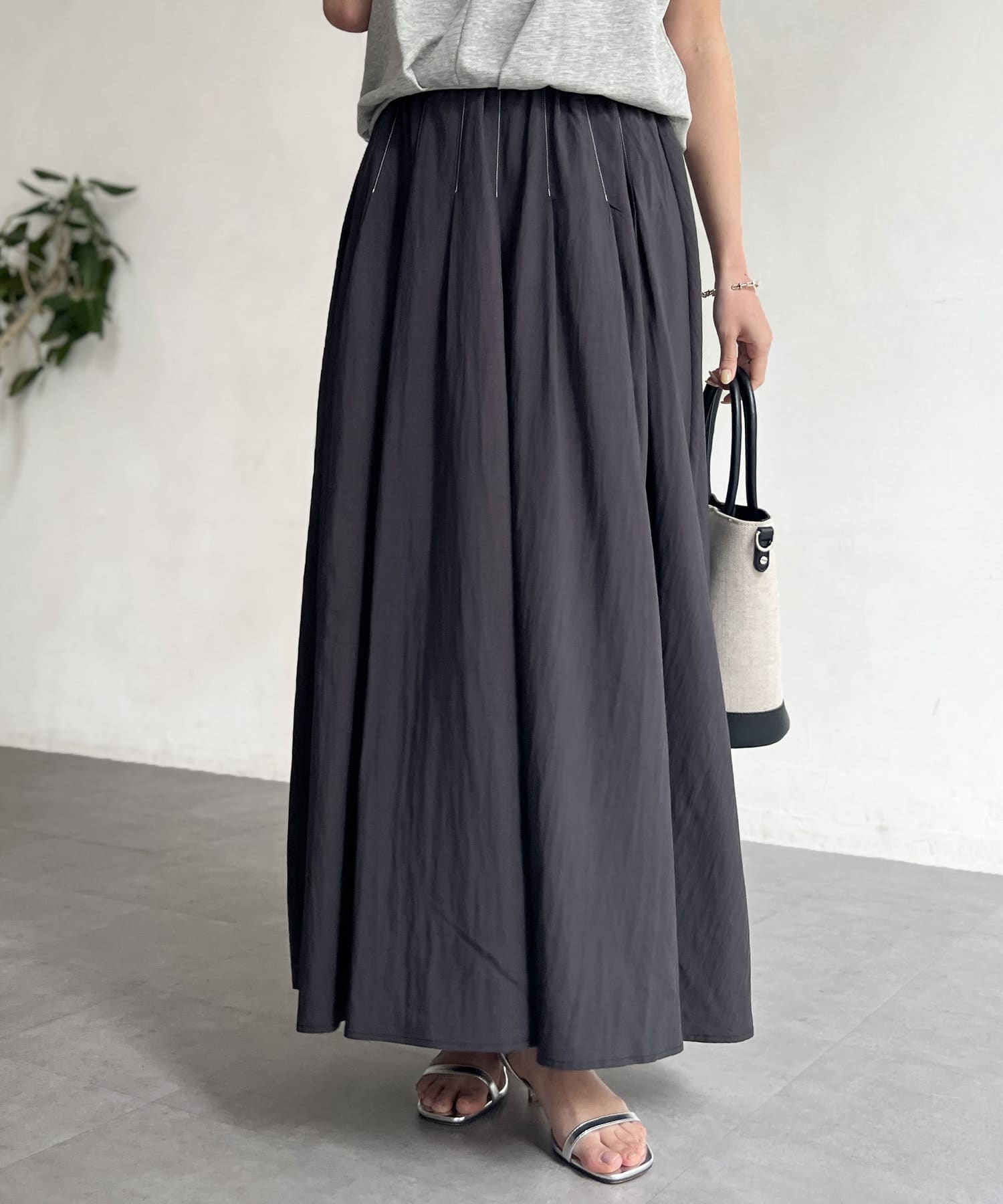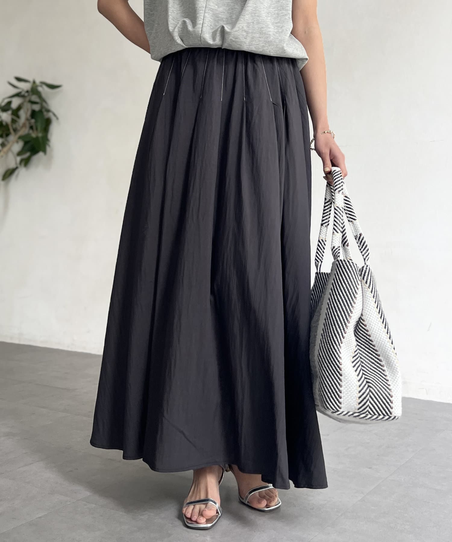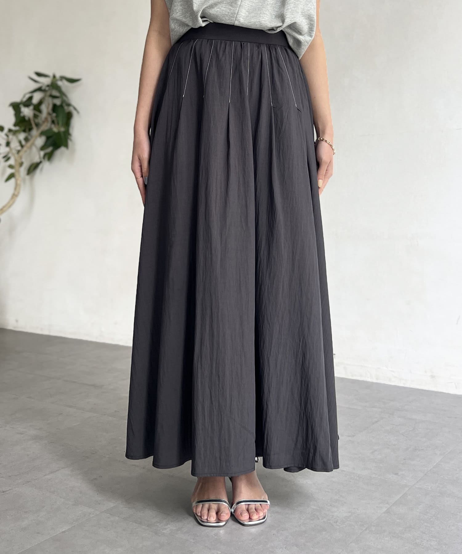 フレアシルエットが目を惹くスカート