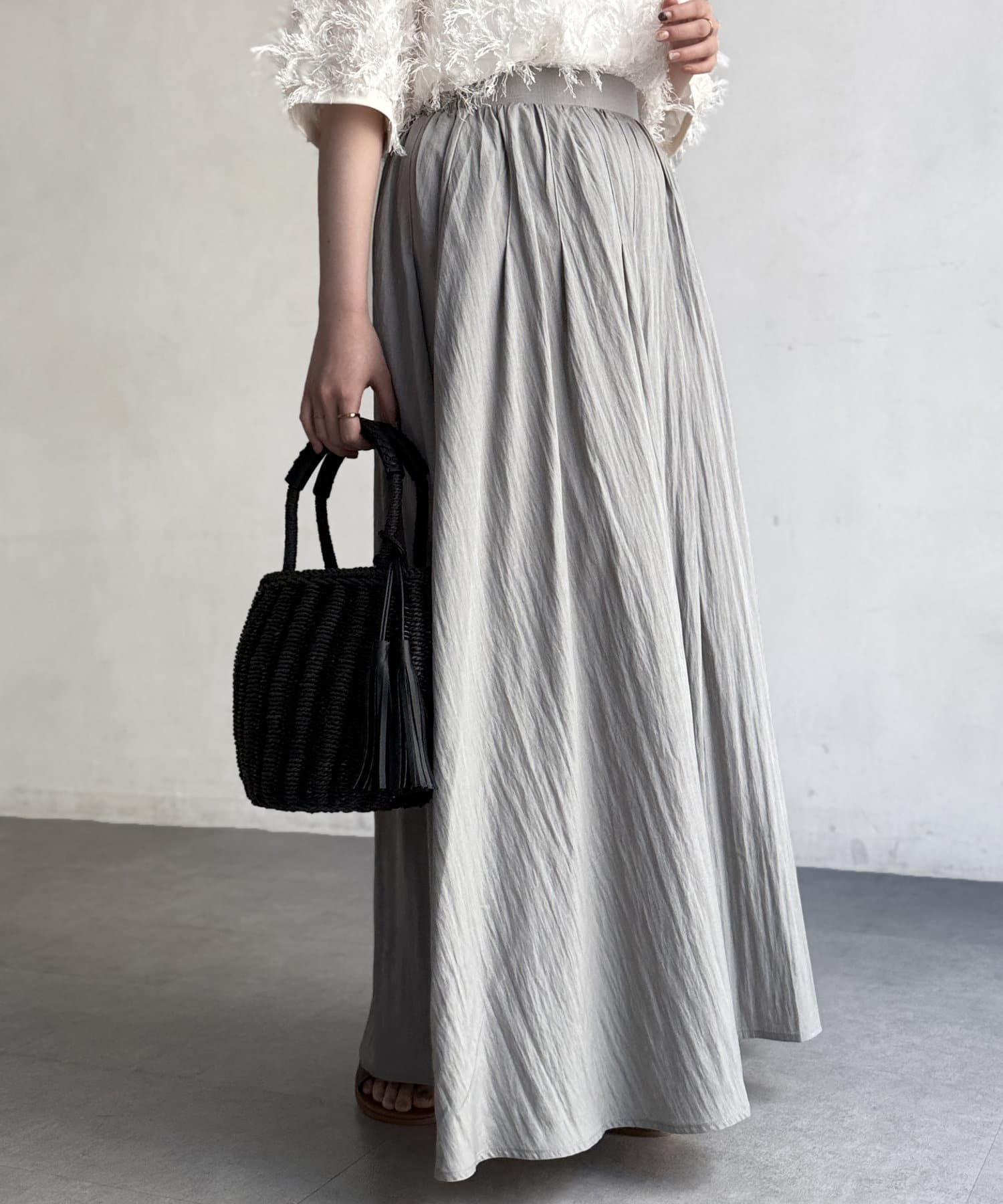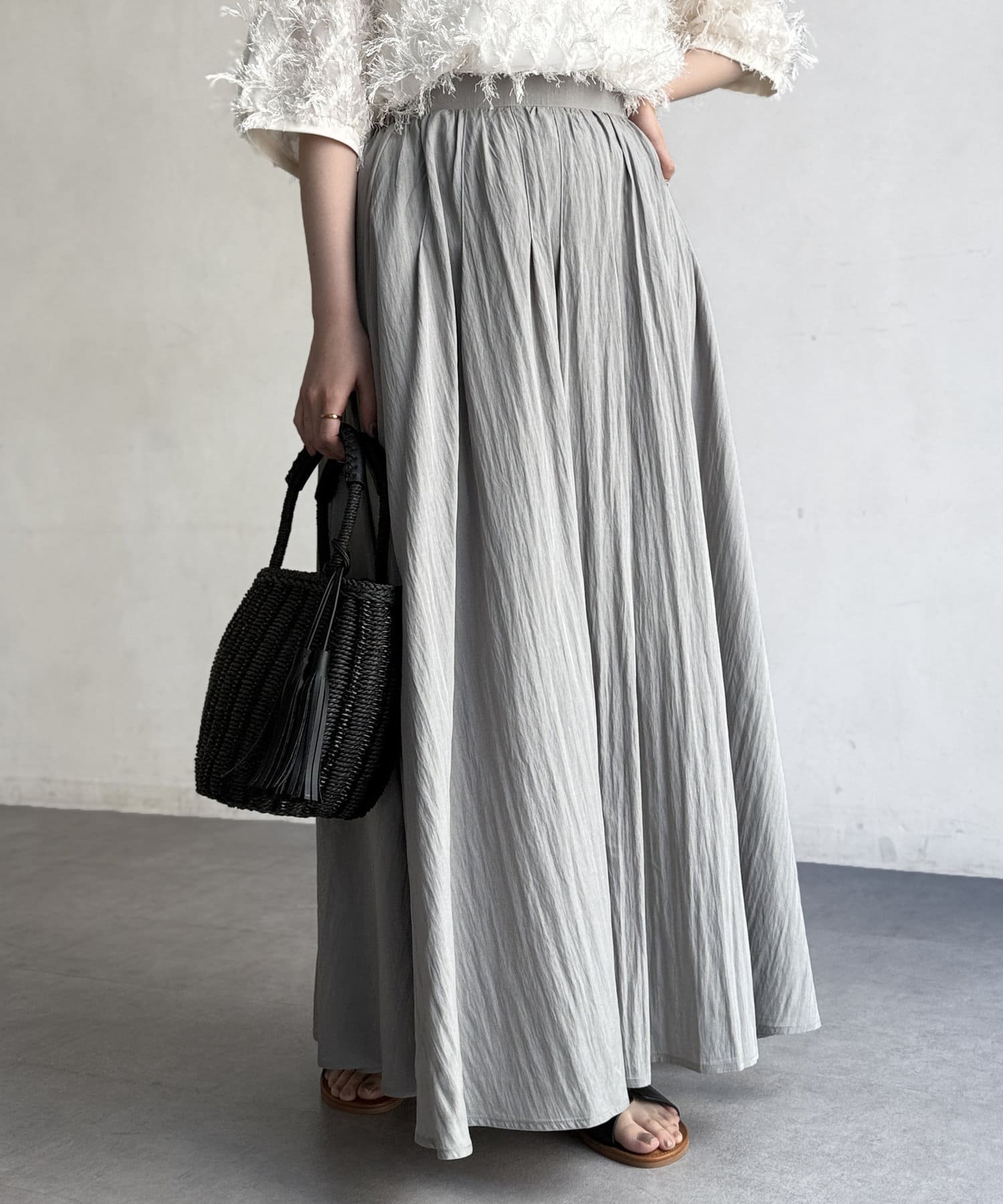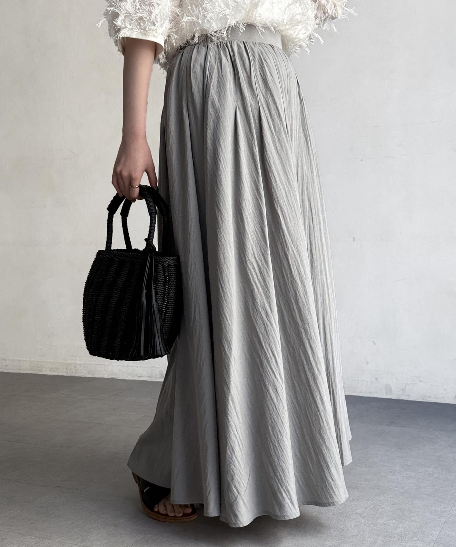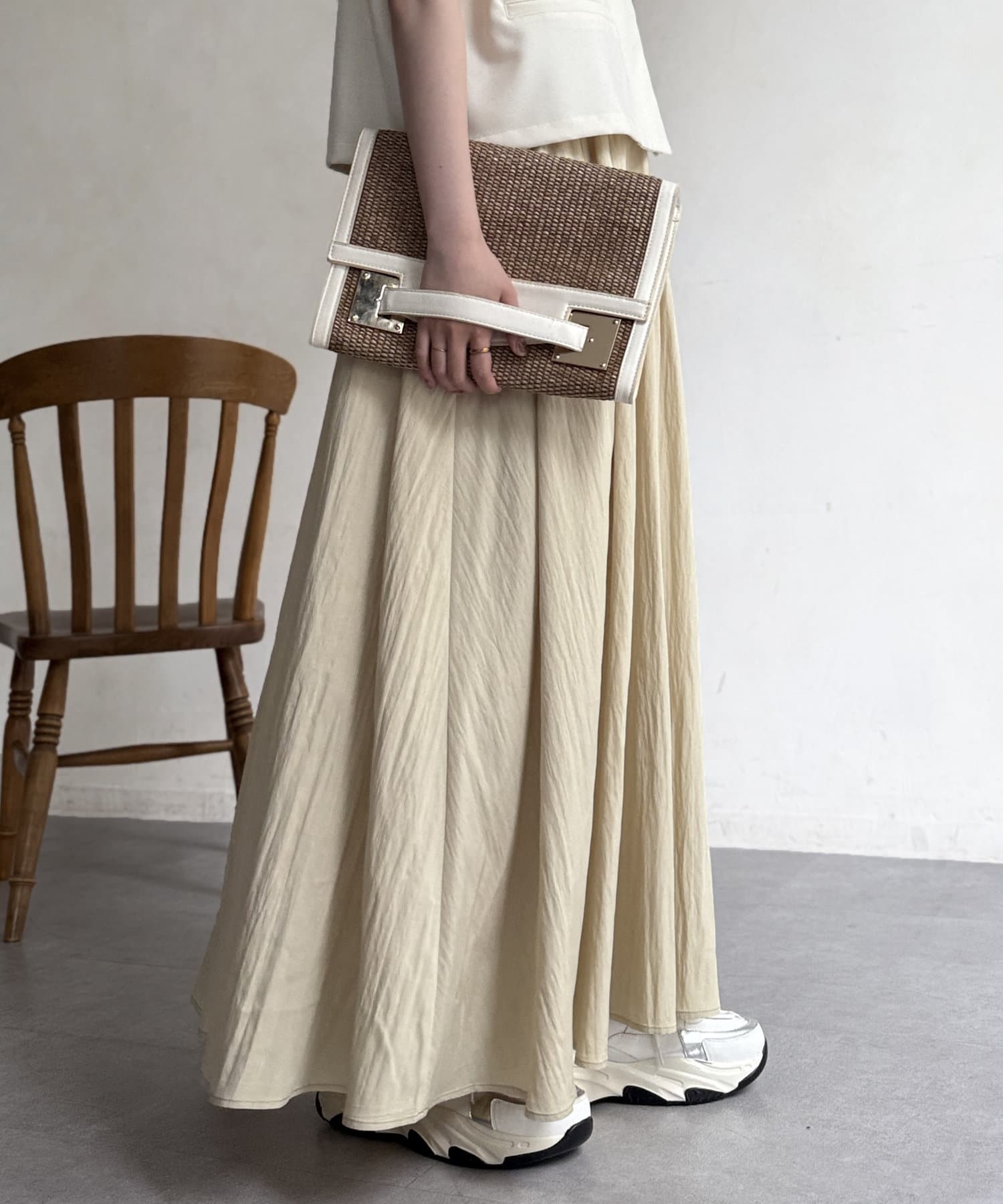 フレアシルエットが目を惹くスカート