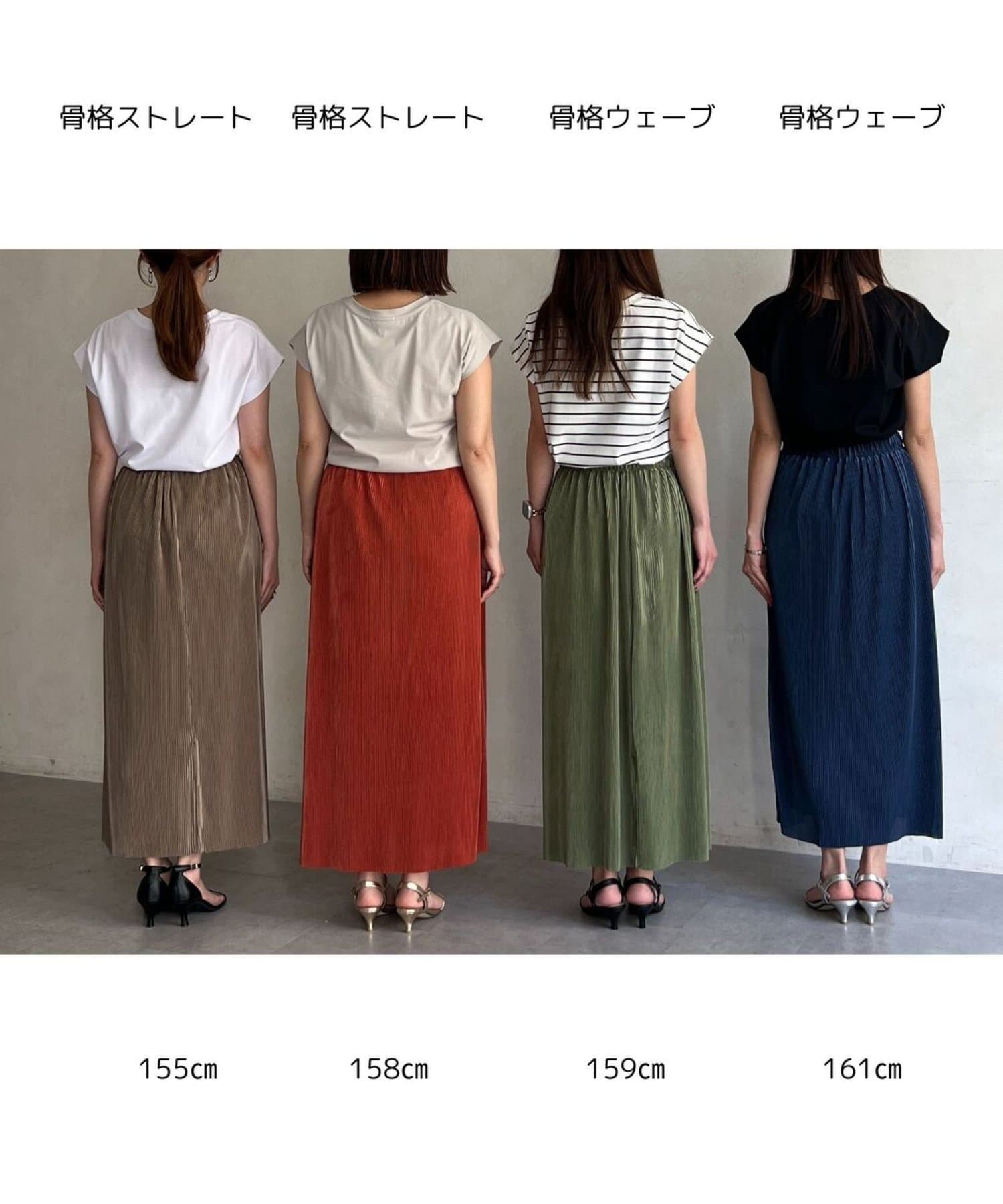 動きのある細プリーツがアクセントになるナロースカート