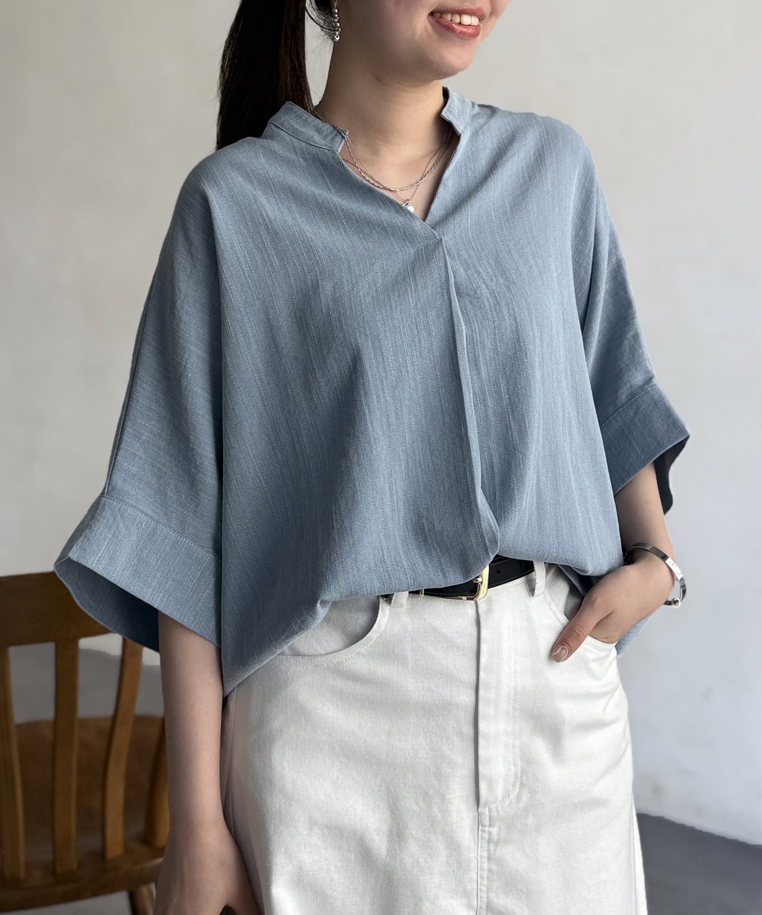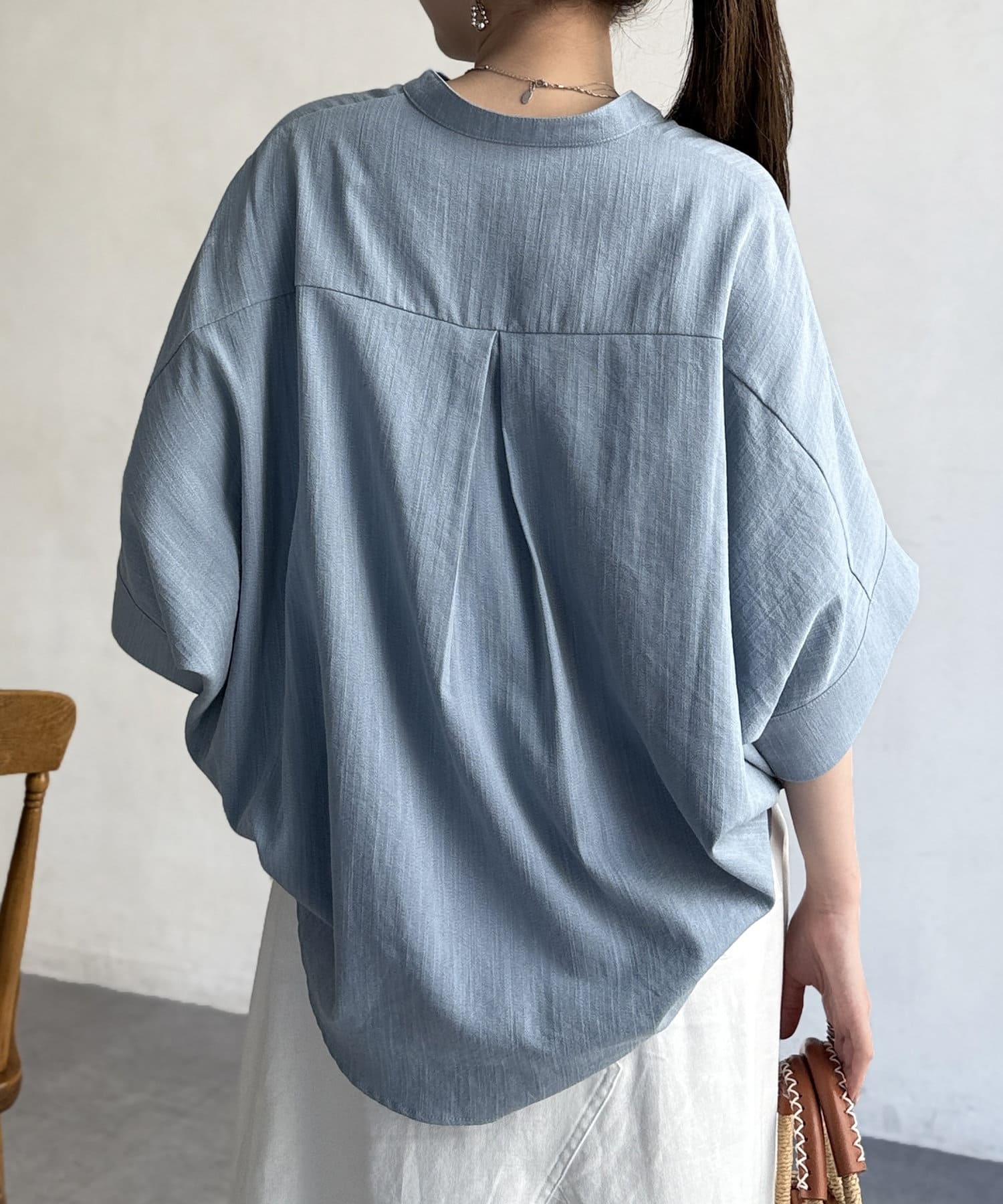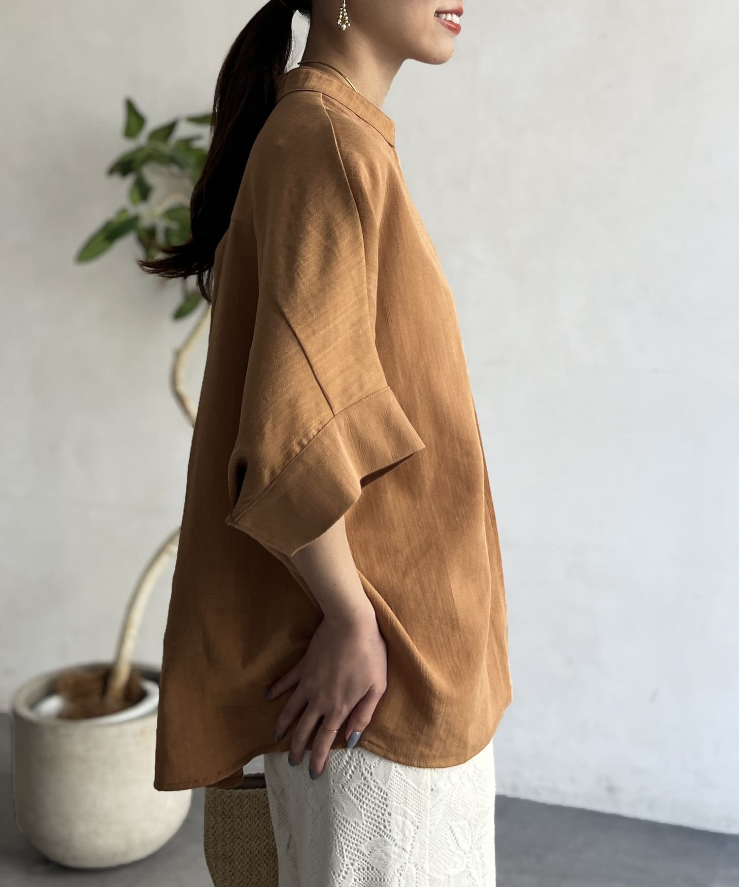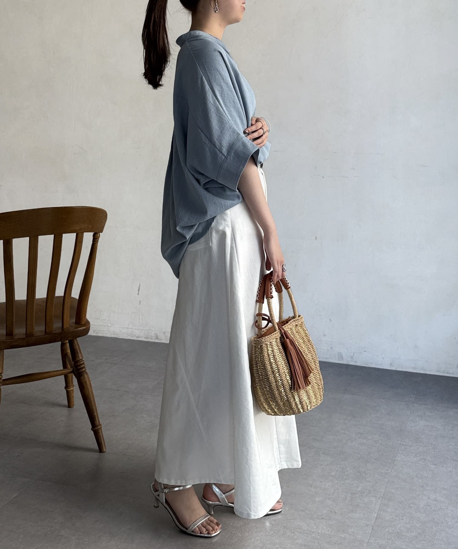 リネンを使ったゆったりとしたシルエットのブラウス。