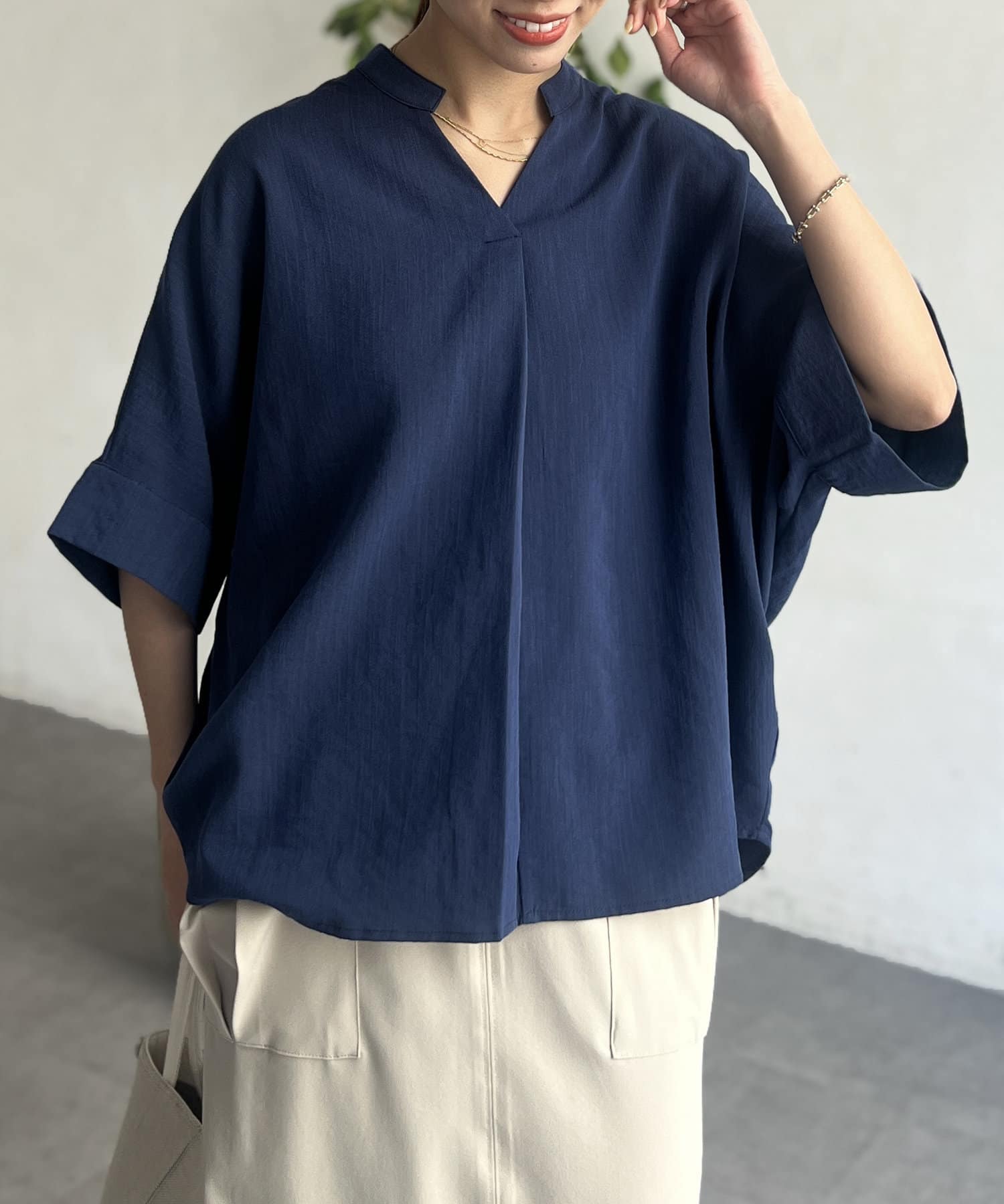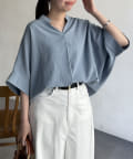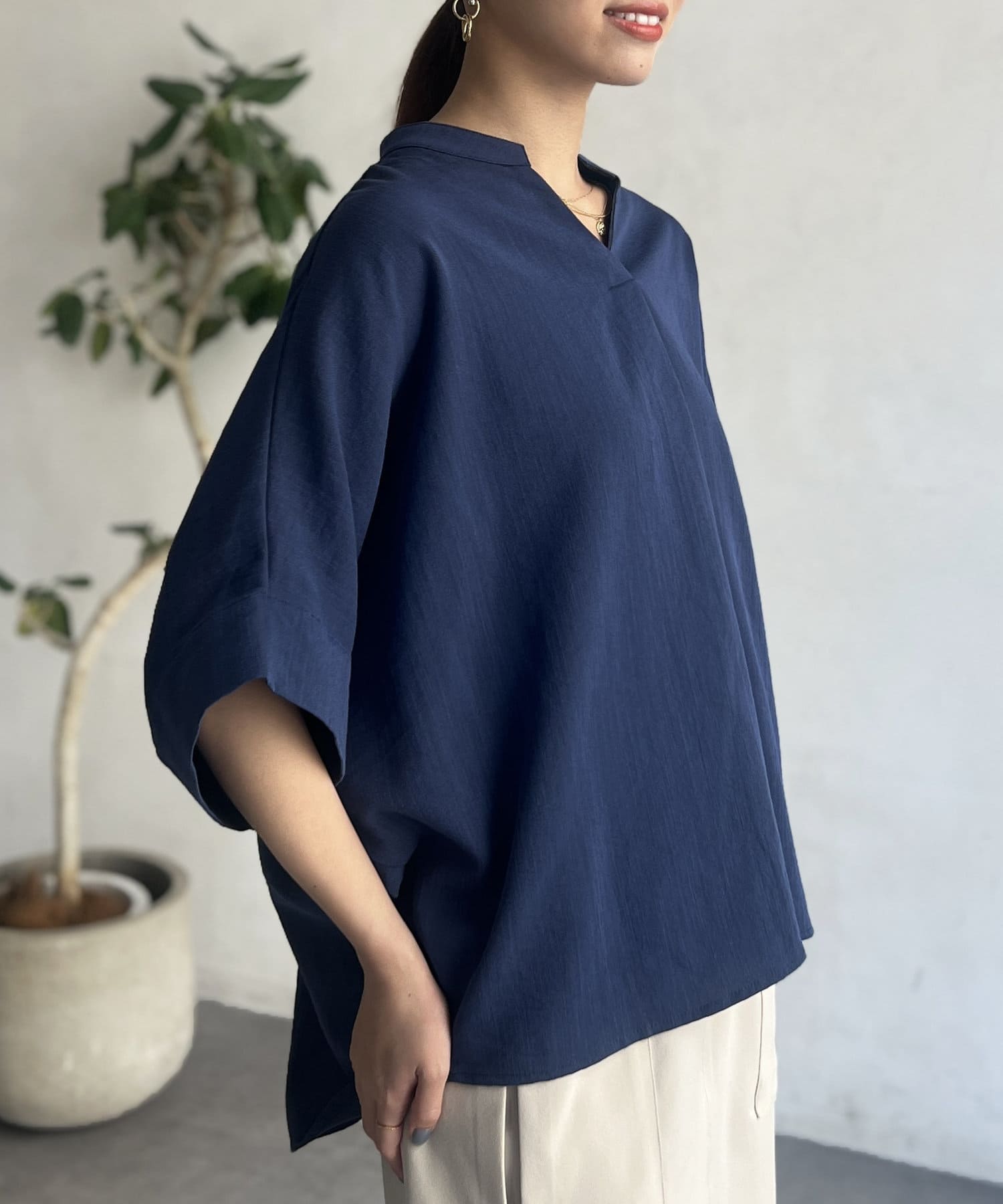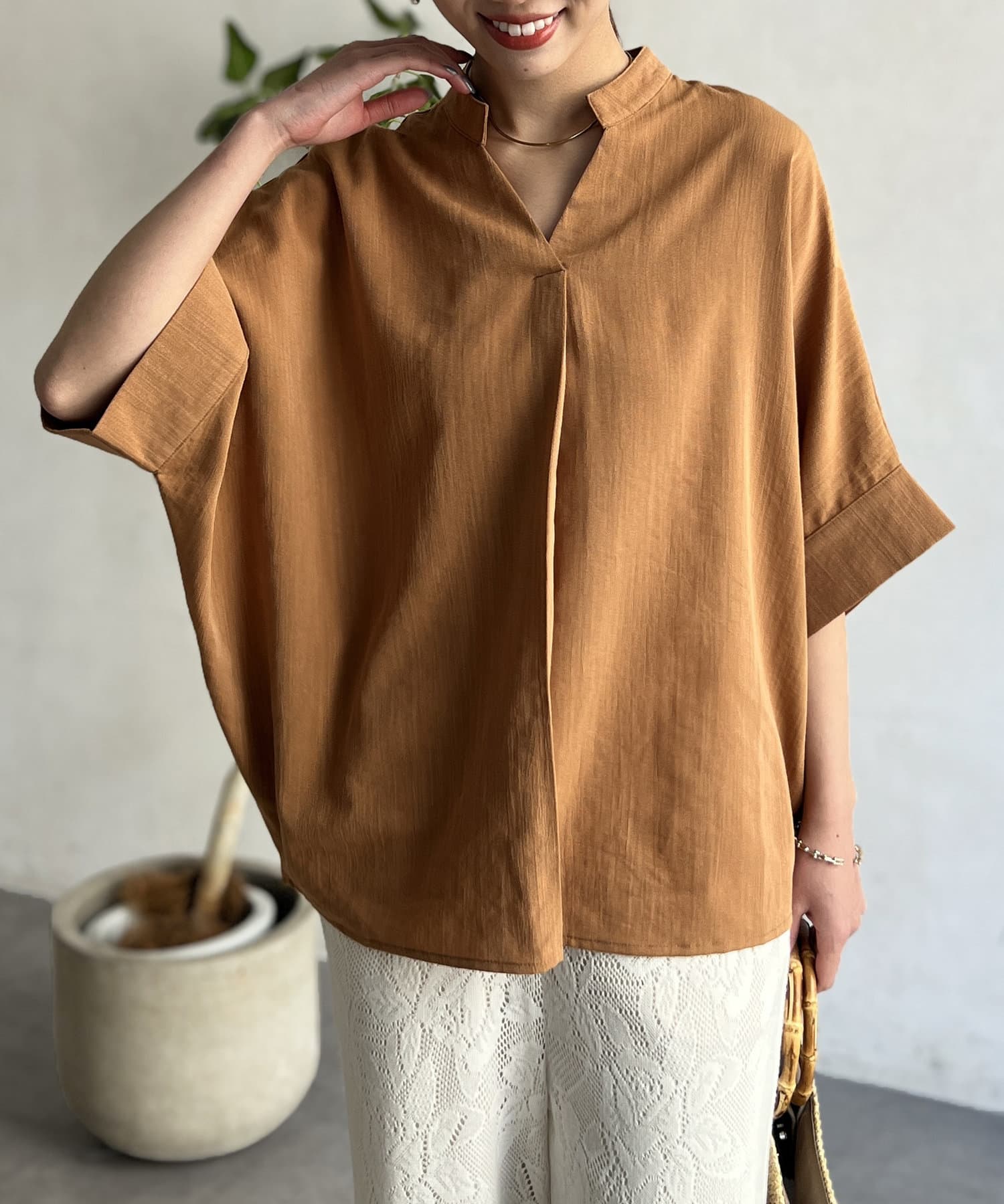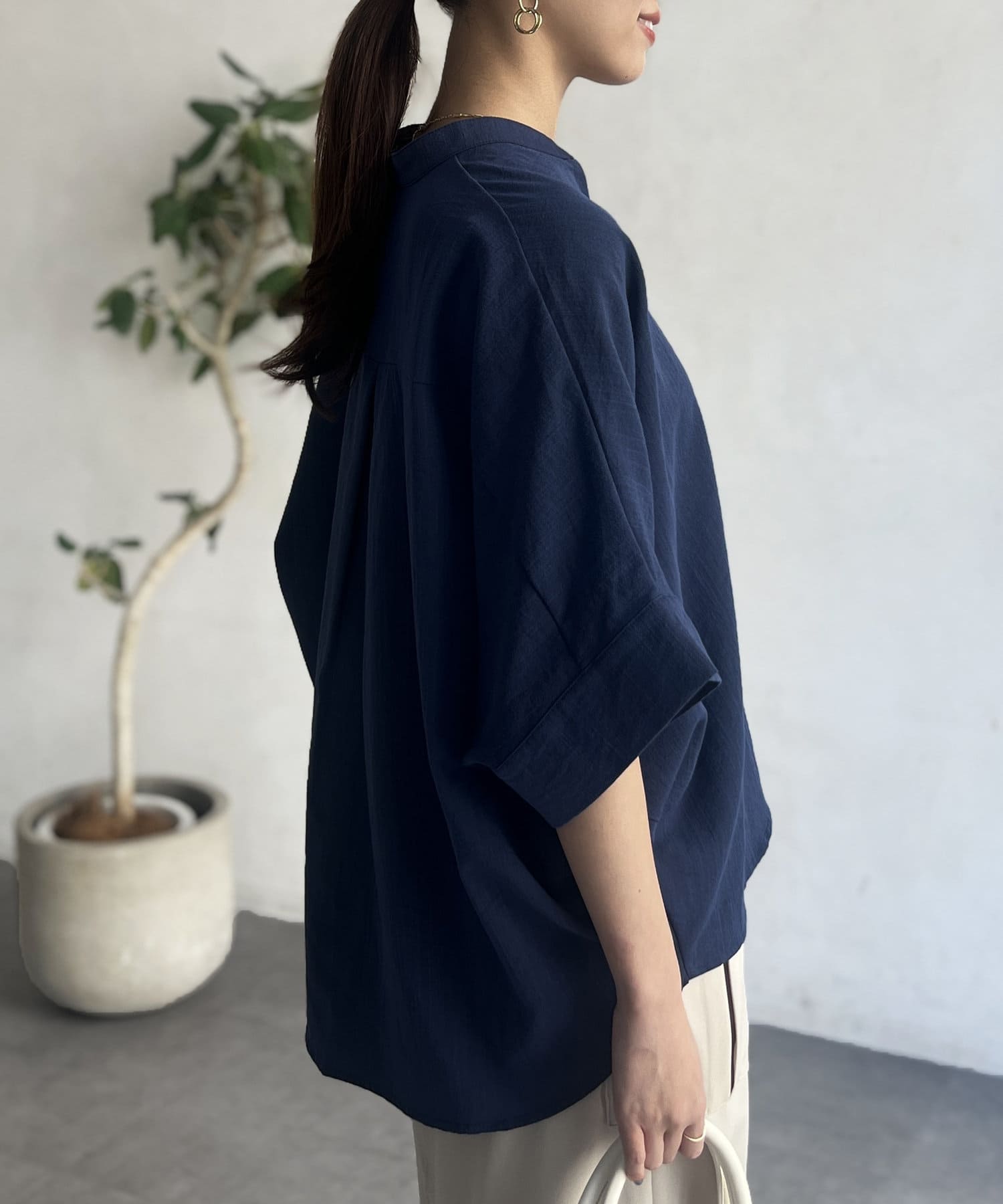 リネンを使ったゆったりとしたシルエットのブラウス。