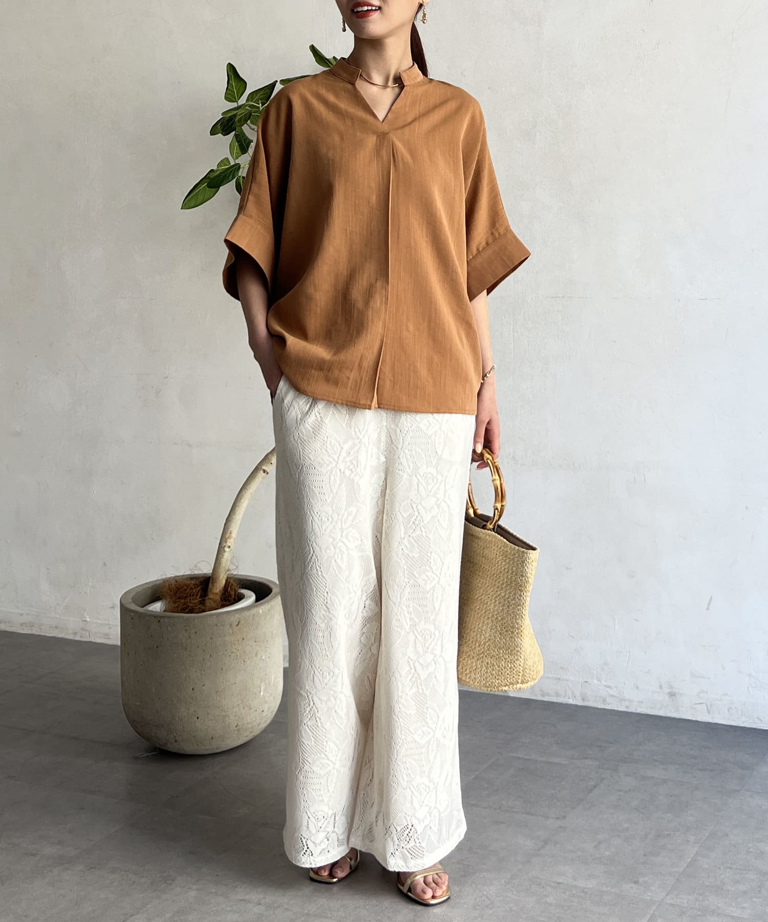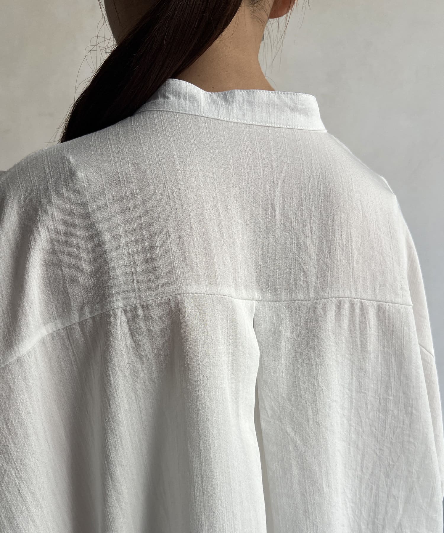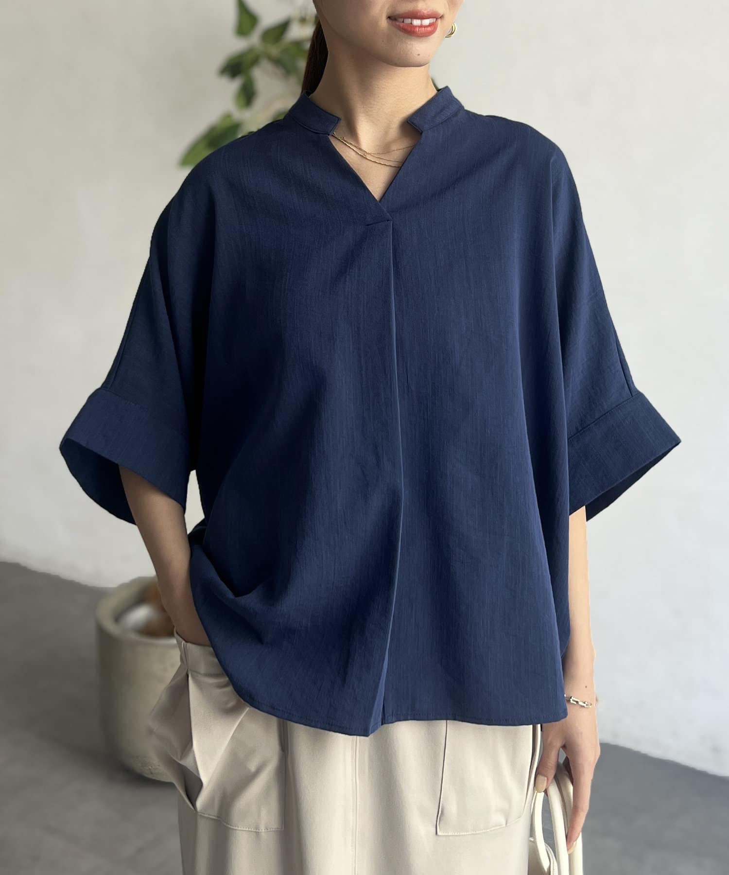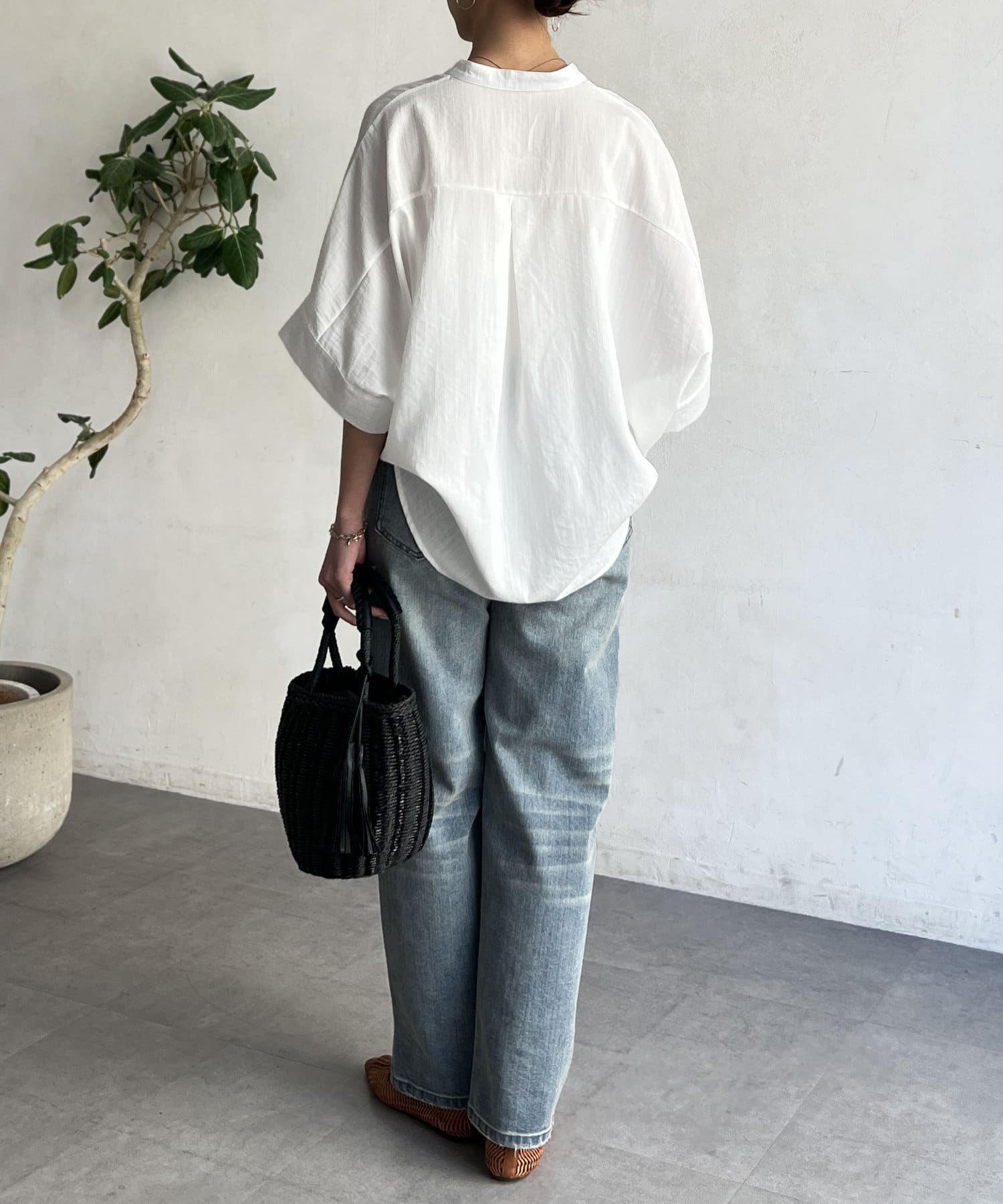 リネンを使ったゆったりとしたシルエットのブラウス。