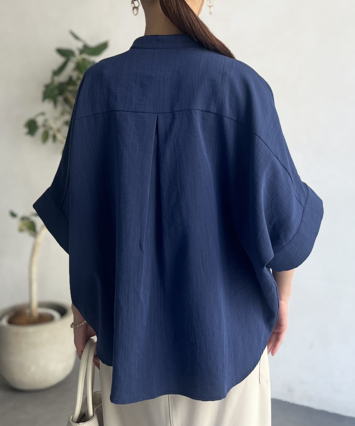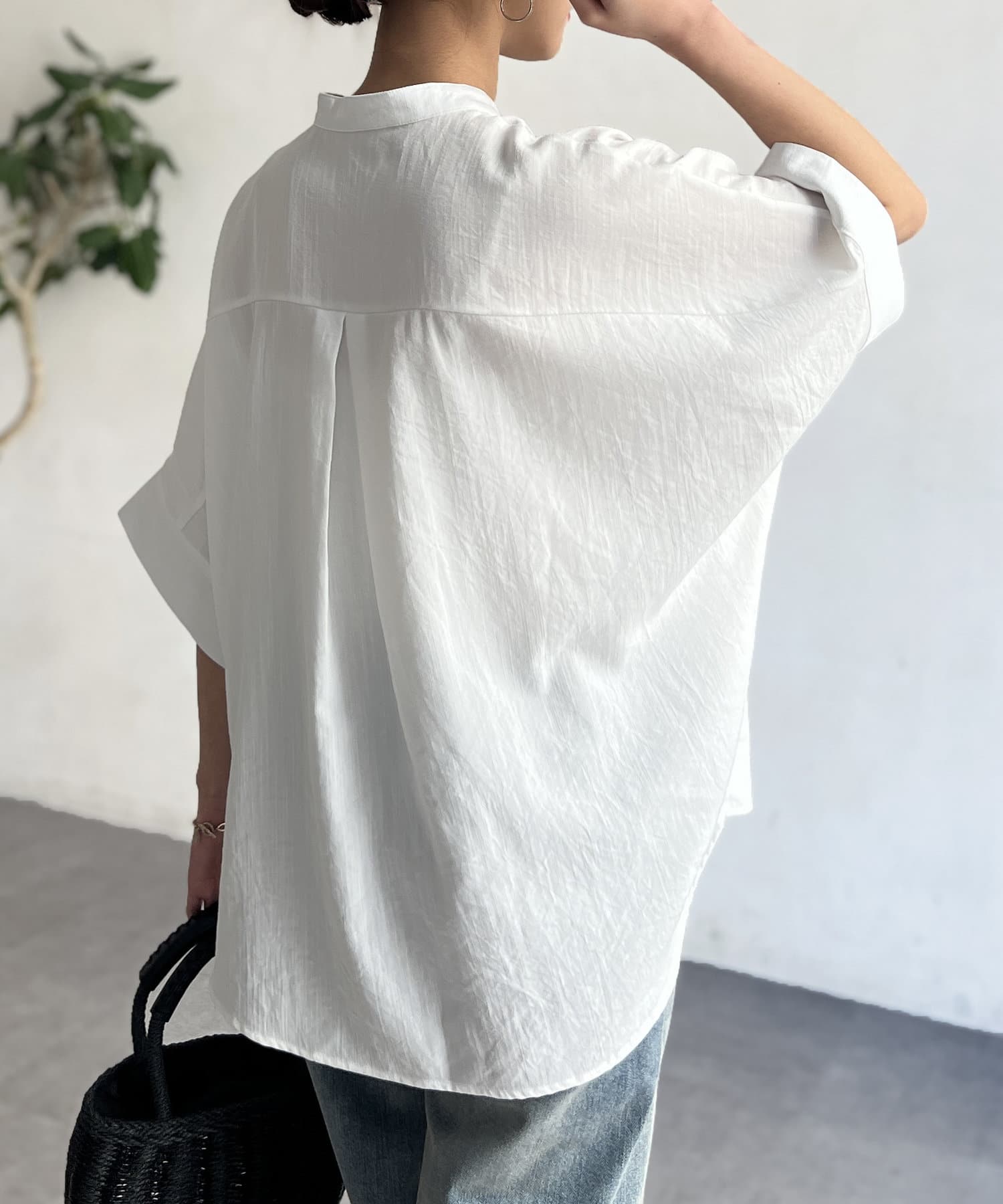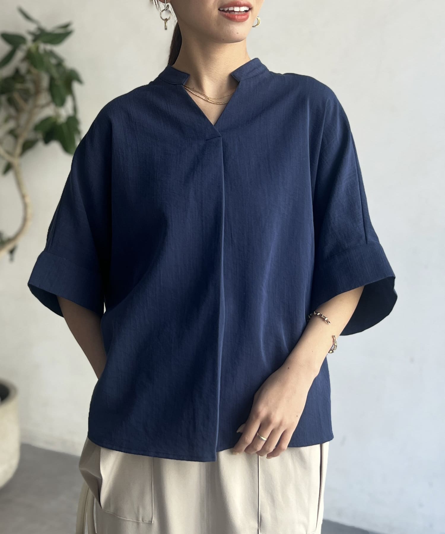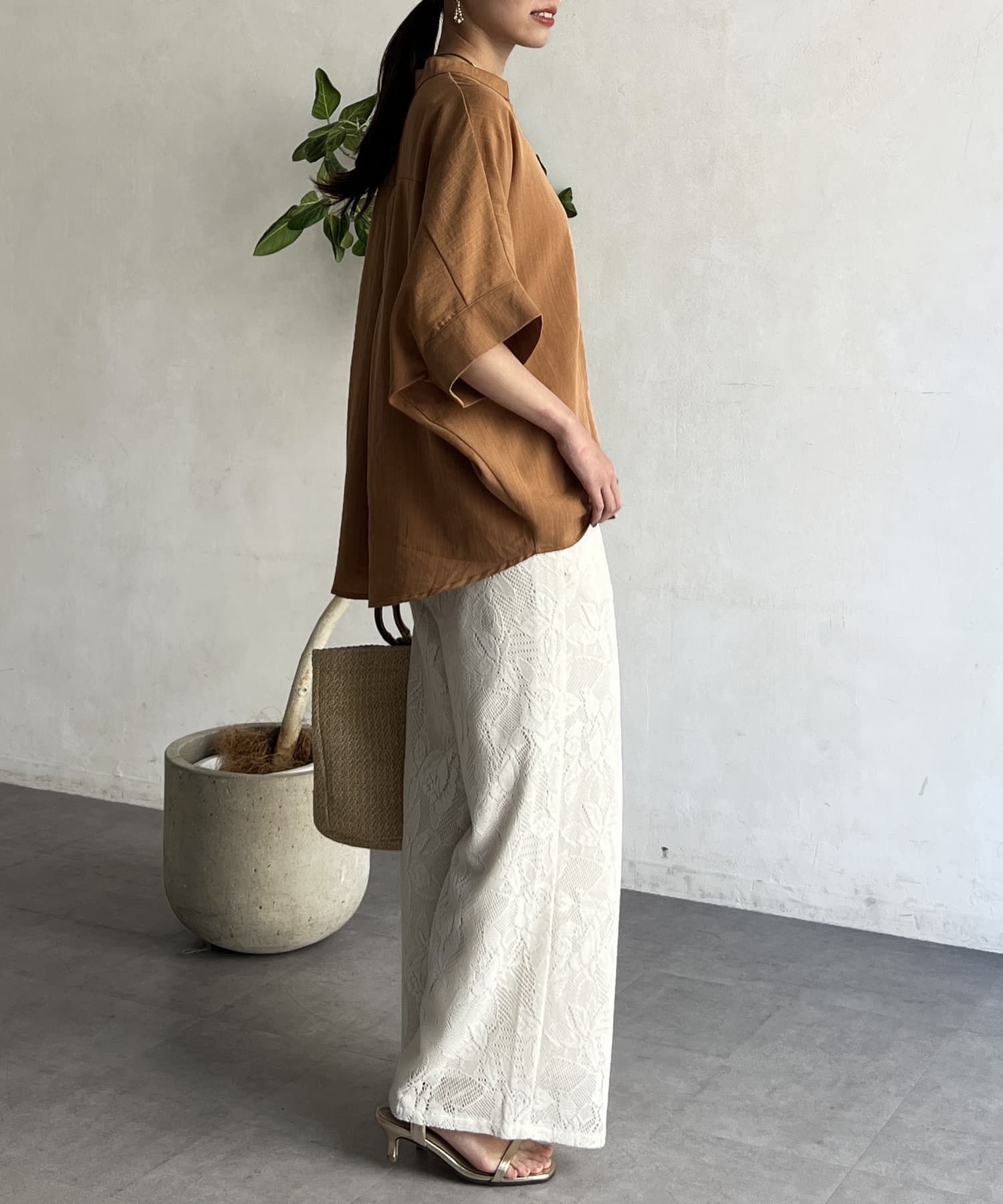 リネンを使ったゆったりとしたシルエットのブラウス。