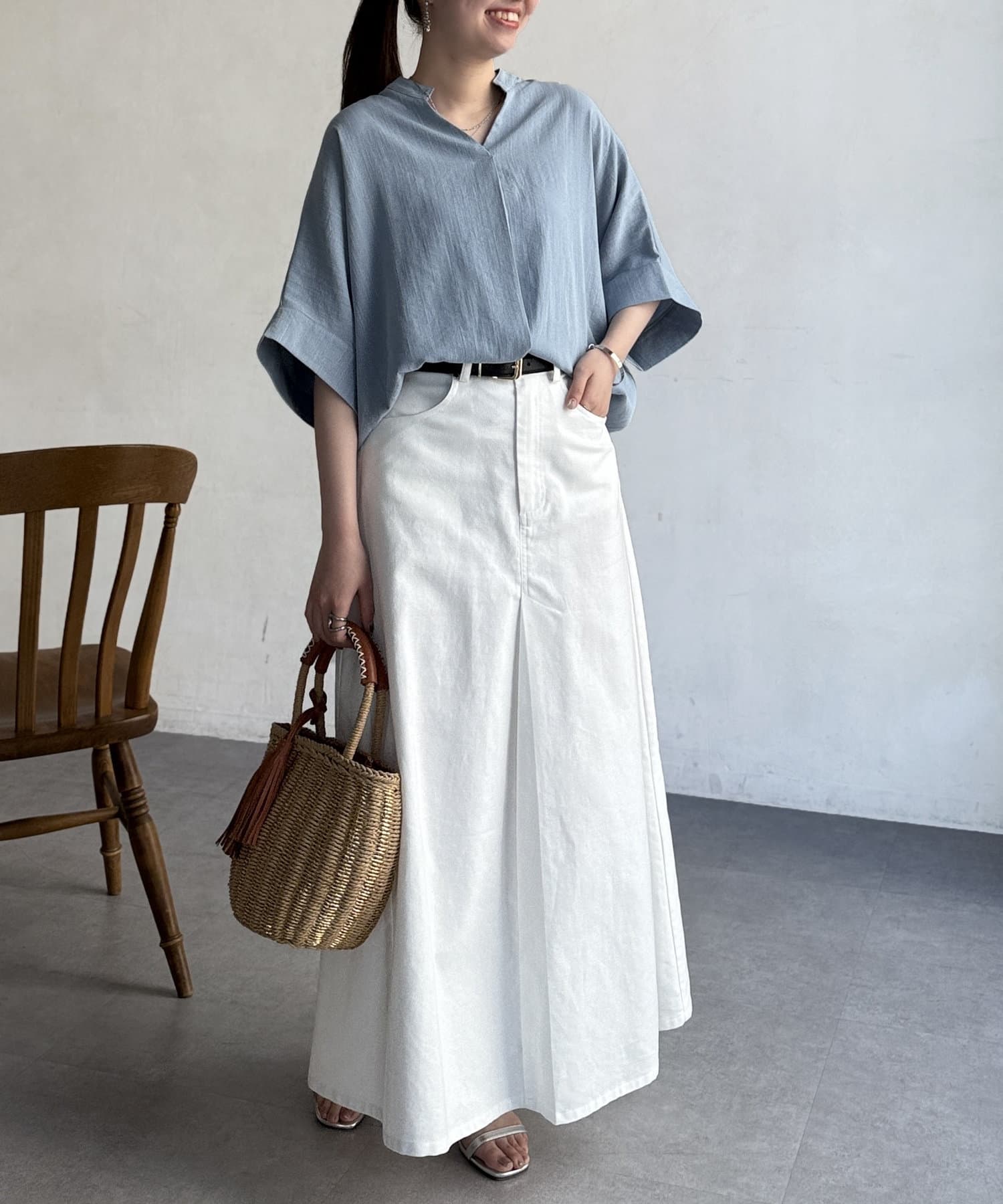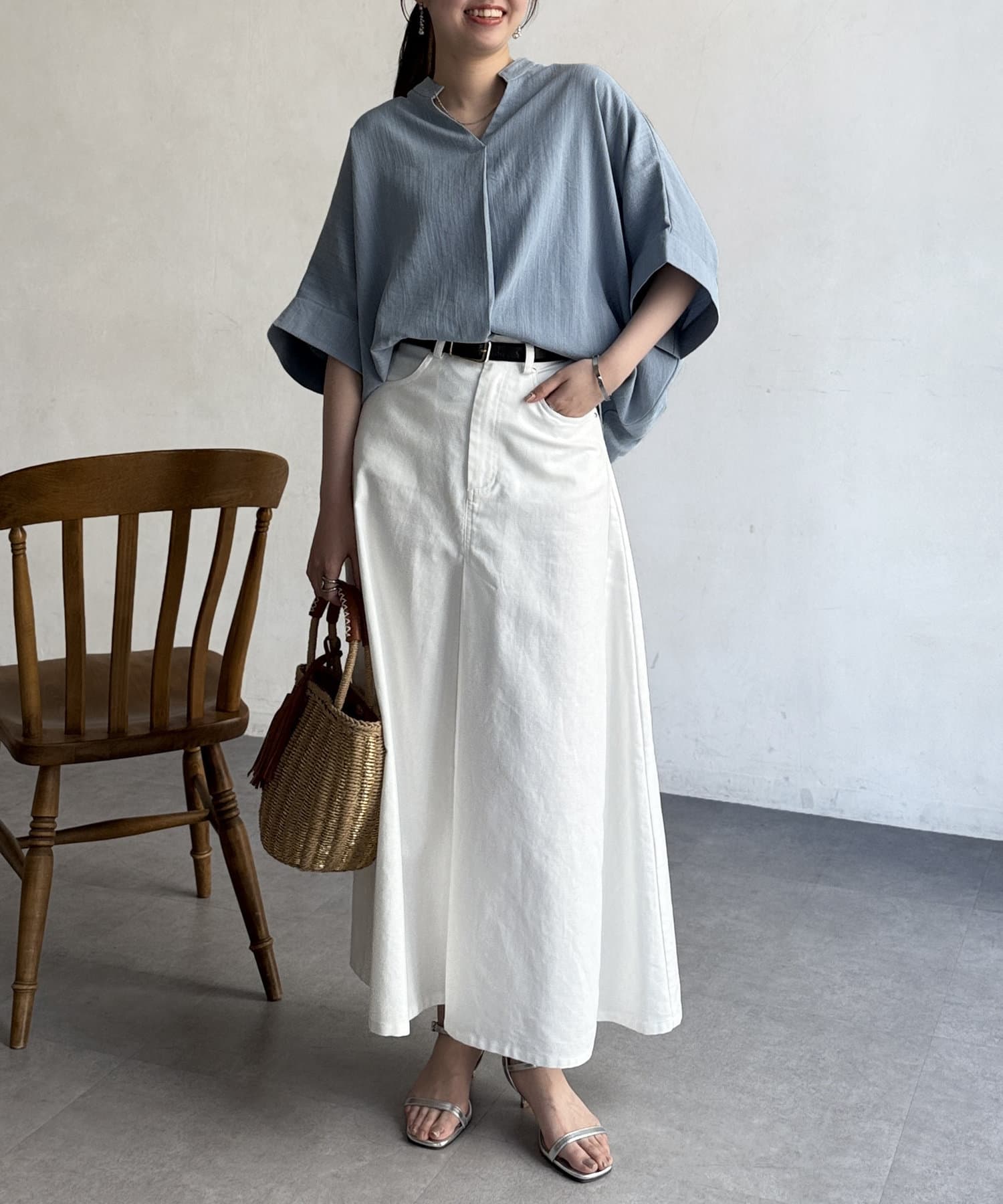 デニムパンツやワイドパンツ、ナロースカートなど幅広いアイテムと合わせていただけます。