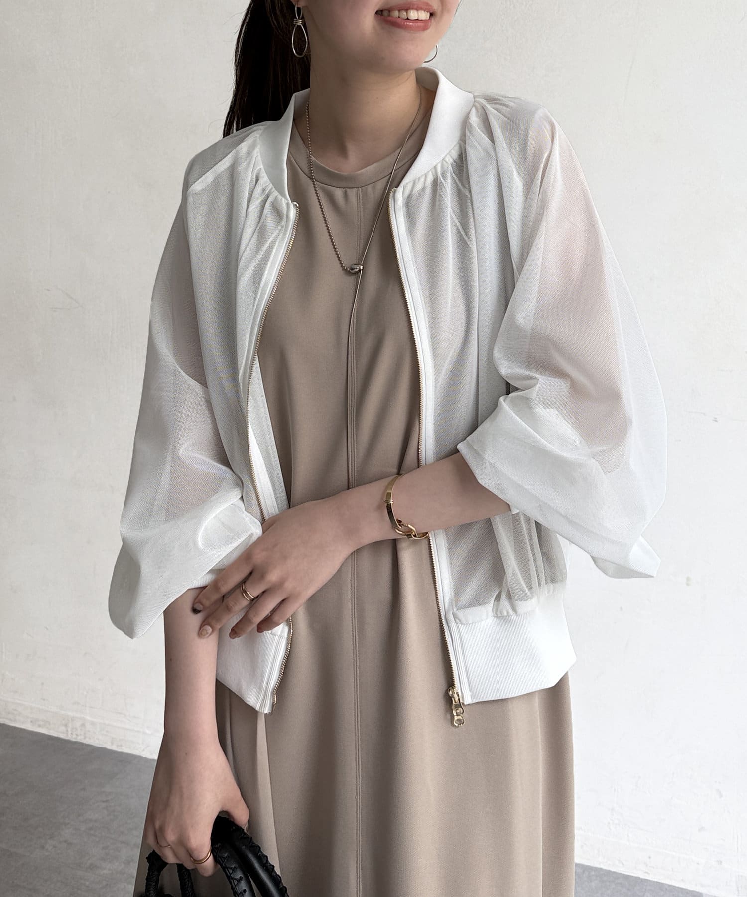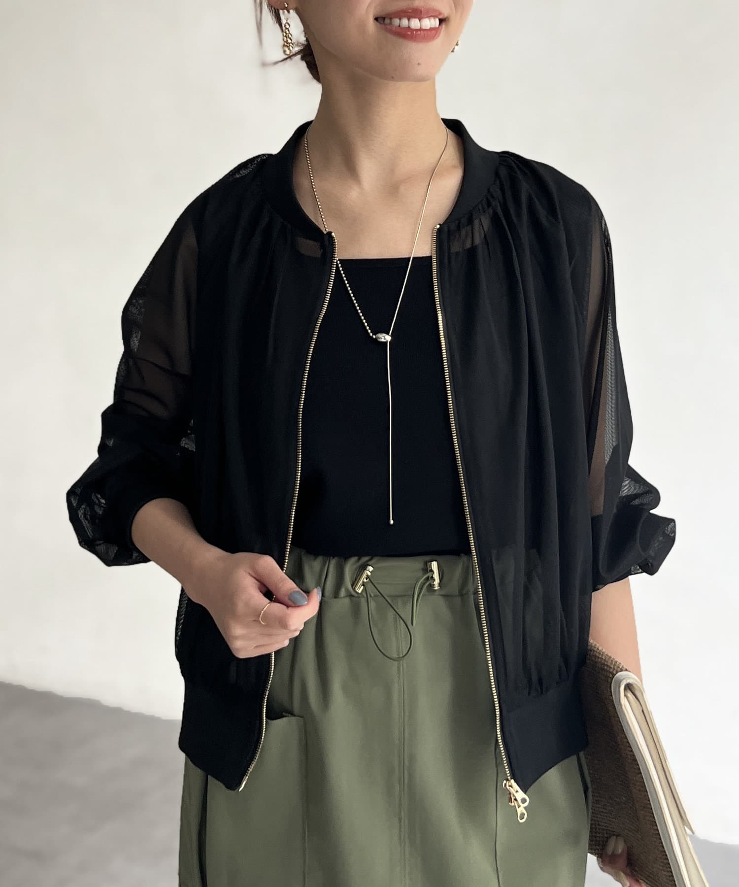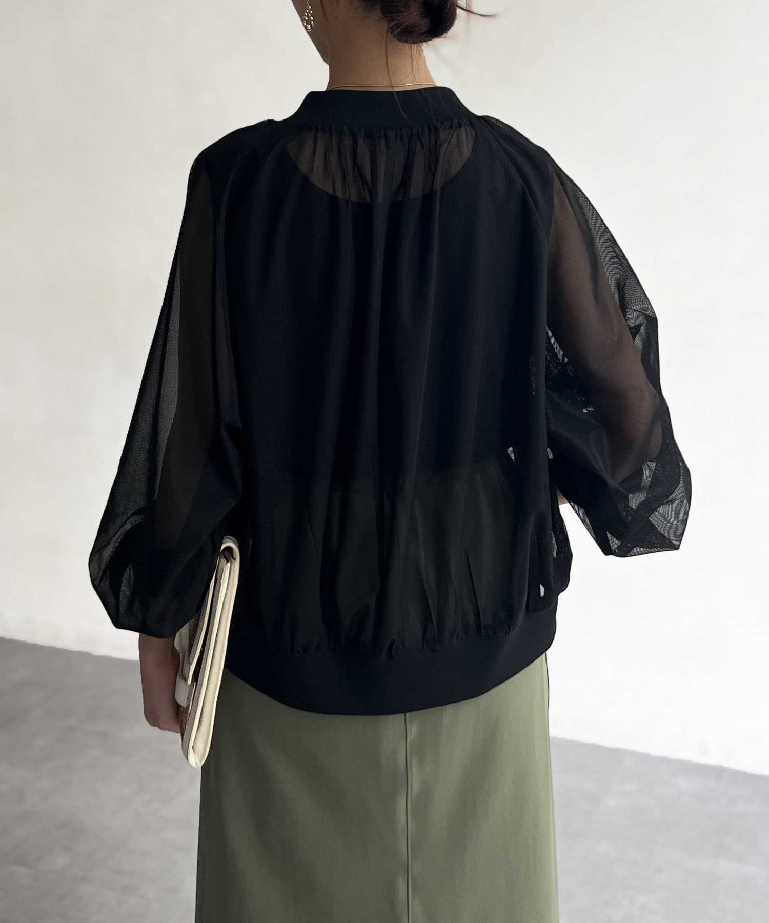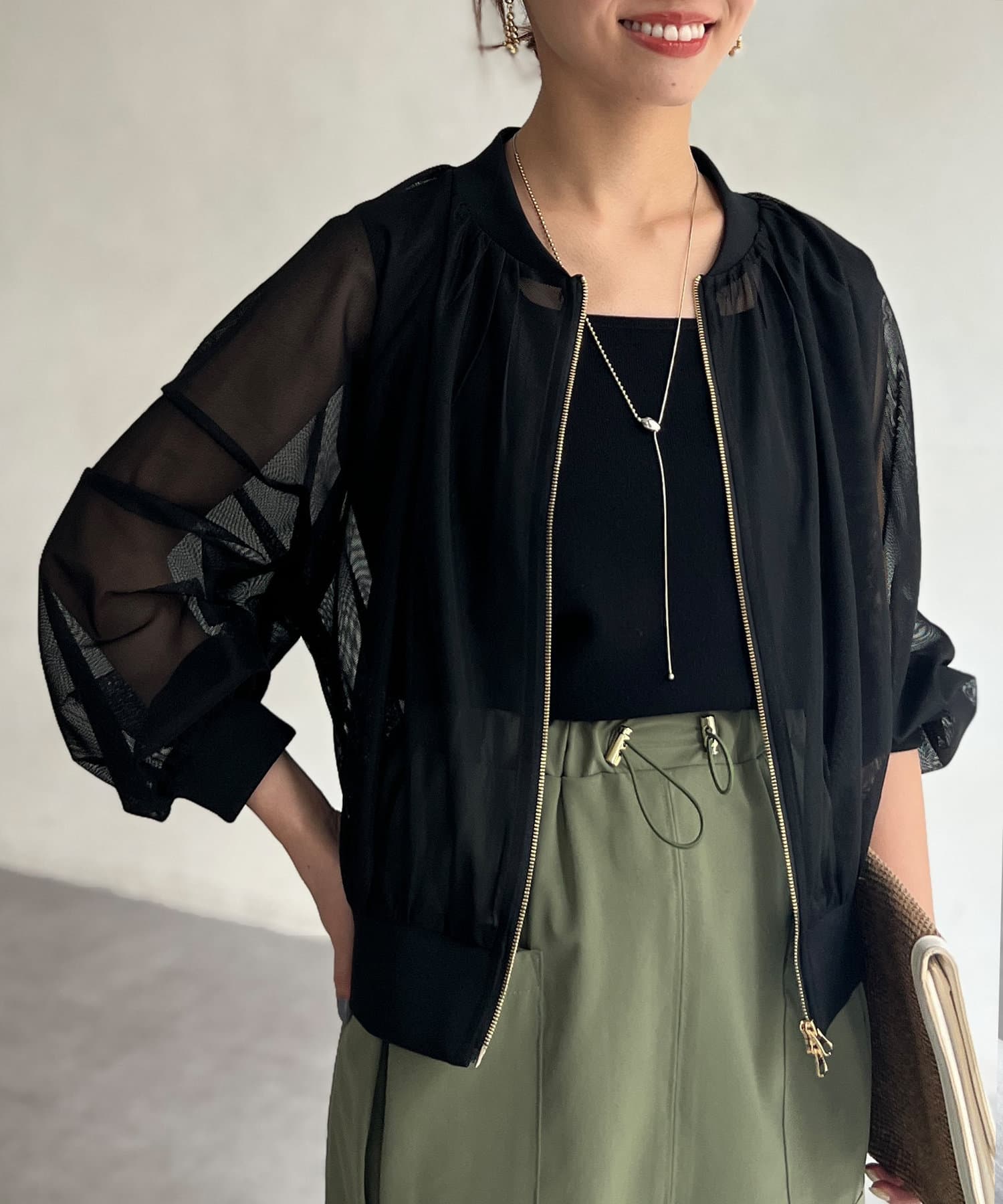 ナチュラルなシアーメッシュが魅力的なブルゾン