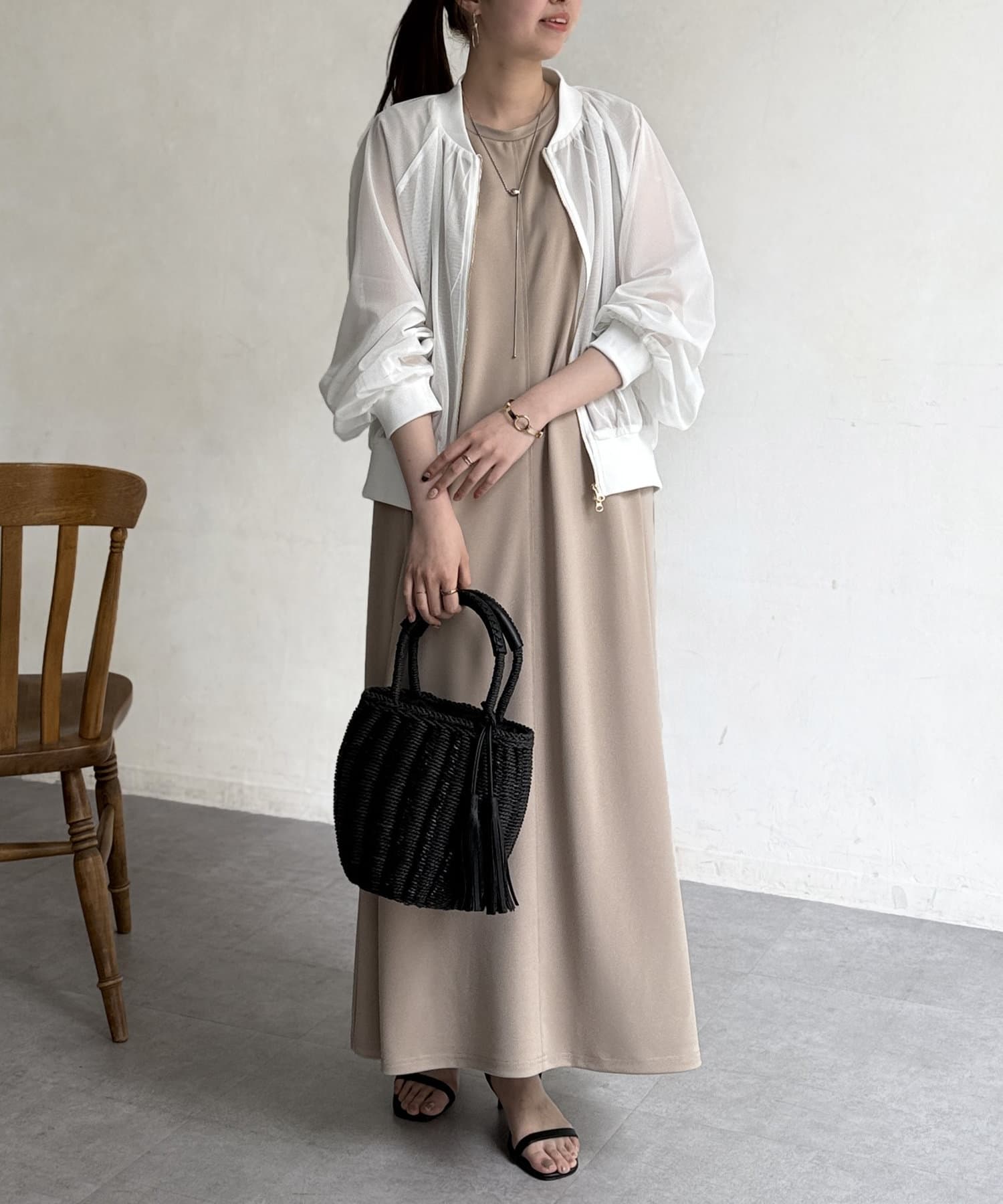 透け感を楽しむコーディネートにオススメなメッシュ素材を使用したブルゾン。