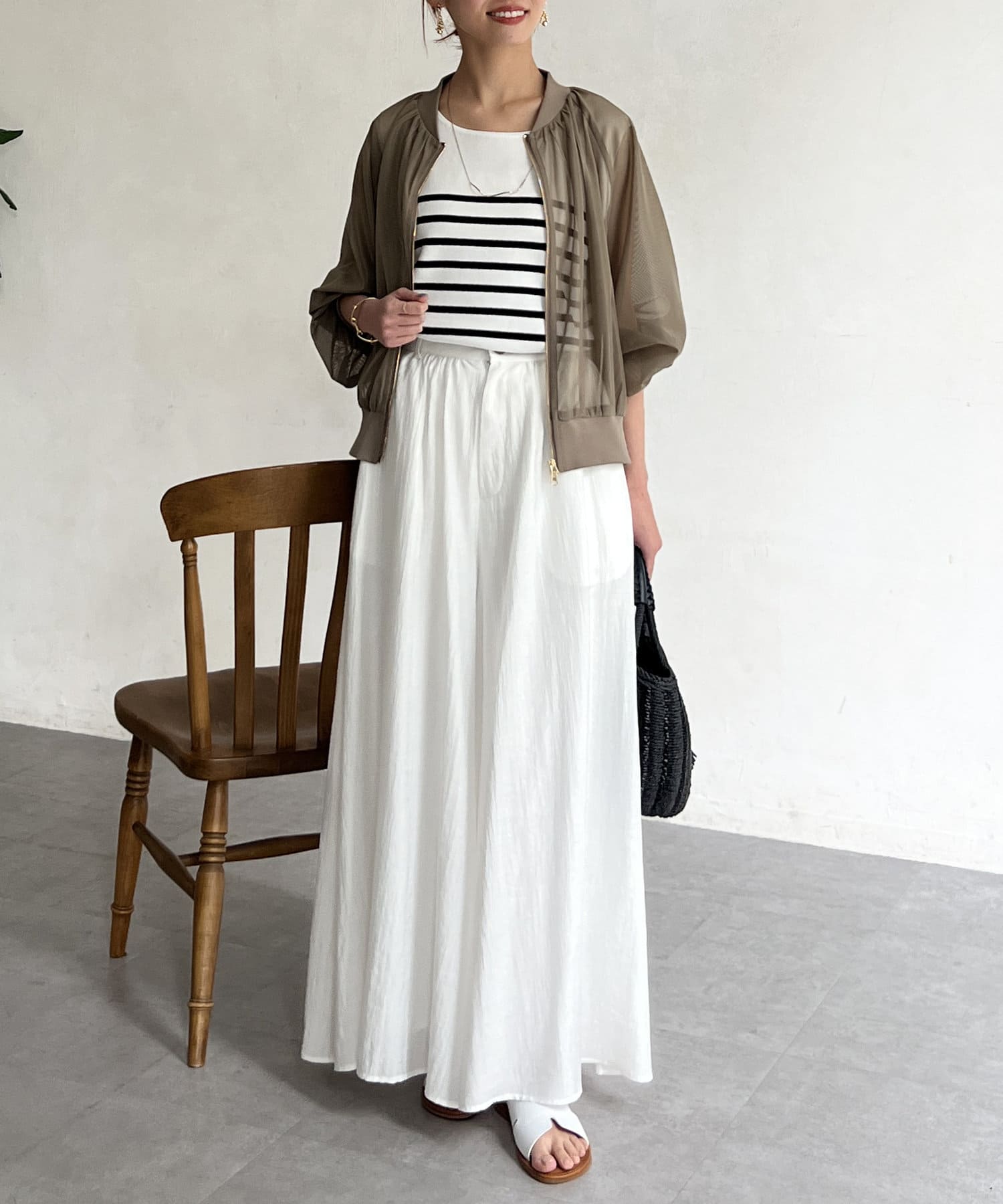 スカートやワンピースに合わせてレディライクなカジュアル×フェミニンスタイルも◎