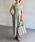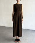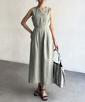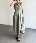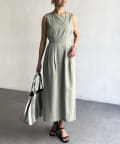 スッキリとしたIラインシルエットと切り替え部分に入ったタックが、