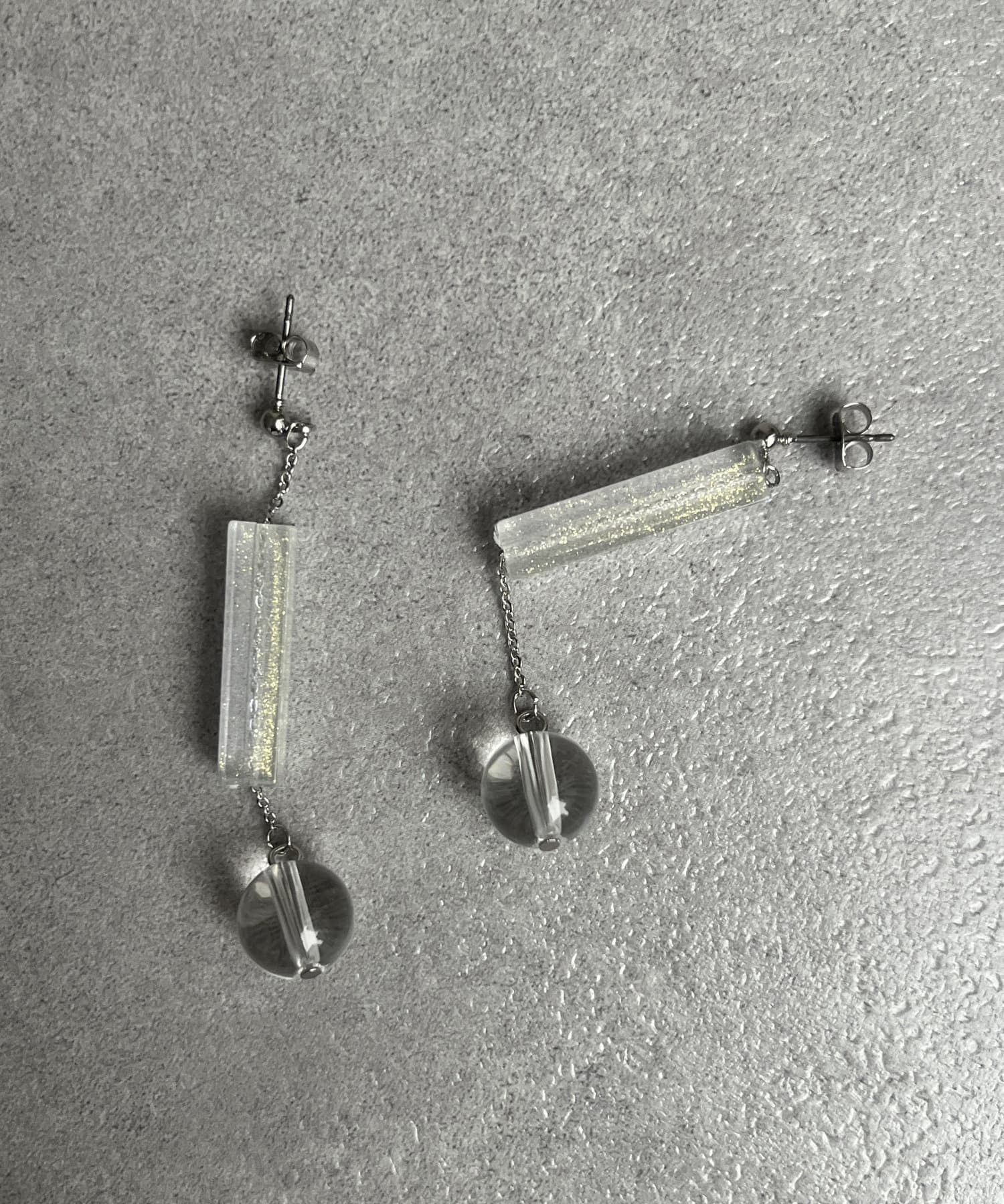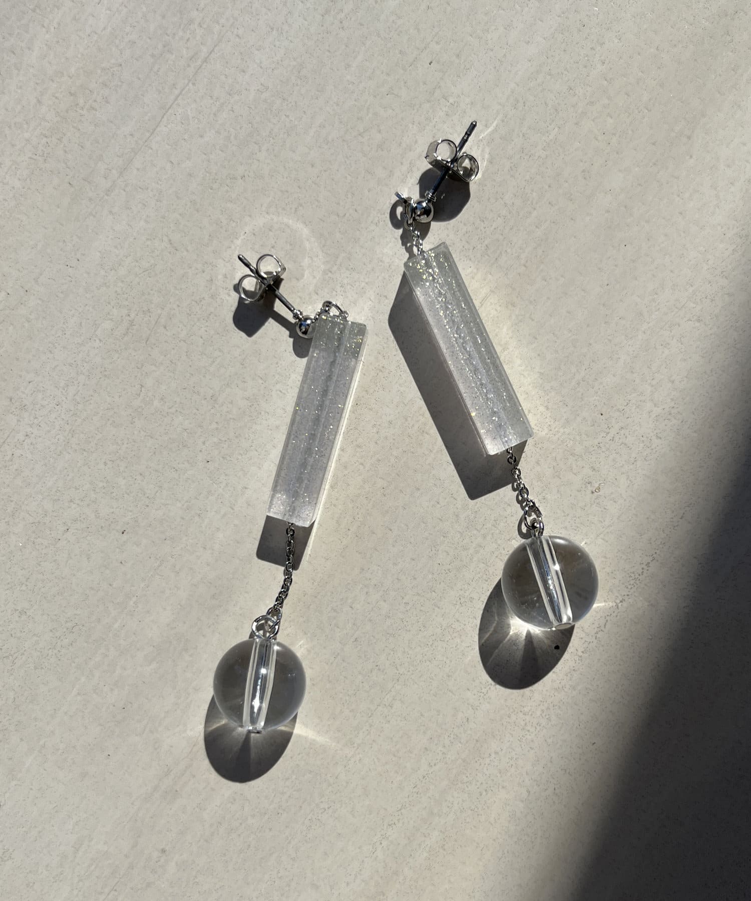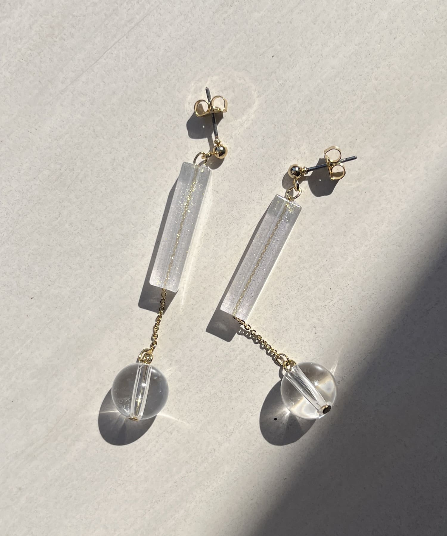 クリア棒のラメ感と透明感のあるビーズが上品な印象に♪
