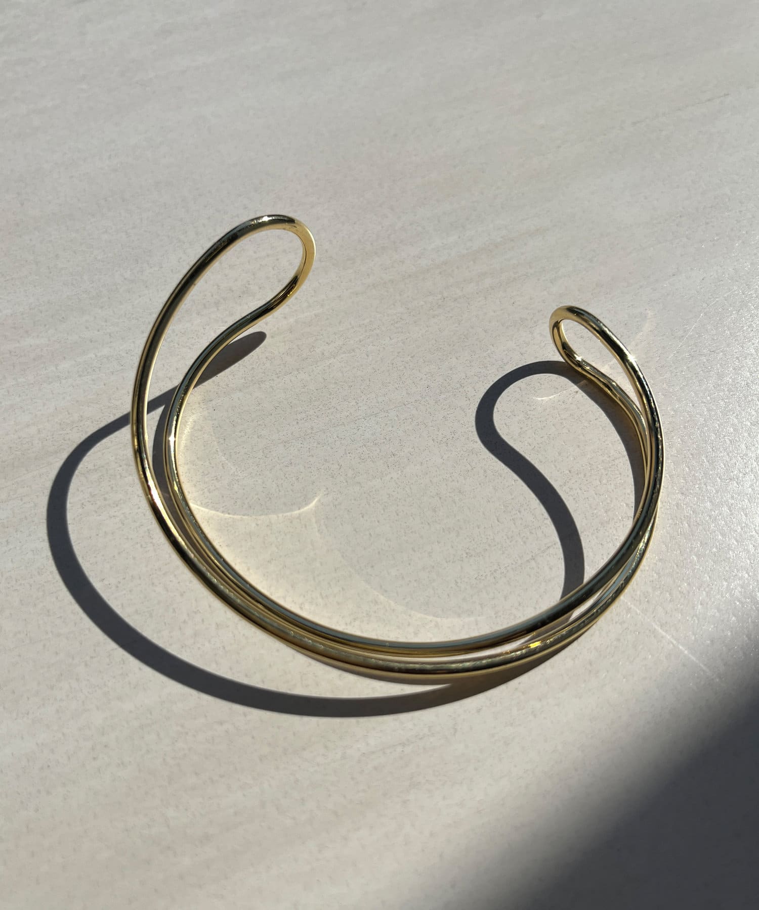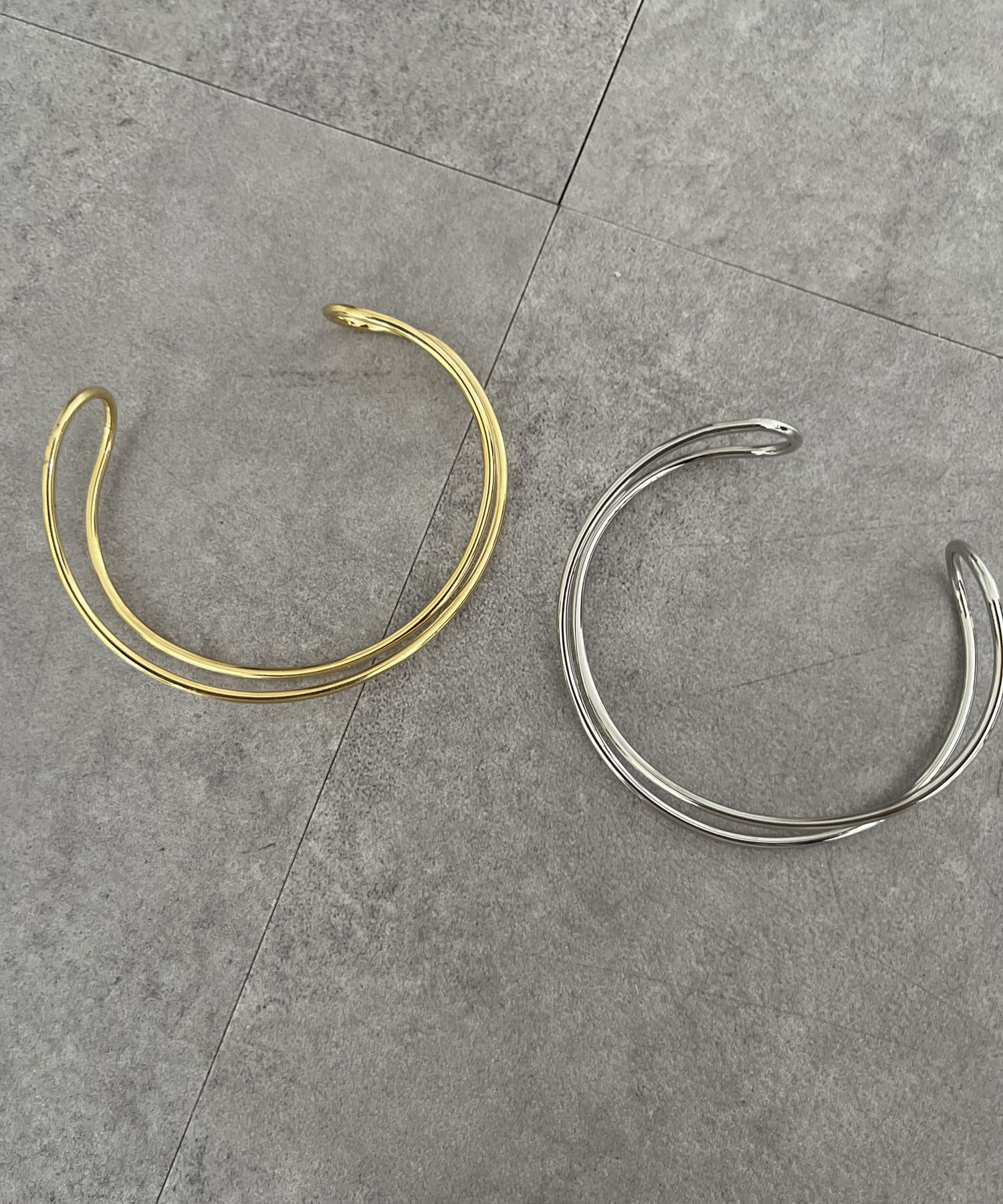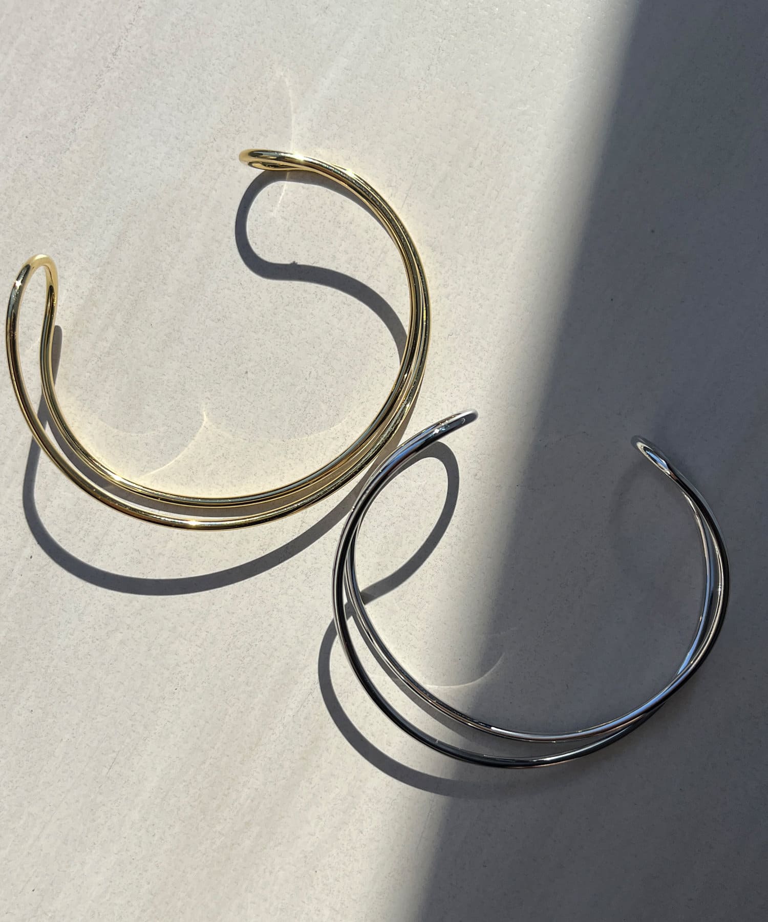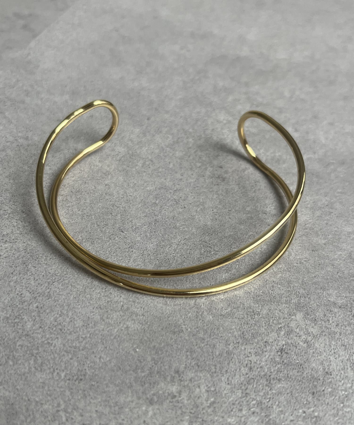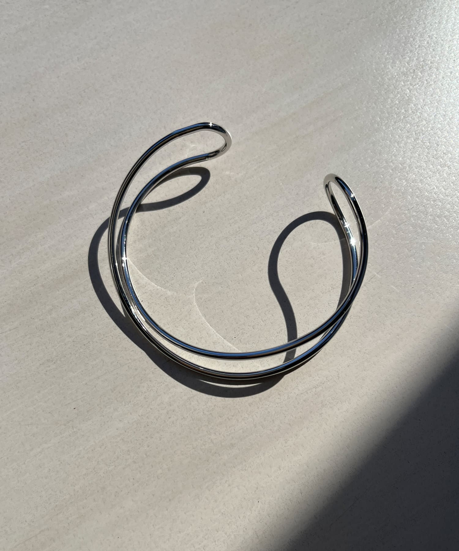 アンバランスな二本のラインが目を惹くクロスブレスレット。