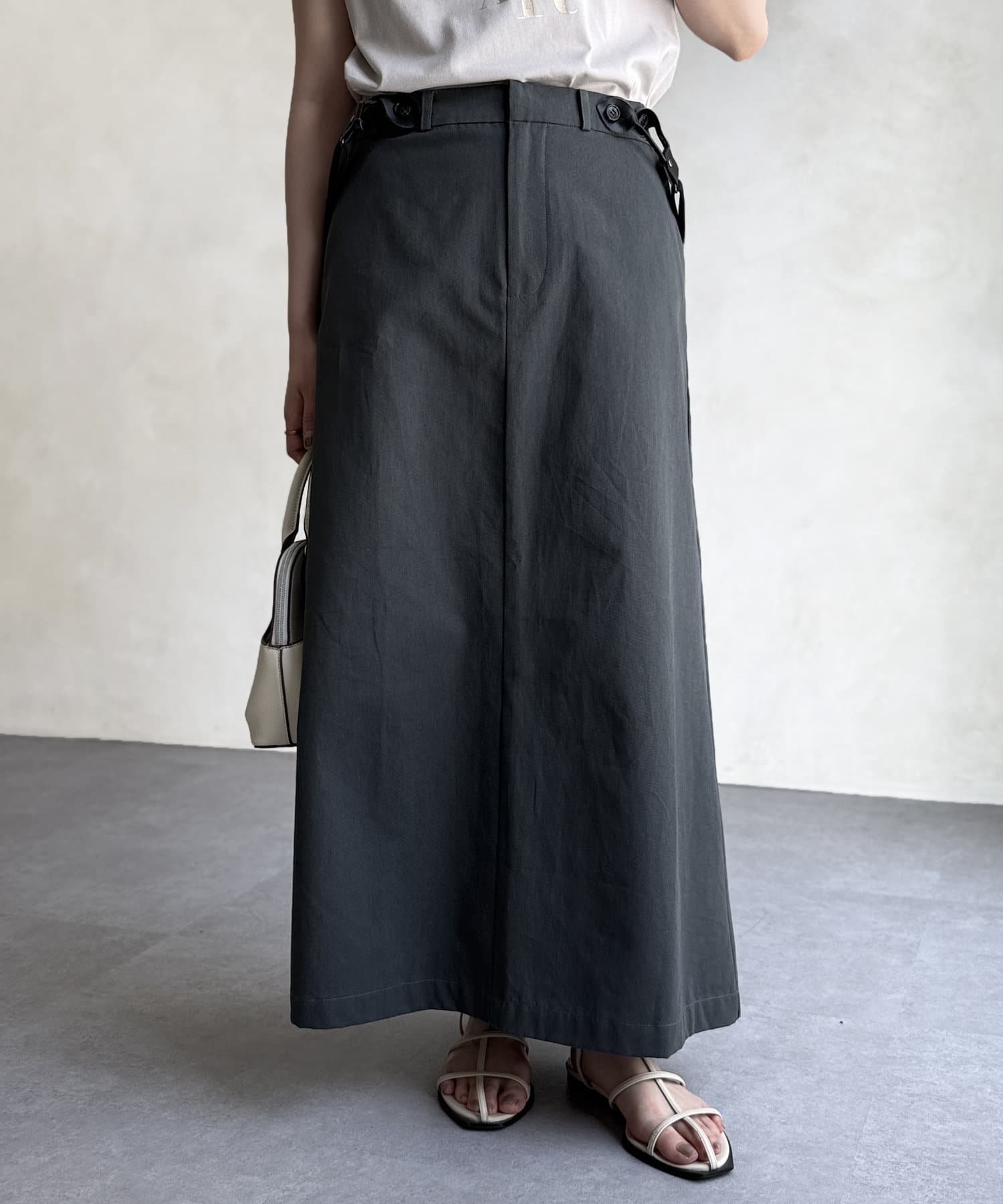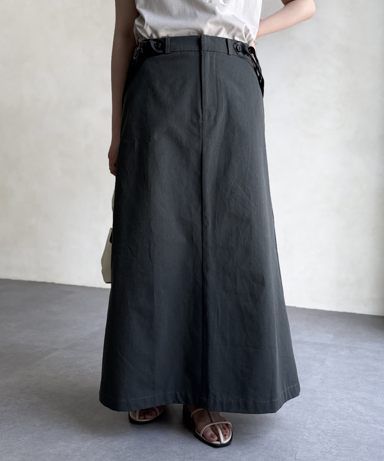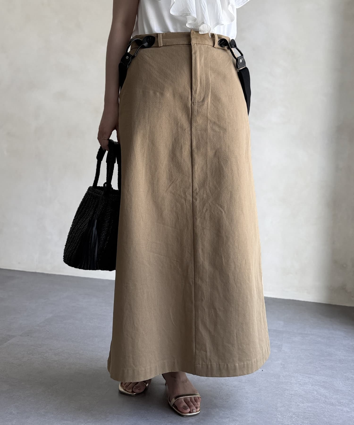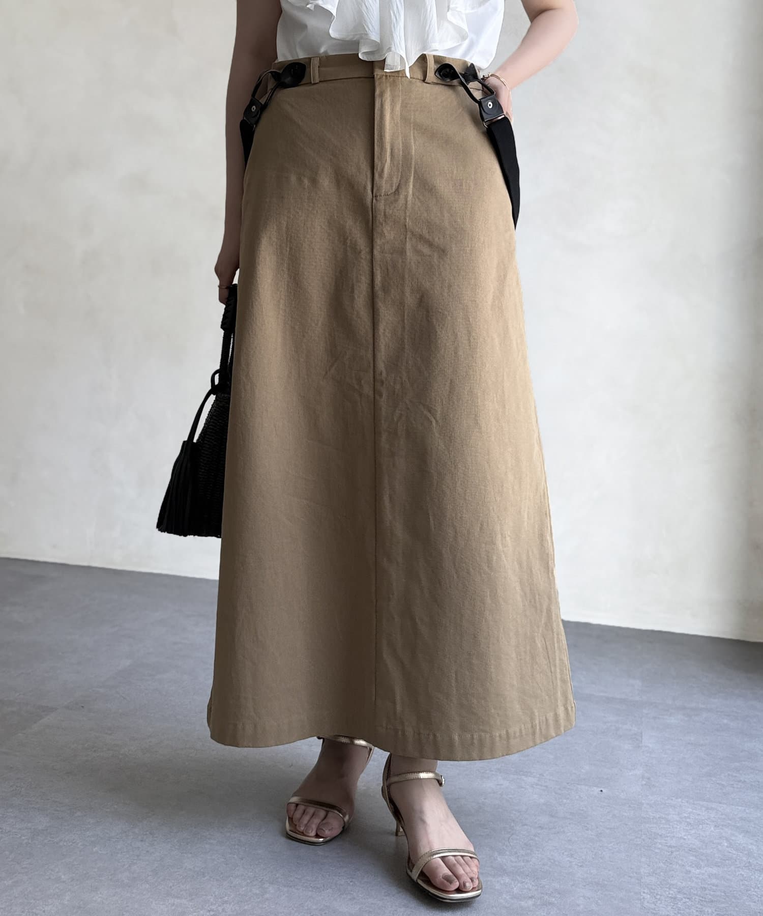 シルエットが大人な印象なサス付きスカート