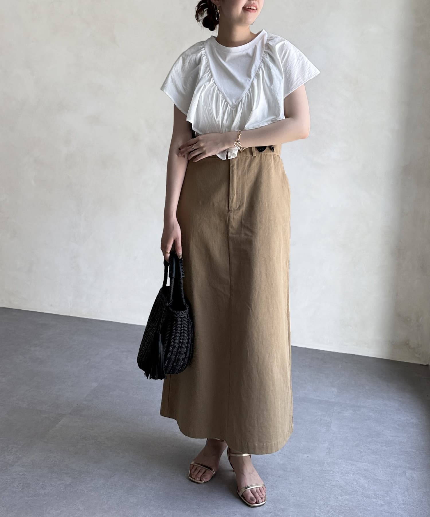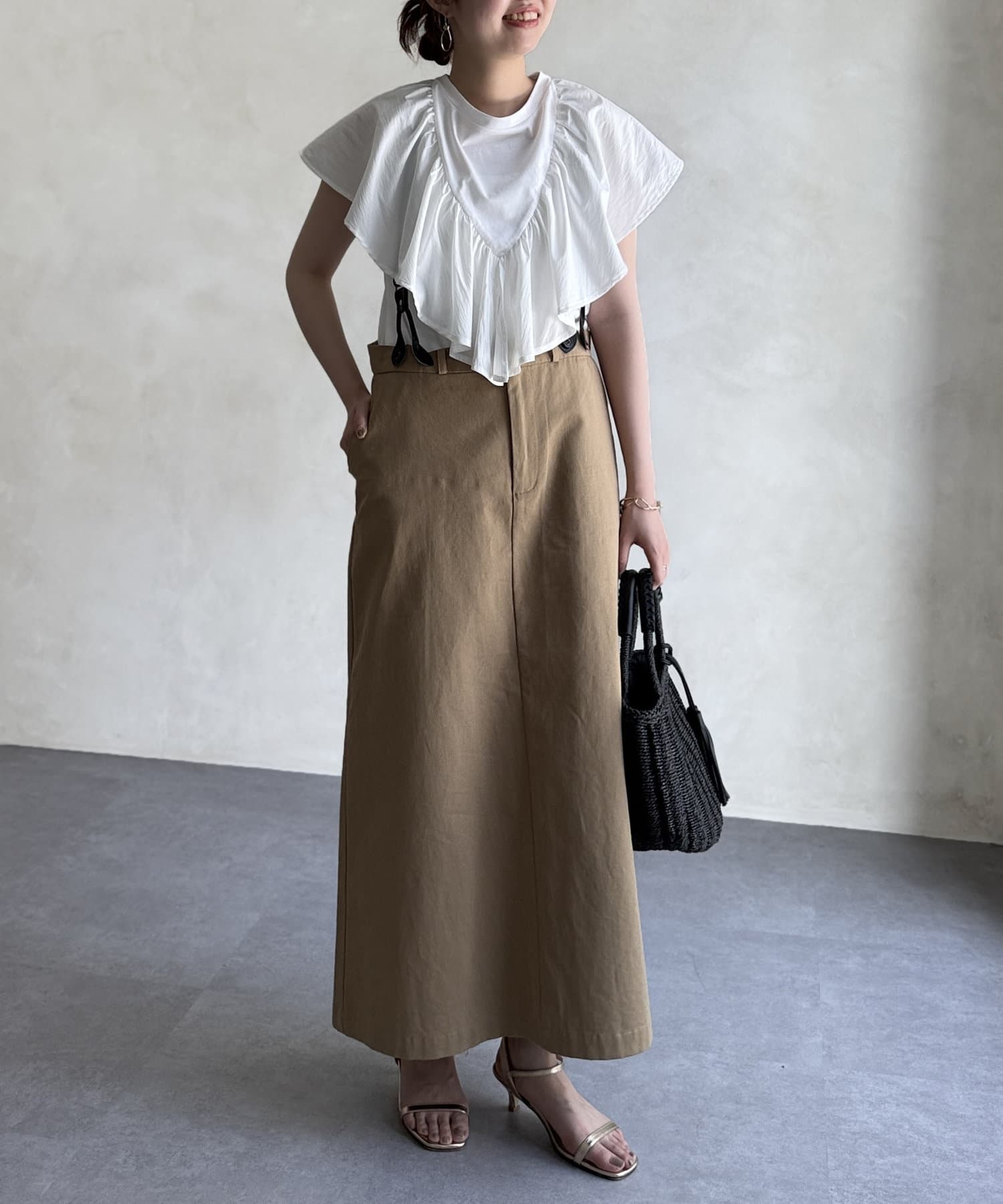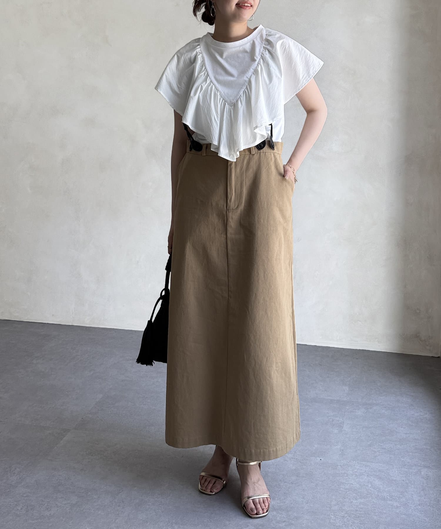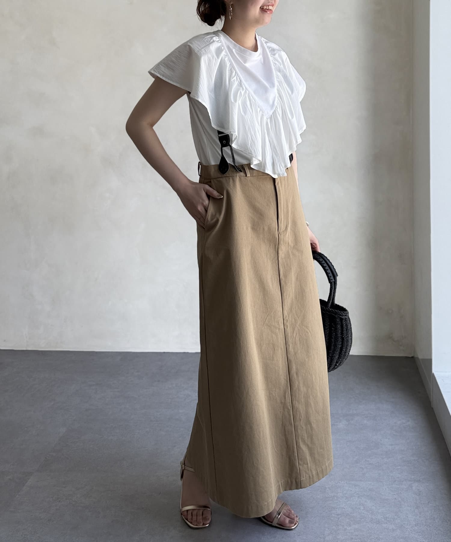シルエットが大人な印象なサス付きスカート