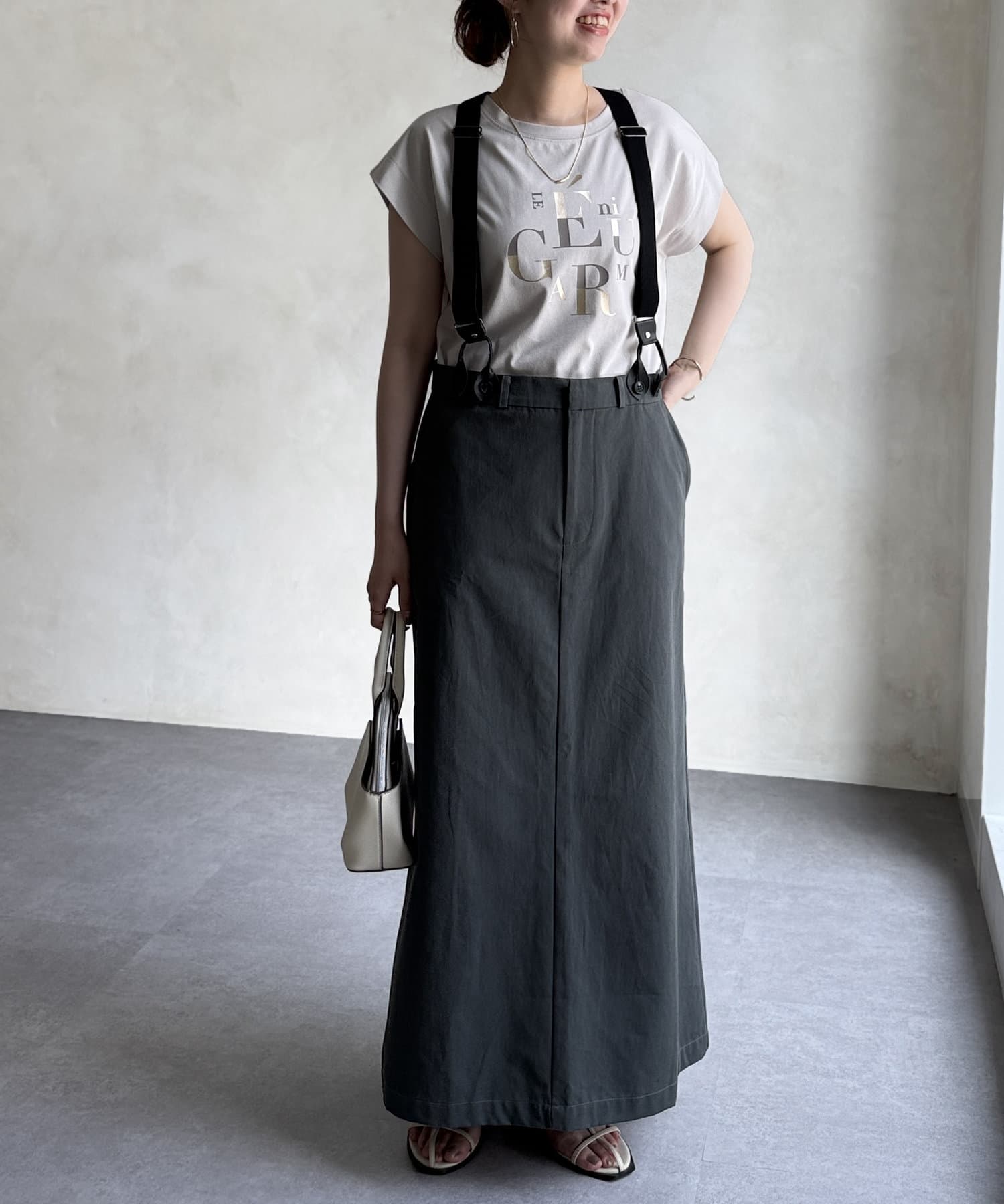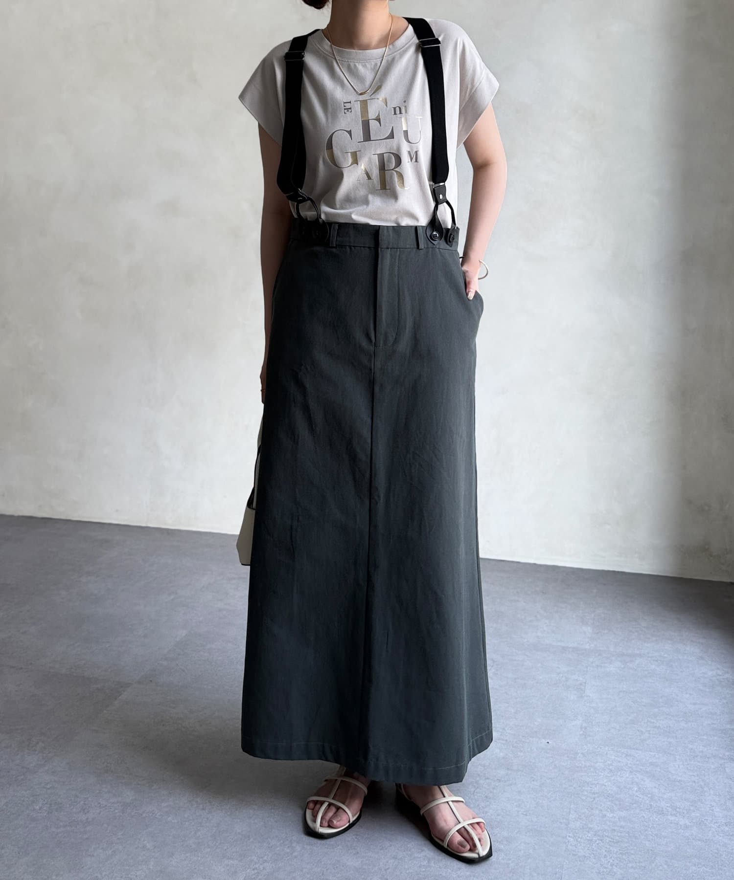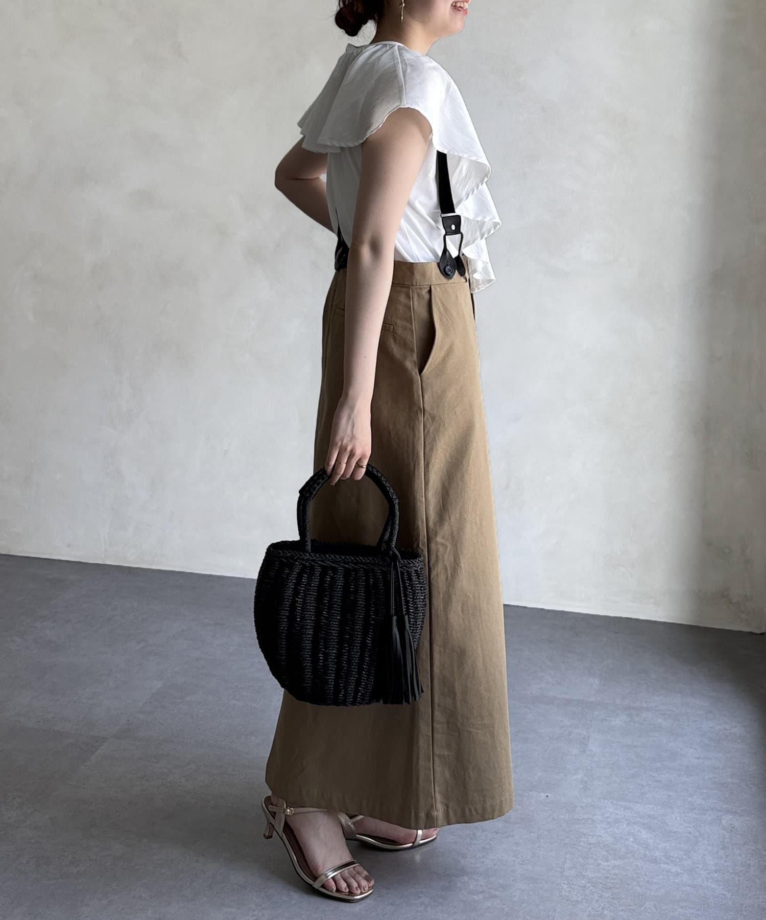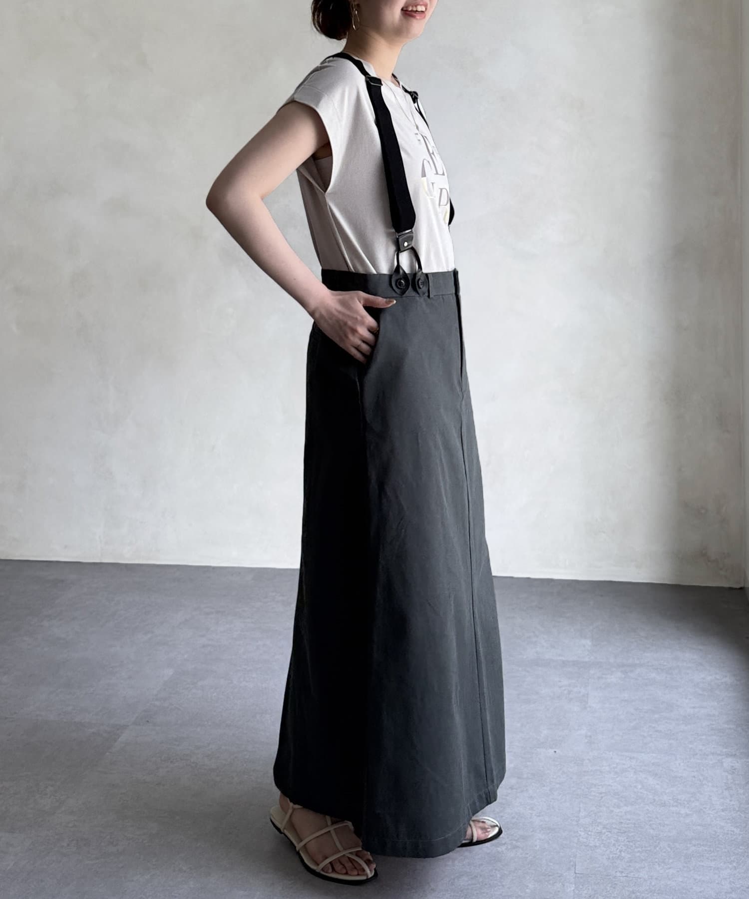 サスペンダーはボタンで取り外し可能なので、シーンに合わせてシンプルなスカートとしても着用可能◎