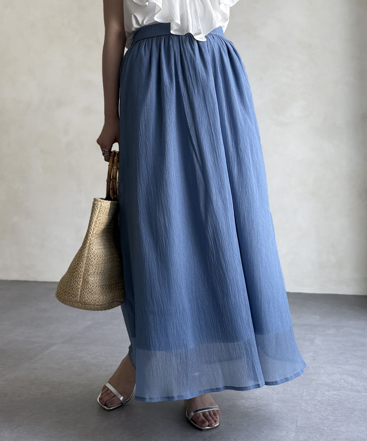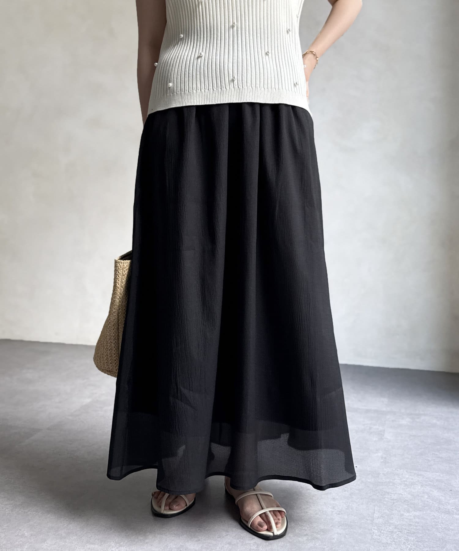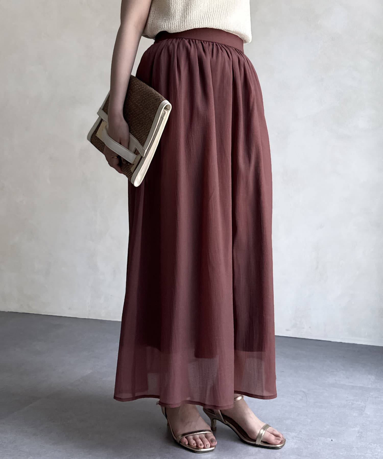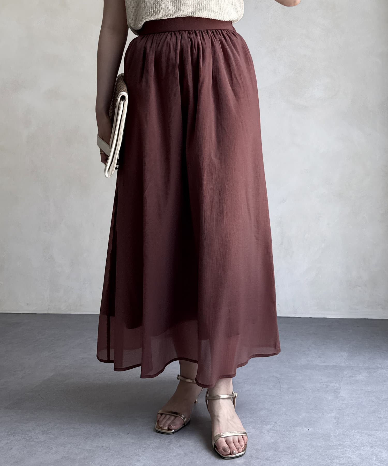 セミシアーの軽い生地を使用しふんわりとした涼しげな印象のスカート。