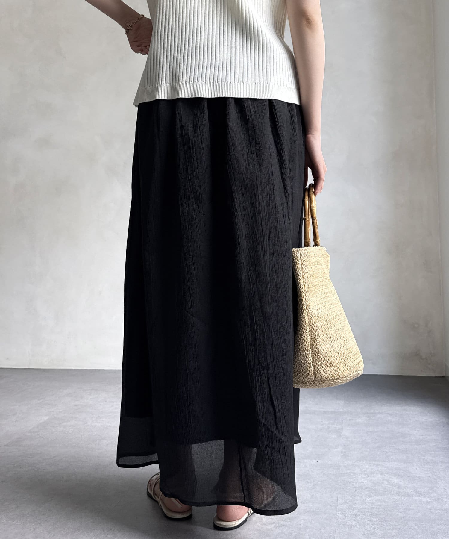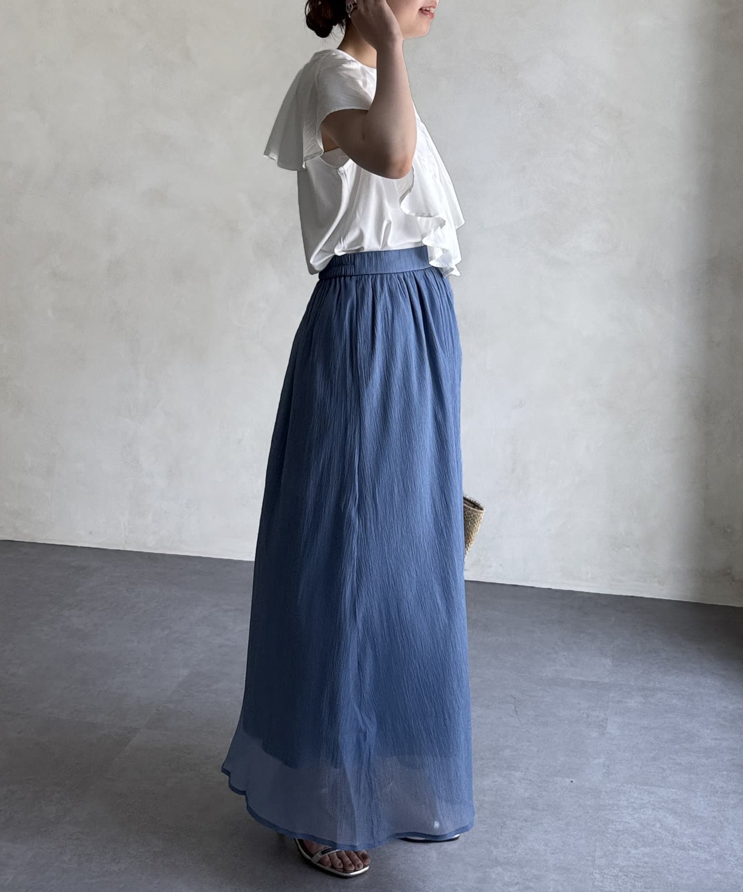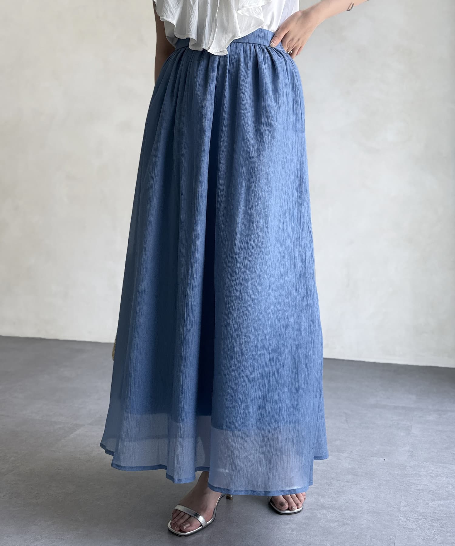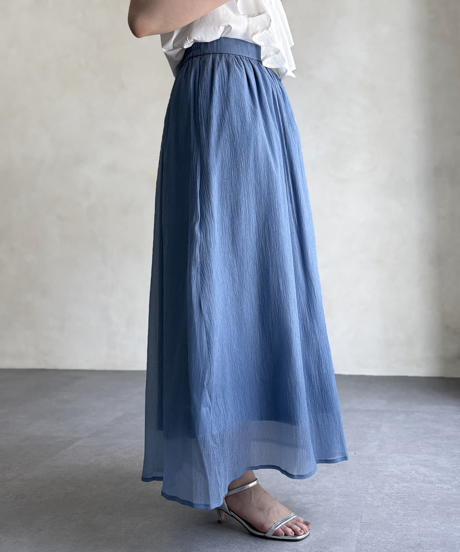 セミシアーの軽い生地を使用しふんわりとした涼しげな印象のスカート。