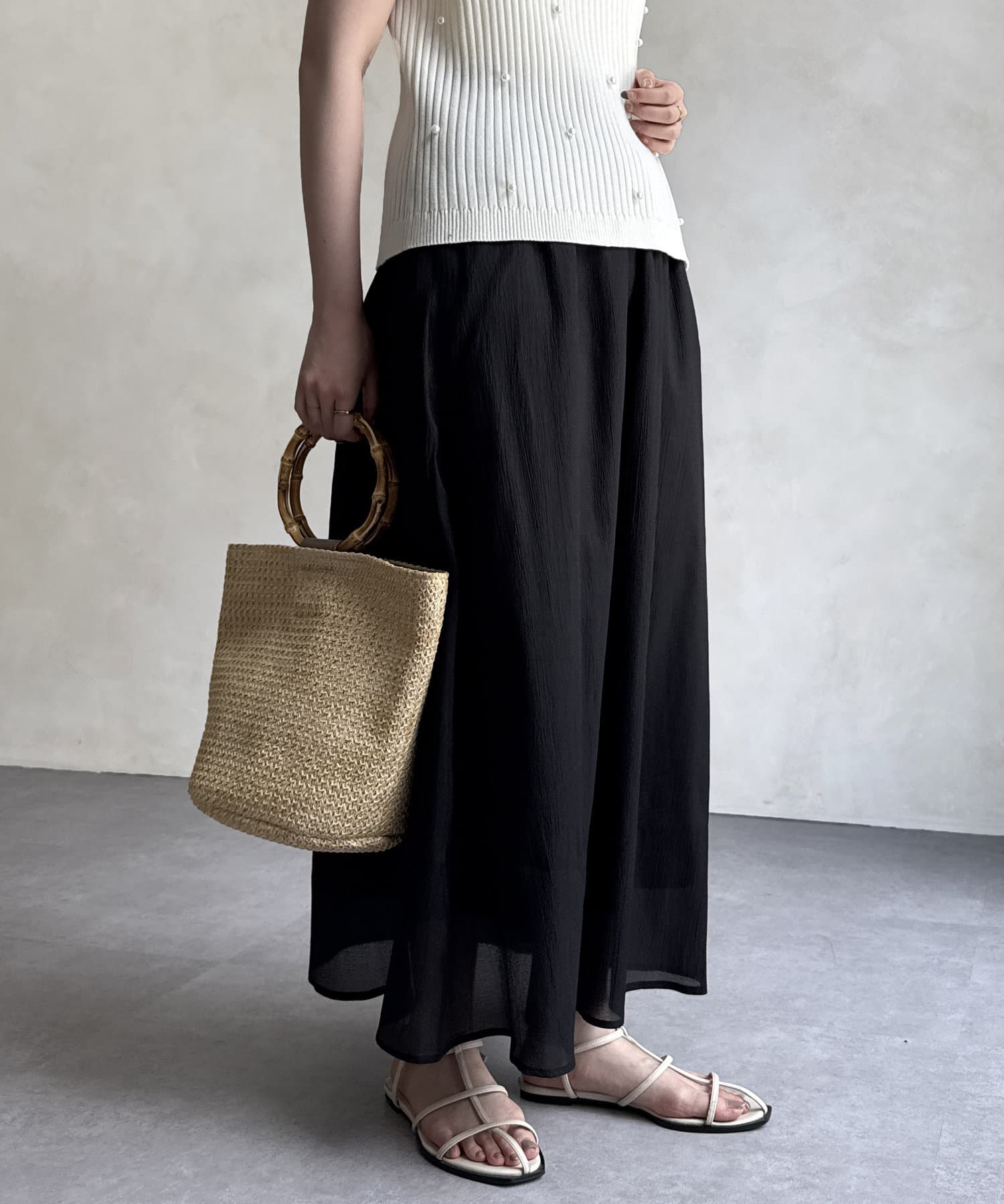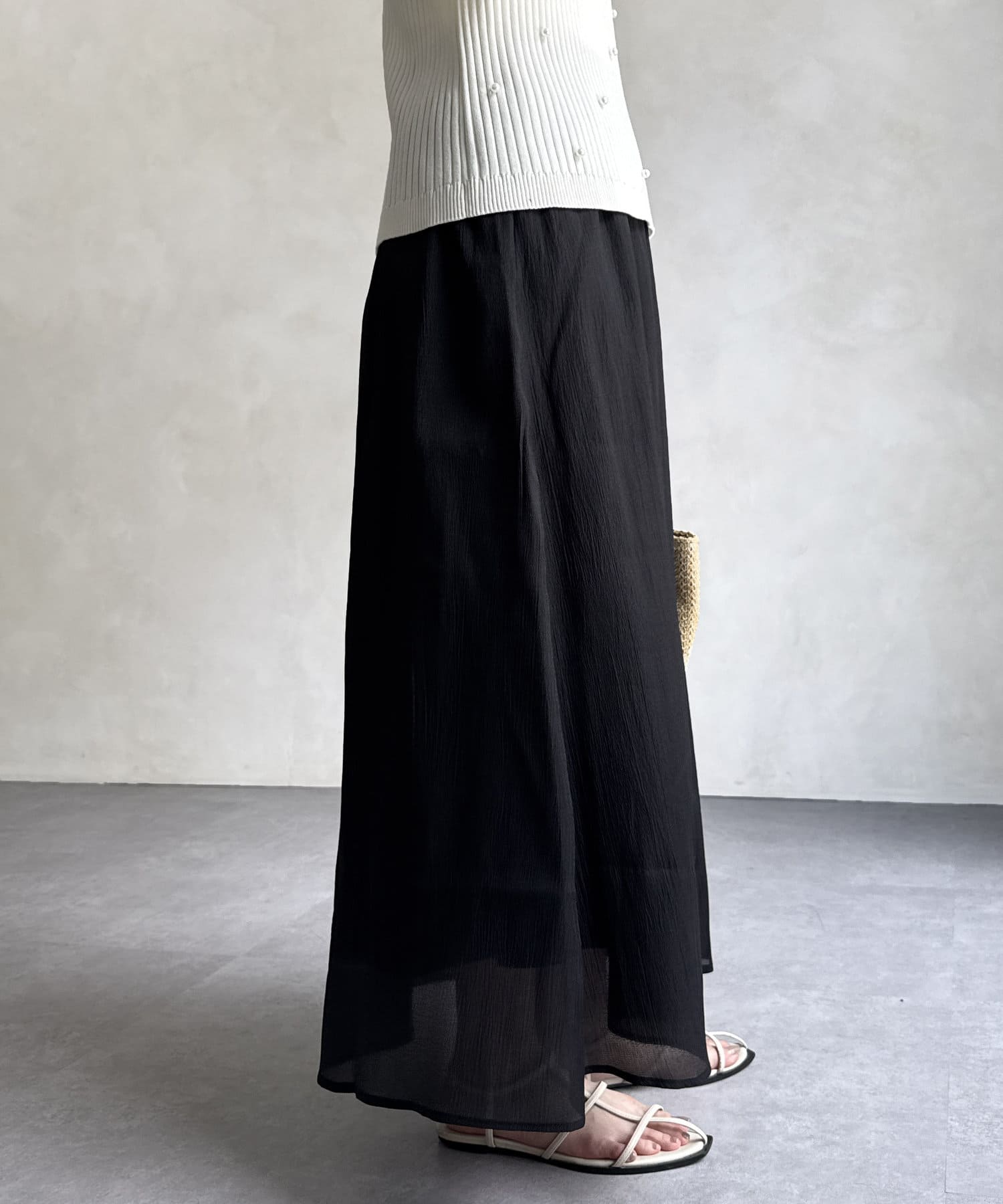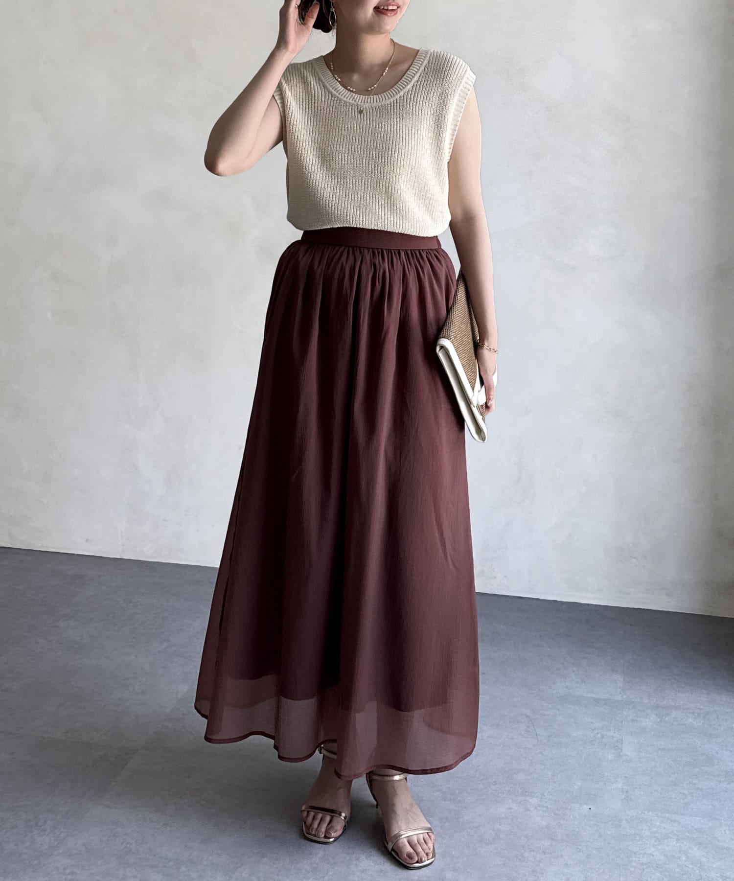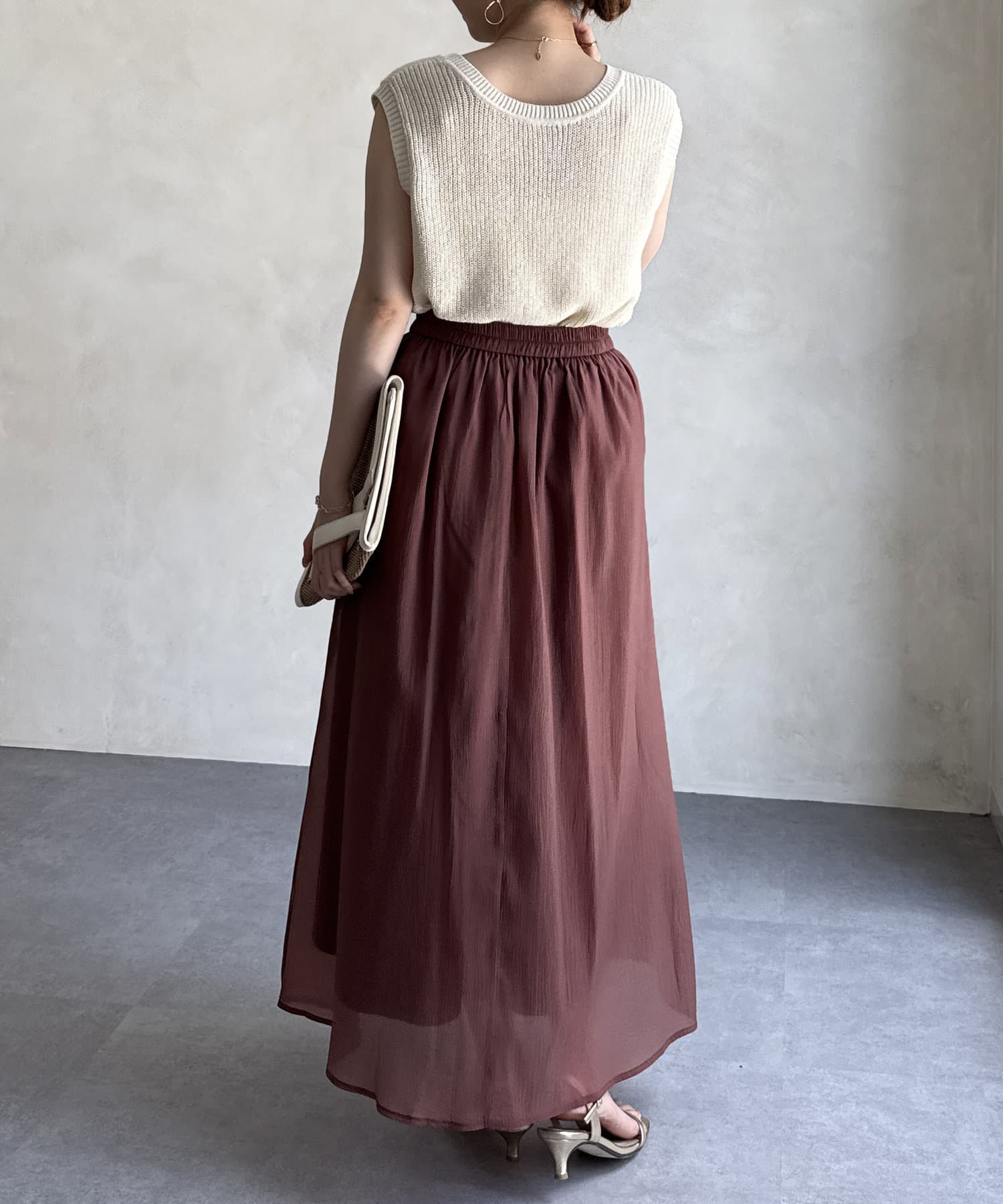 セミシアーの軽い生地を使用しふんわりとした涼しげな印象のスカート。