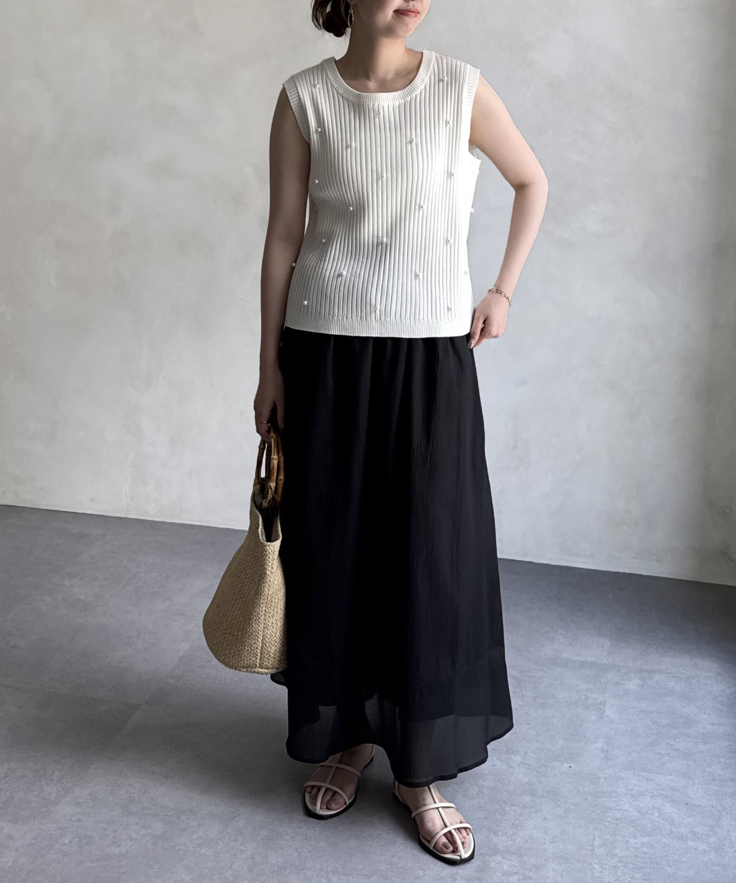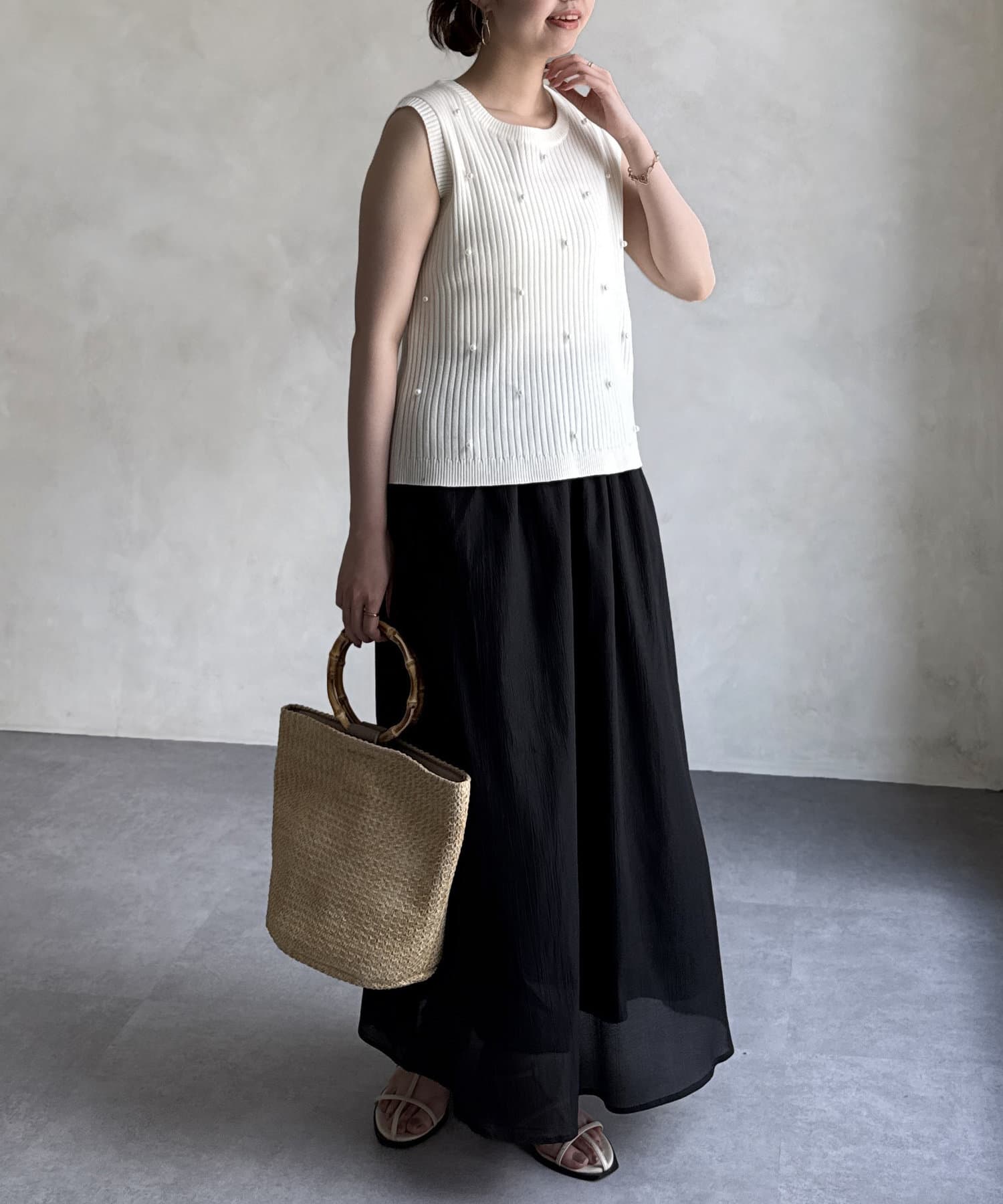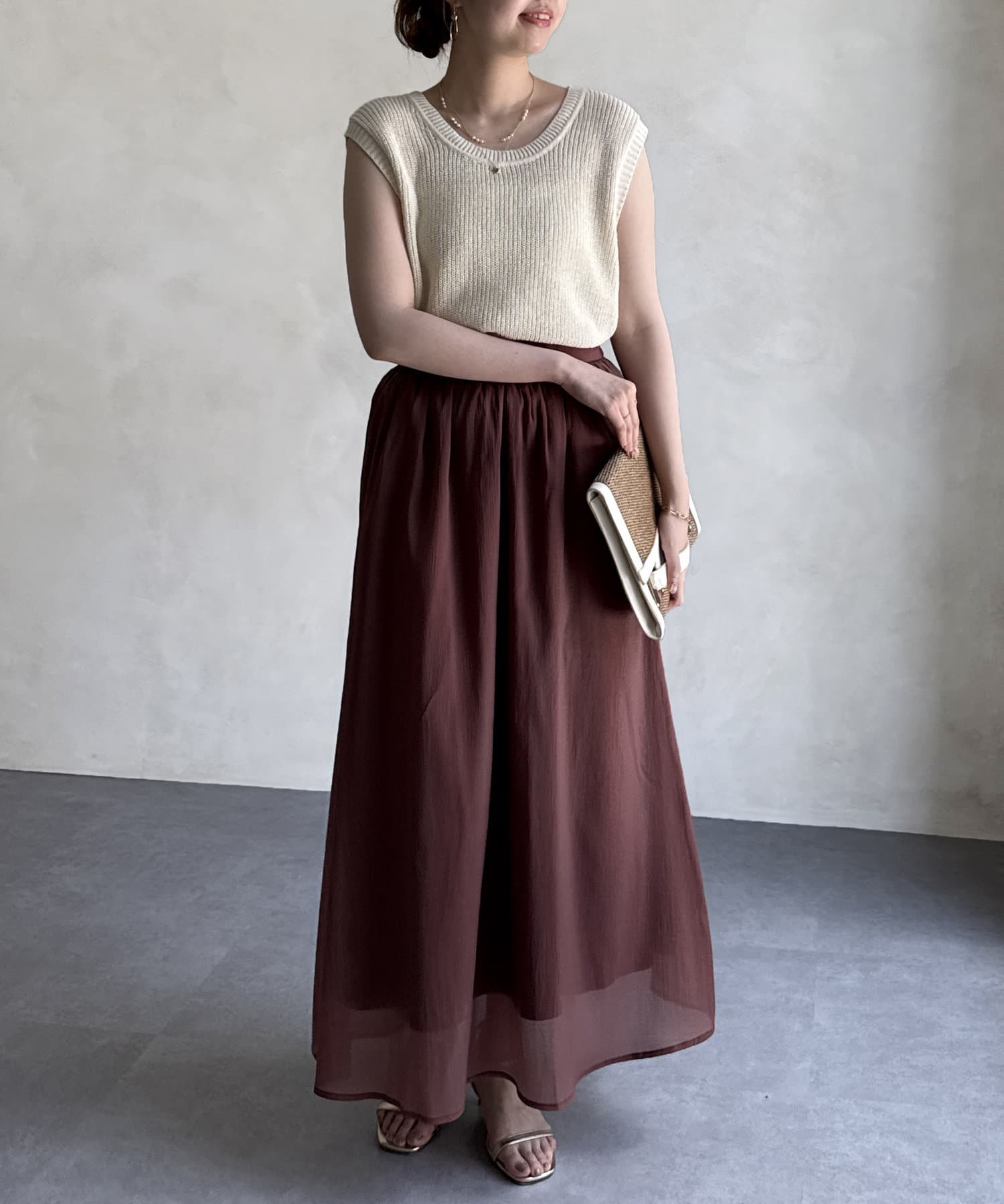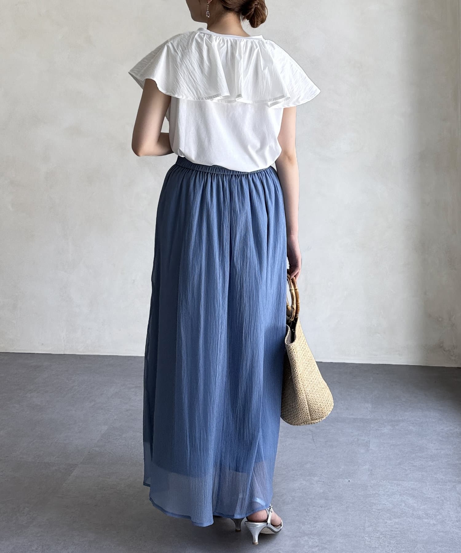 セミシアーの軽い生地を使用しふんわりとした涼しげな印象のスカート。