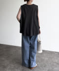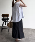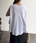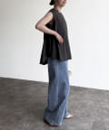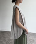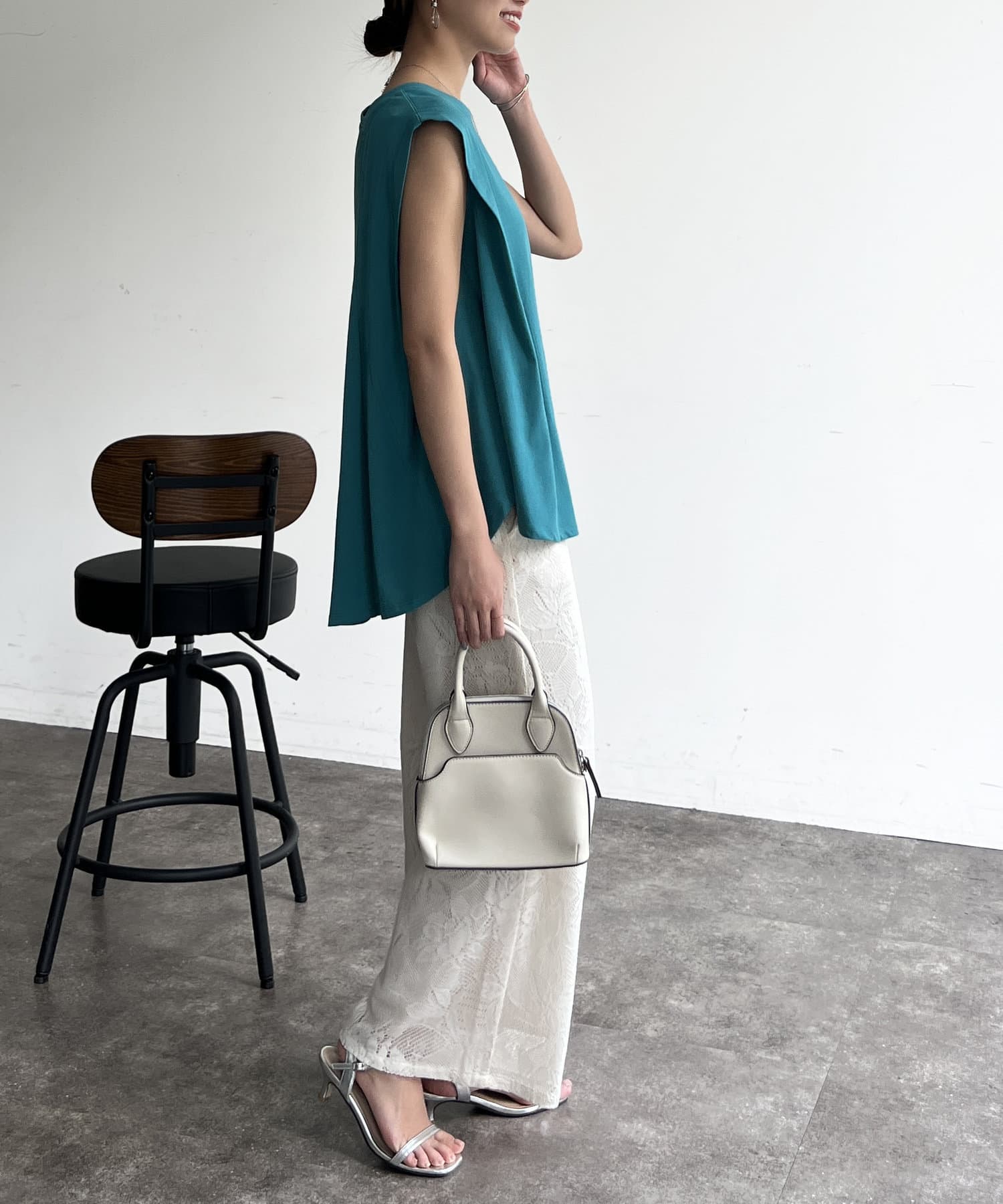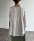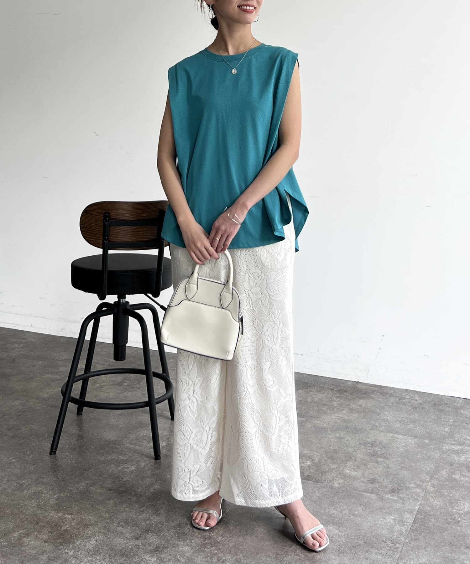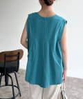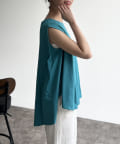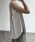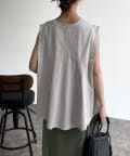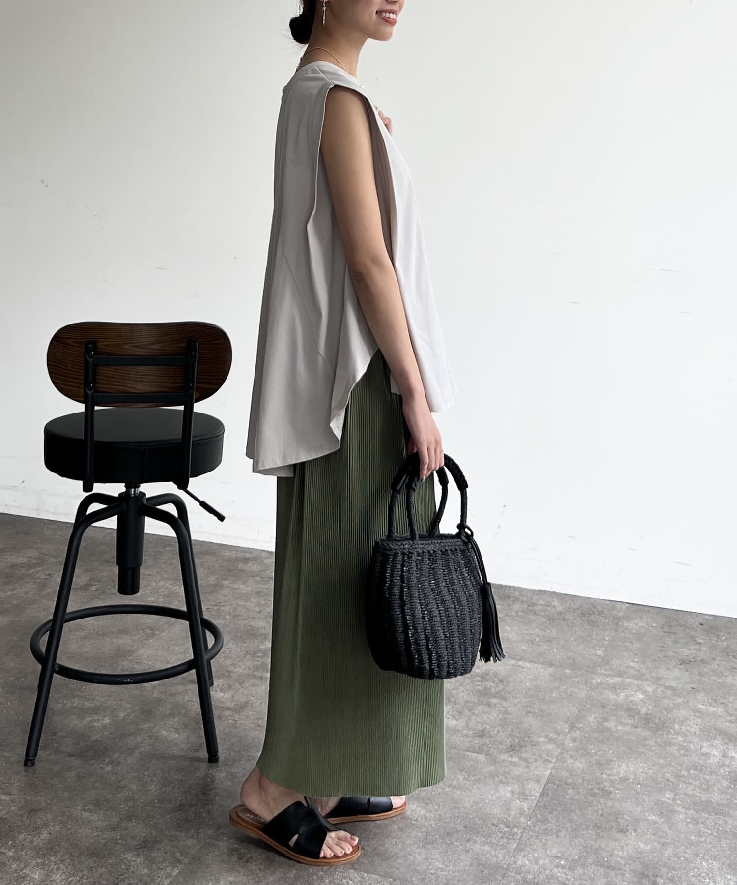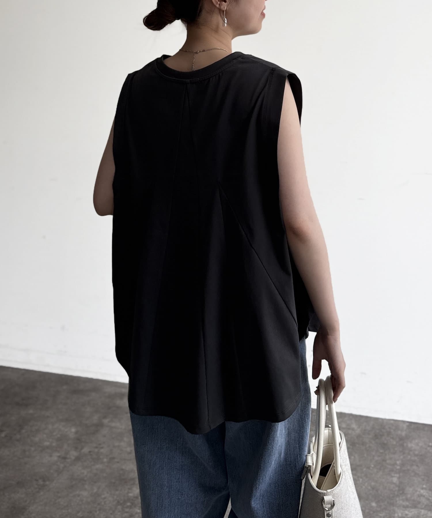 肩のまっすぐに切り落とされたラインが腕をすっきり見せてくれるノースリーブ。