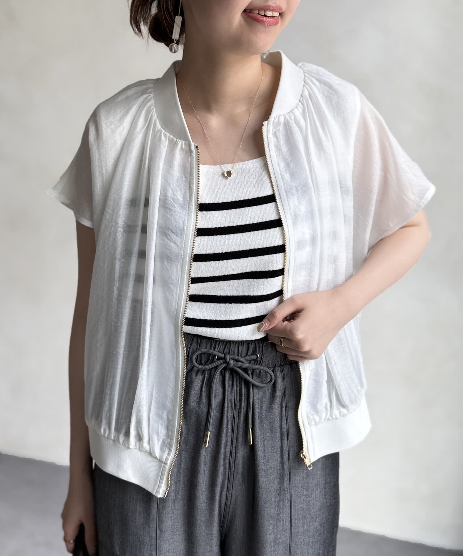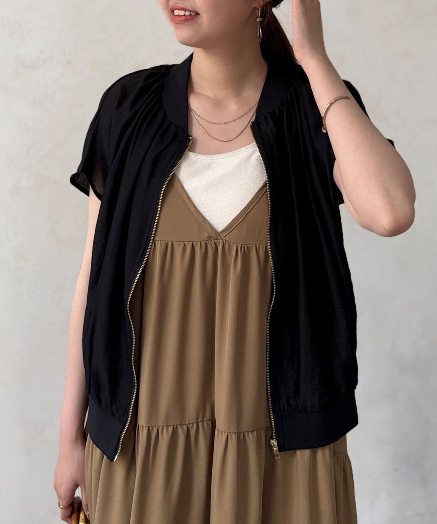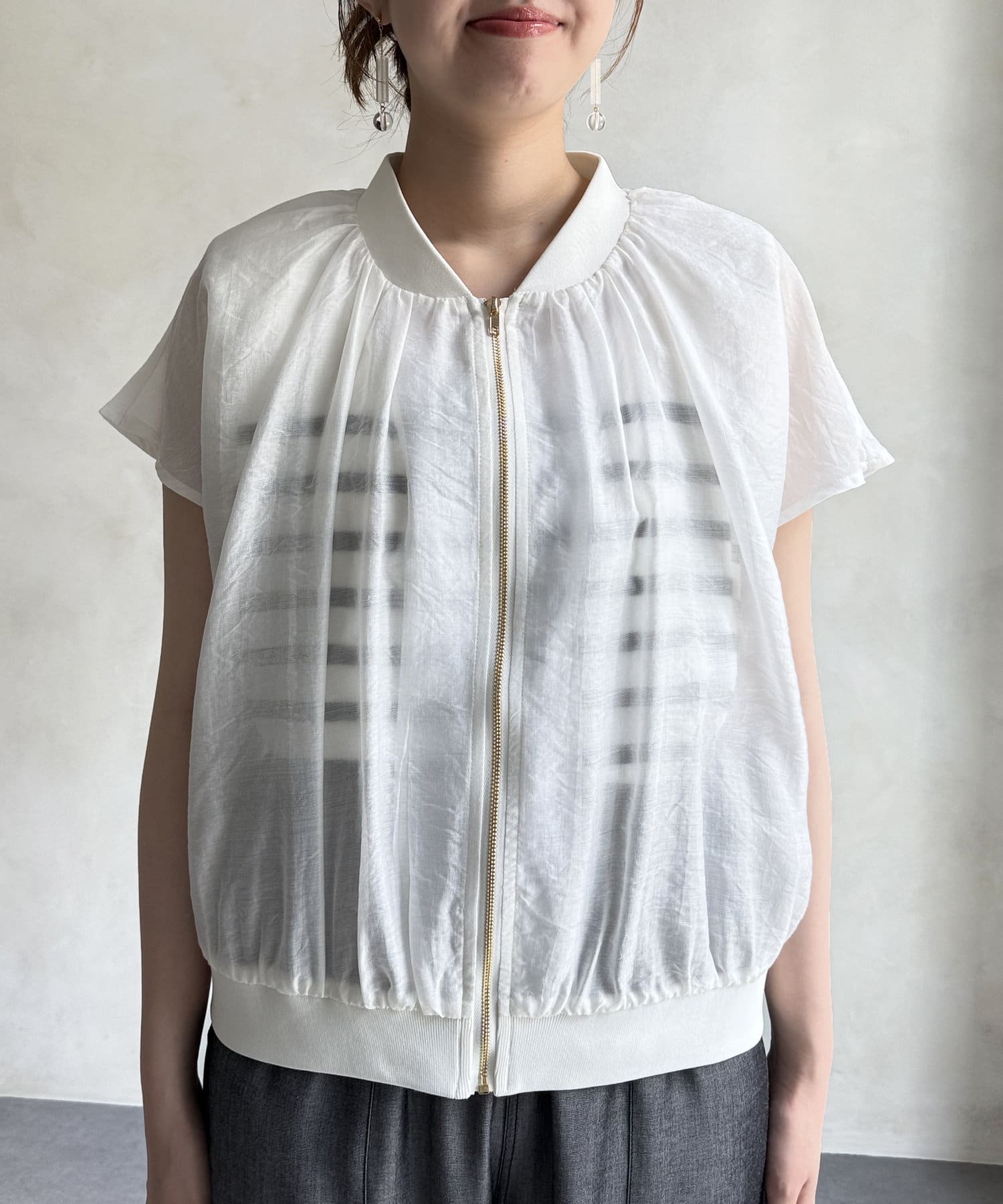 ナチュラルなシアー感が魅力的な半袖ブルゾン