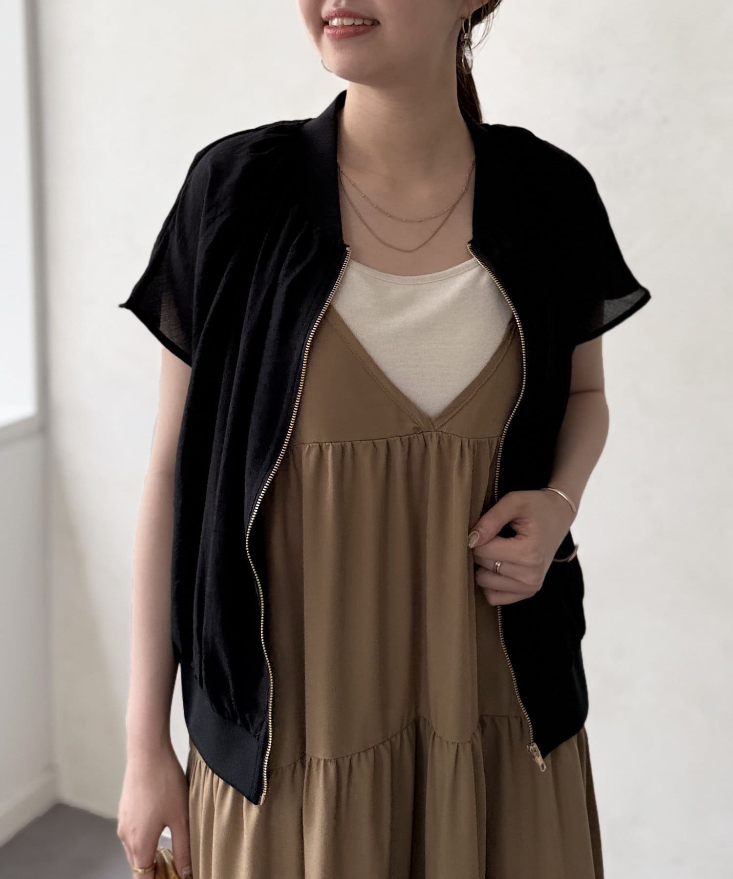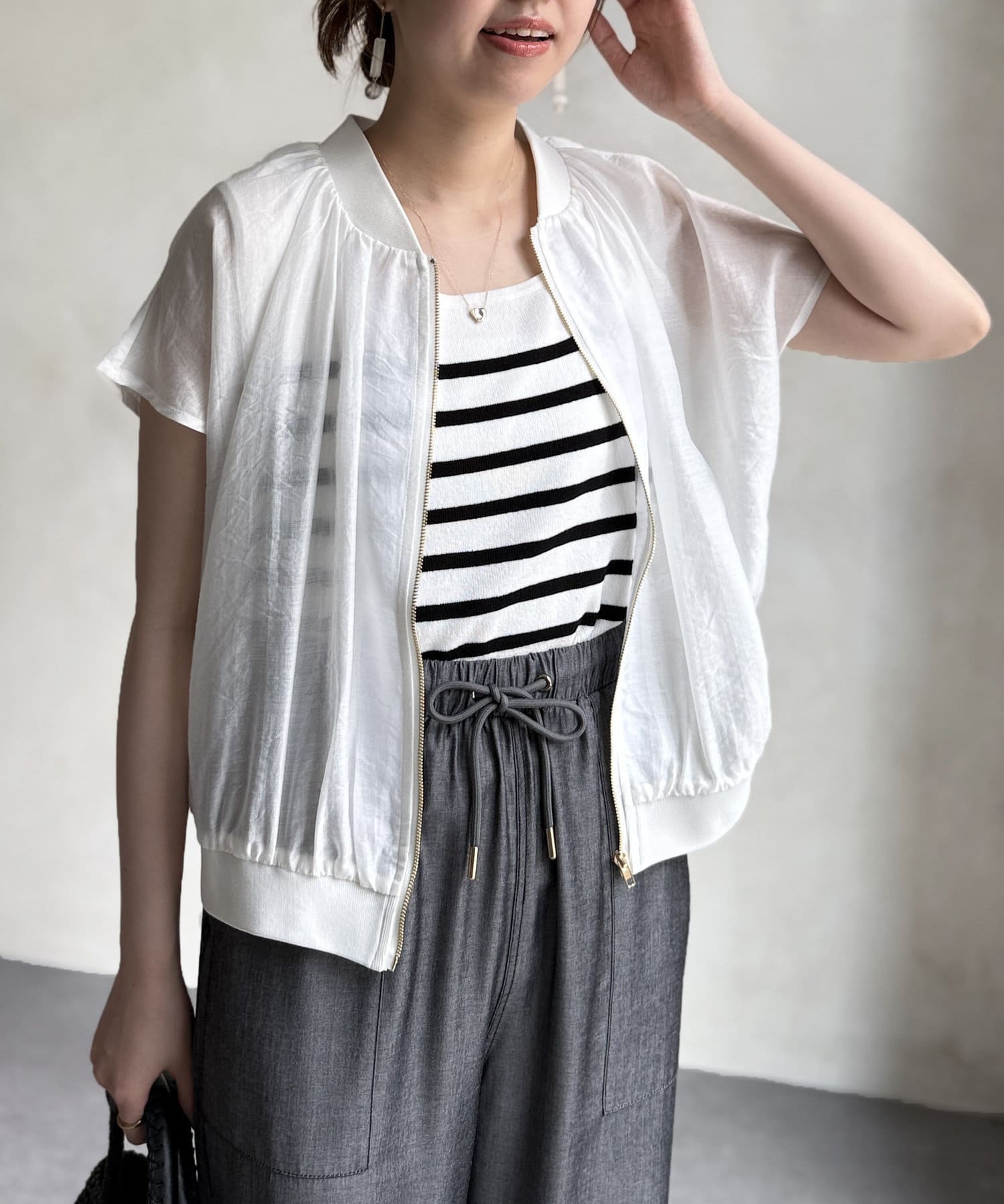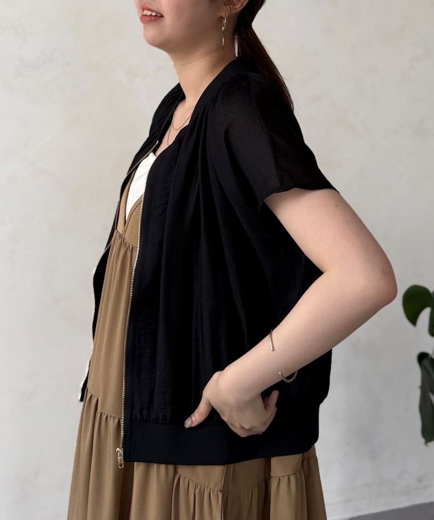 ナチュラルなシアー感が魅力的な半袖ブルゾン