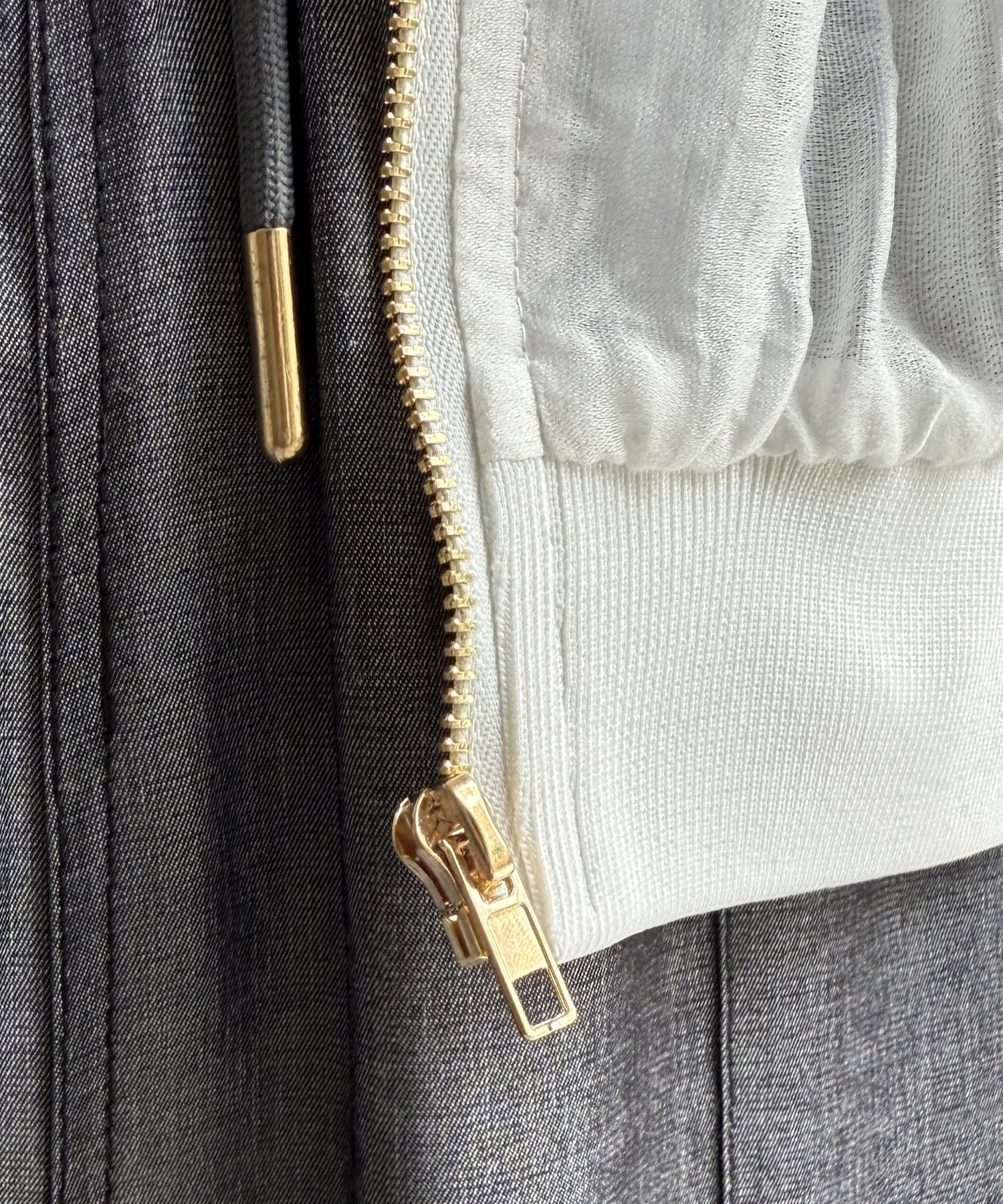 透け感を楽しむコーディネートにオススメなメッシュ素材を使用したブルゾン。