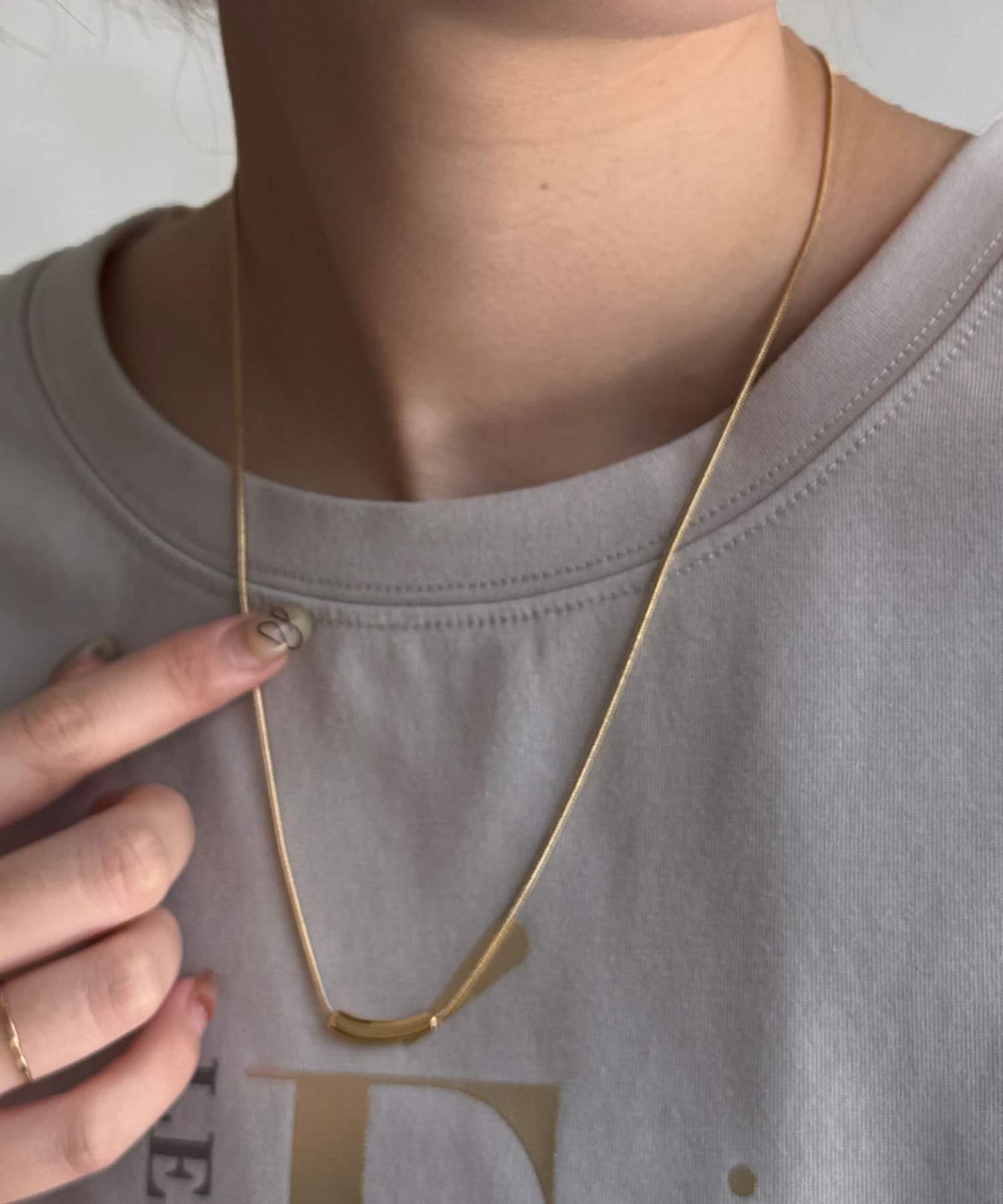 シンプルながらもさり気ないモチーフがポイントになるネックレス。