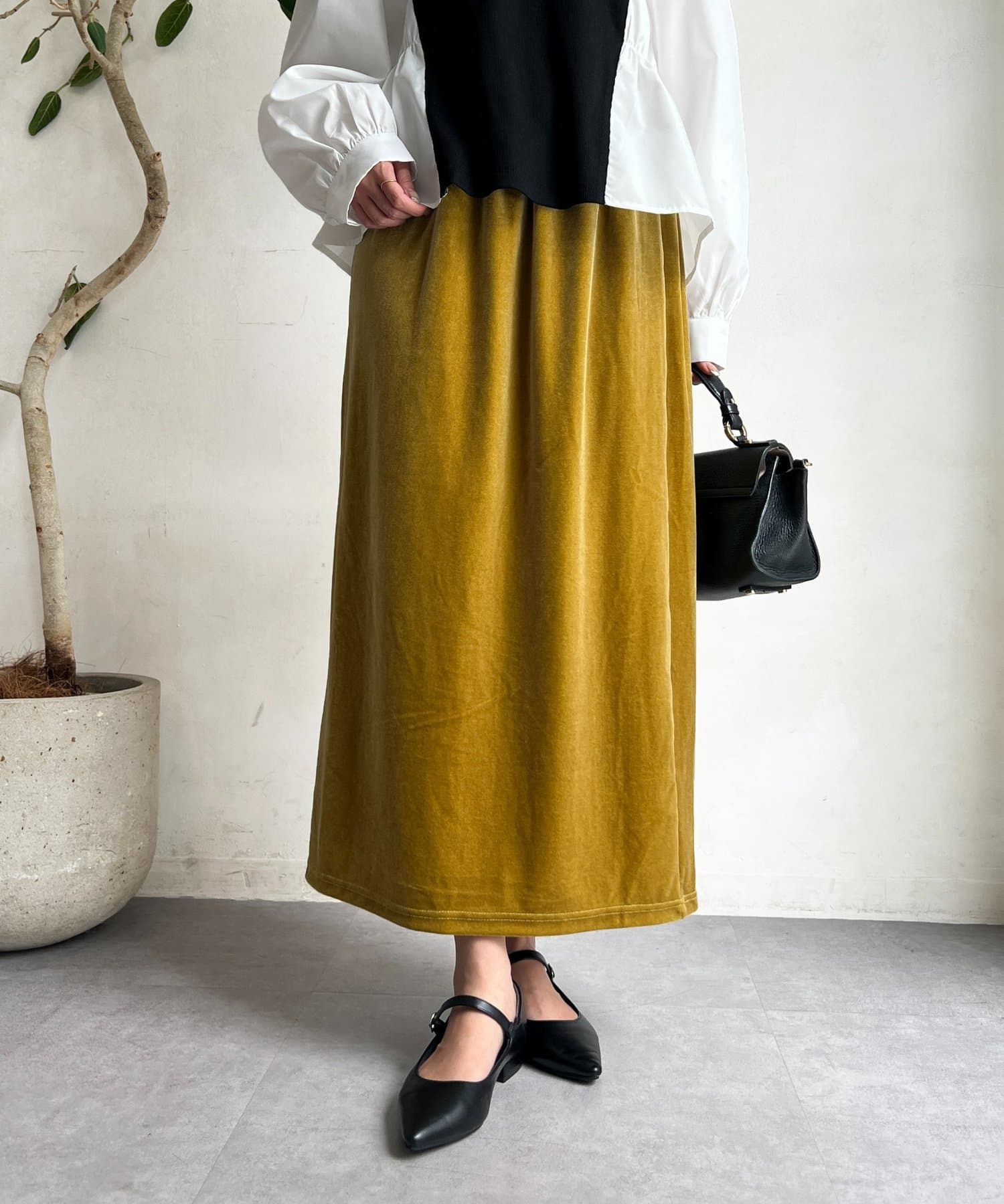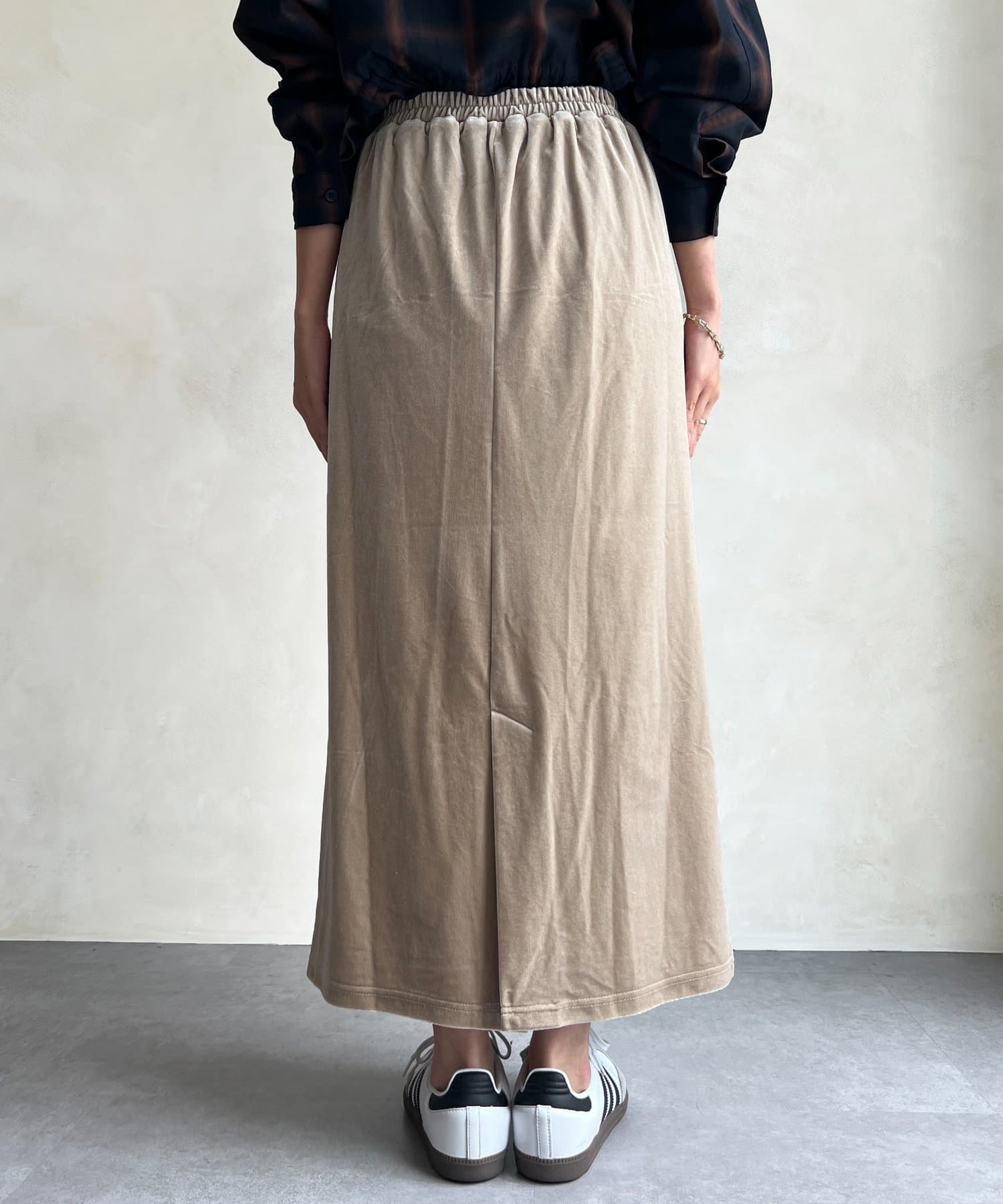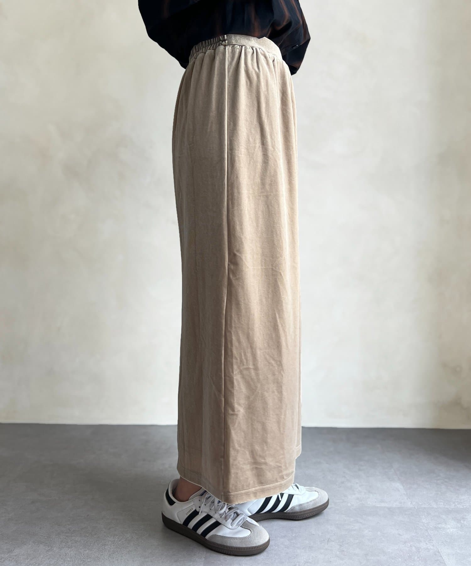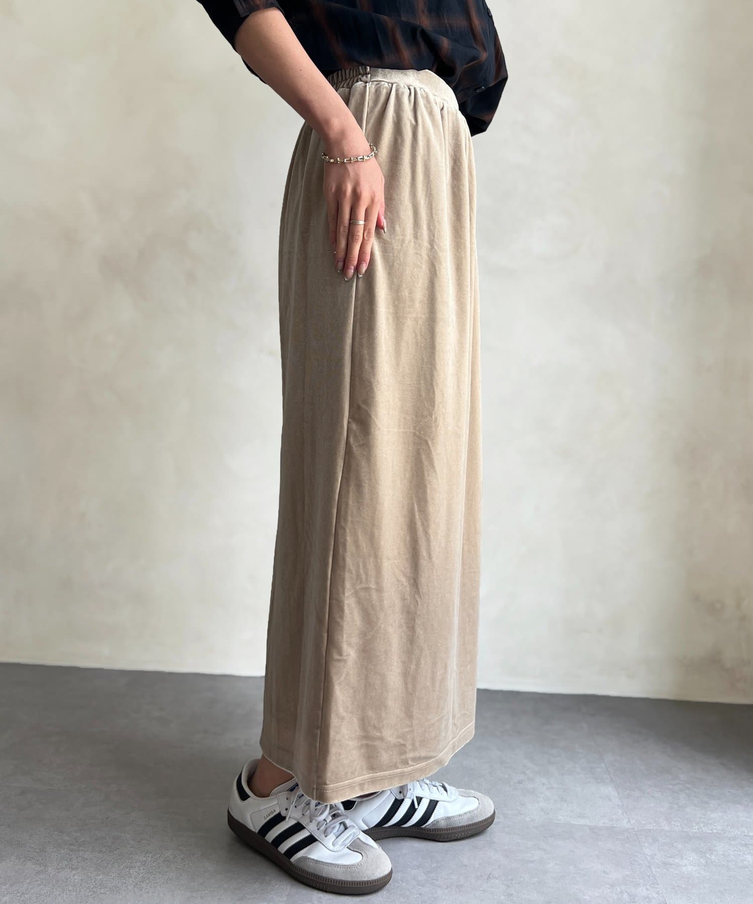 光沢感のあるベロア素材はコーディネートに華やかな印象に♪