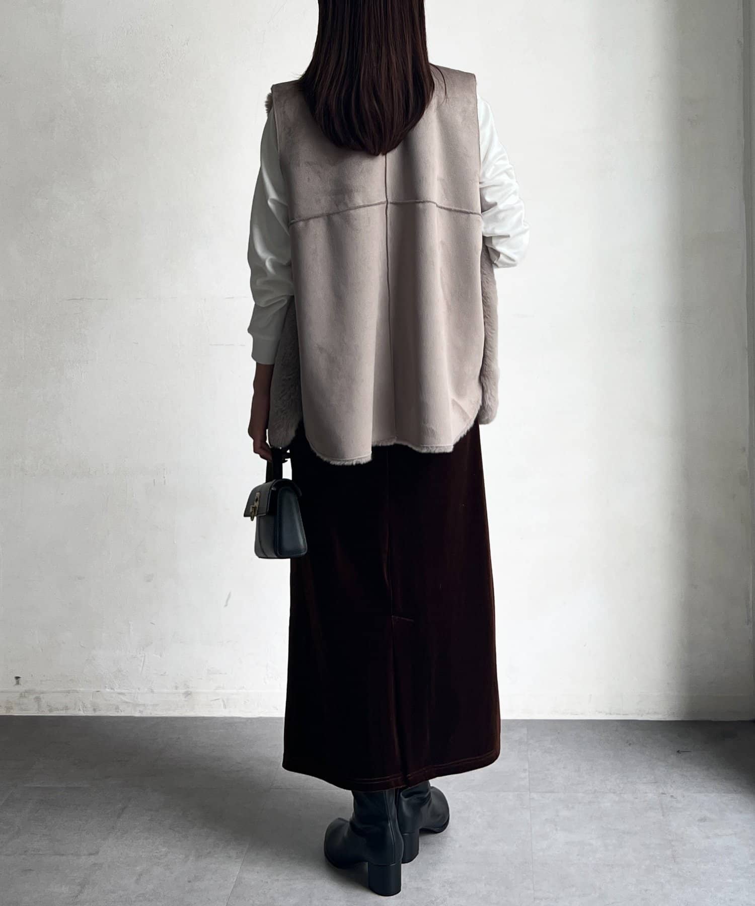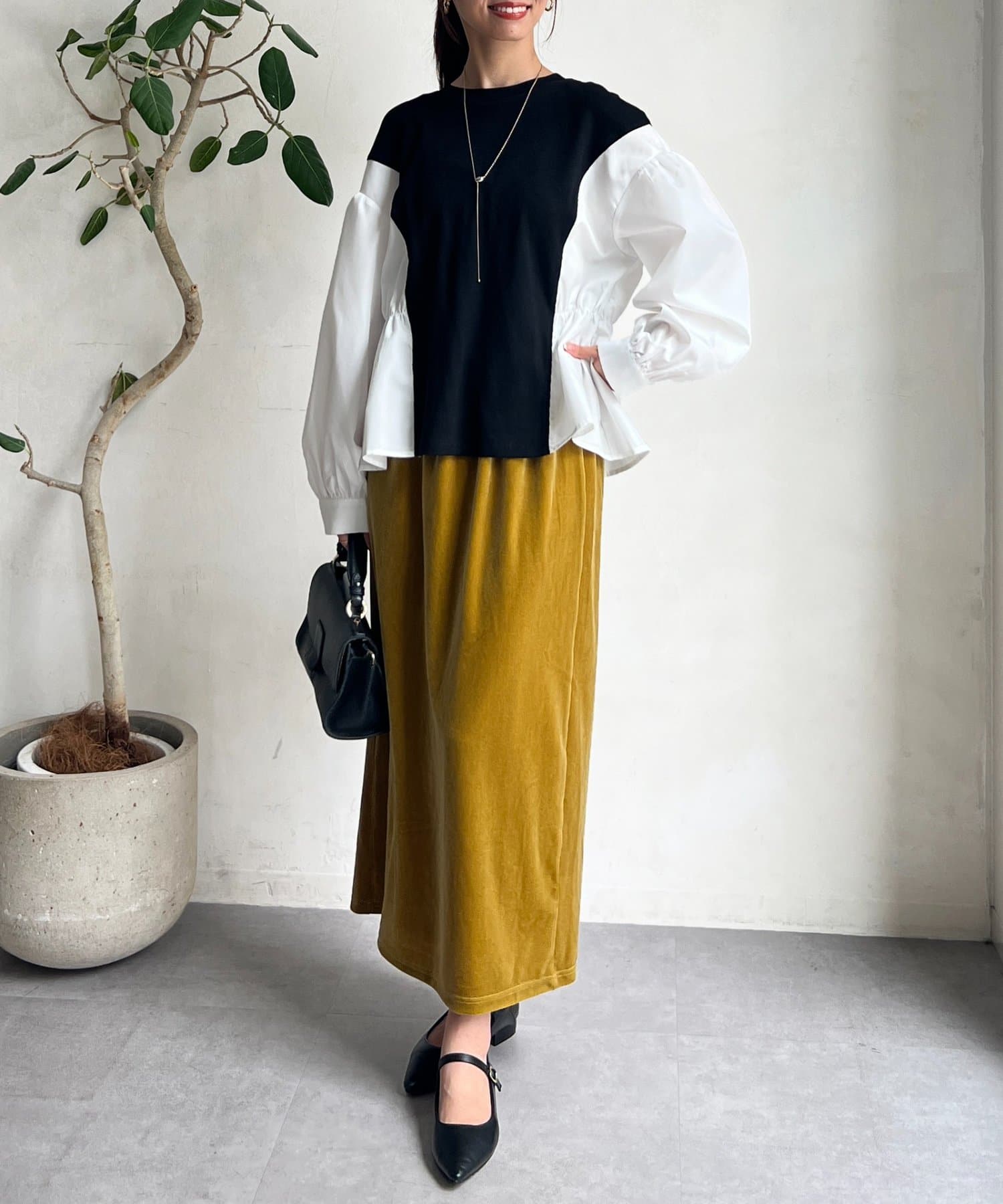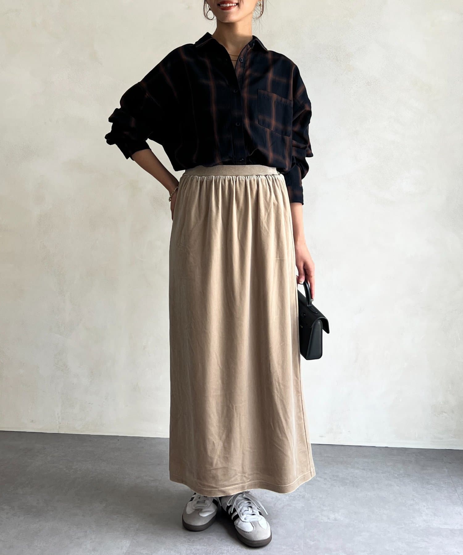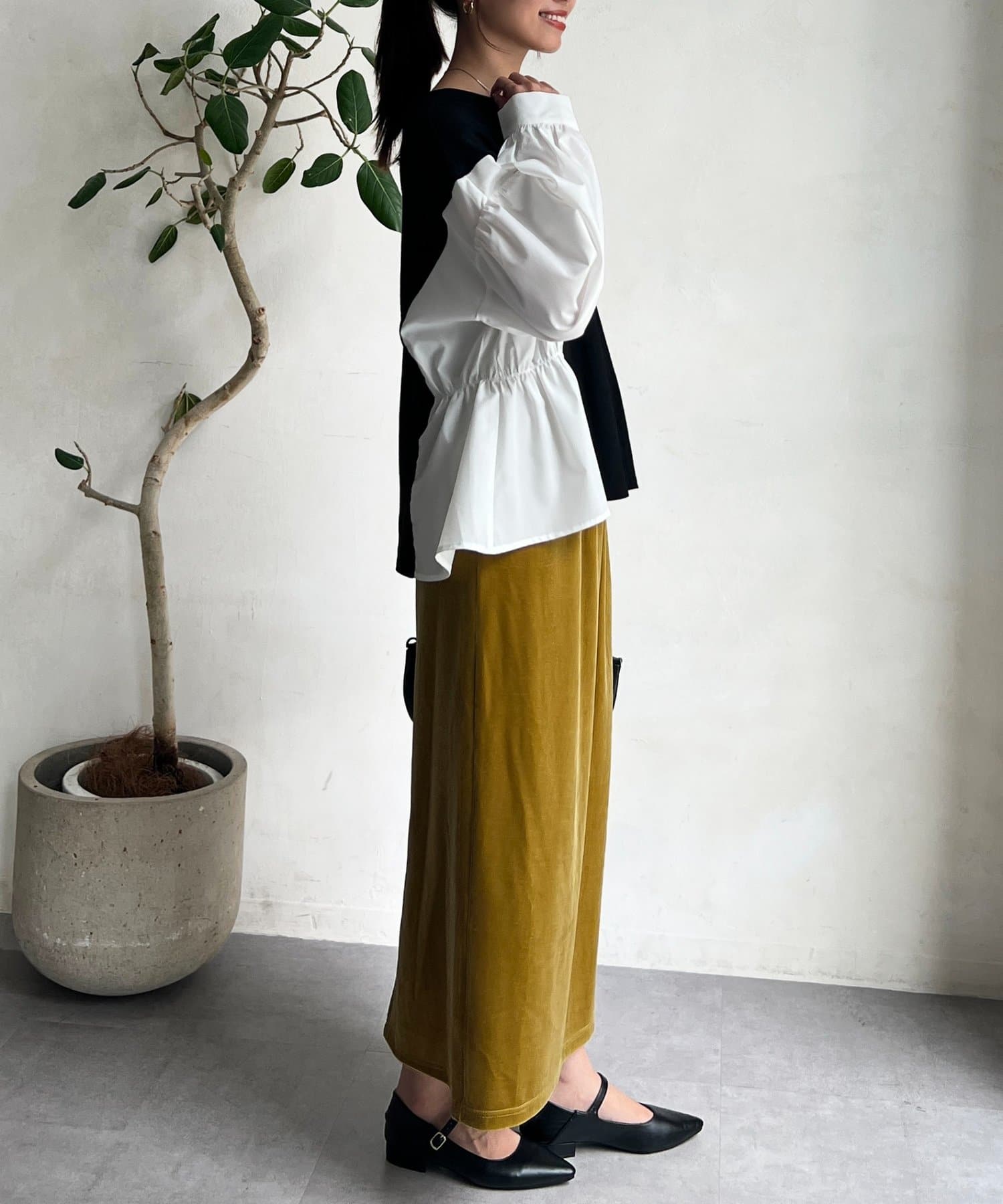 光沢感のあるベロア素材はコーディネートに華やかな印象に♪