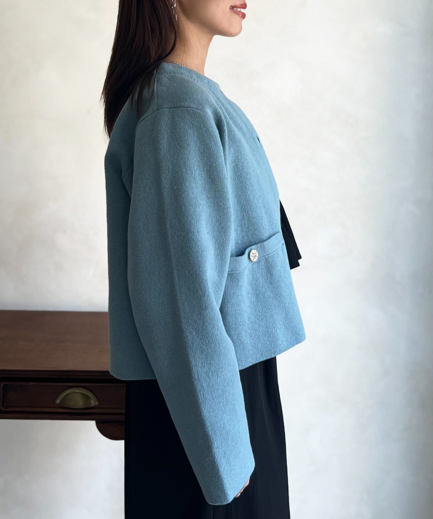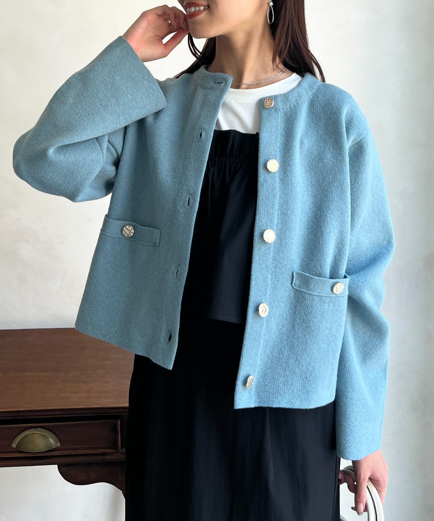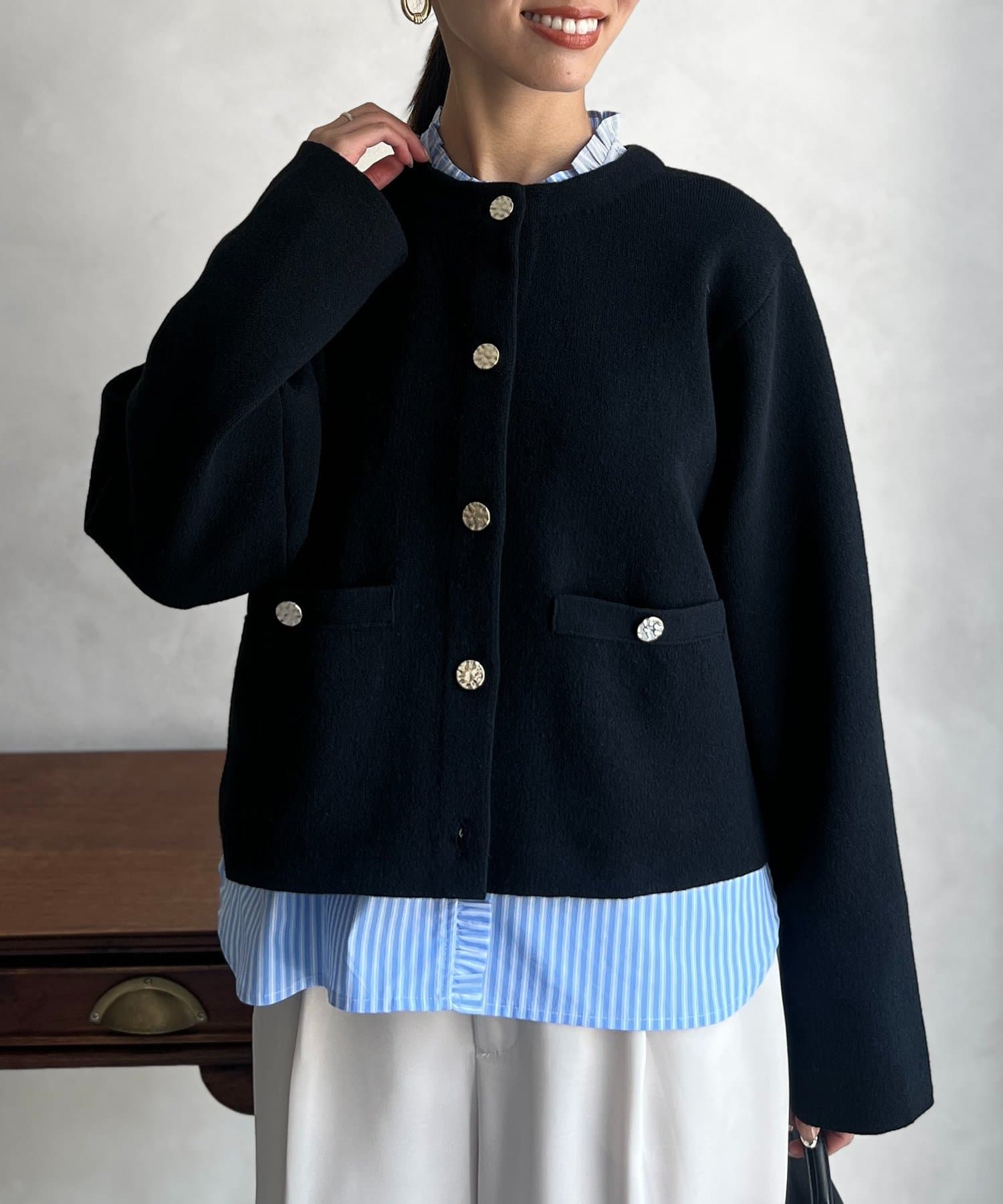 ゴールド釦がアクセントになったニットカーディガン
