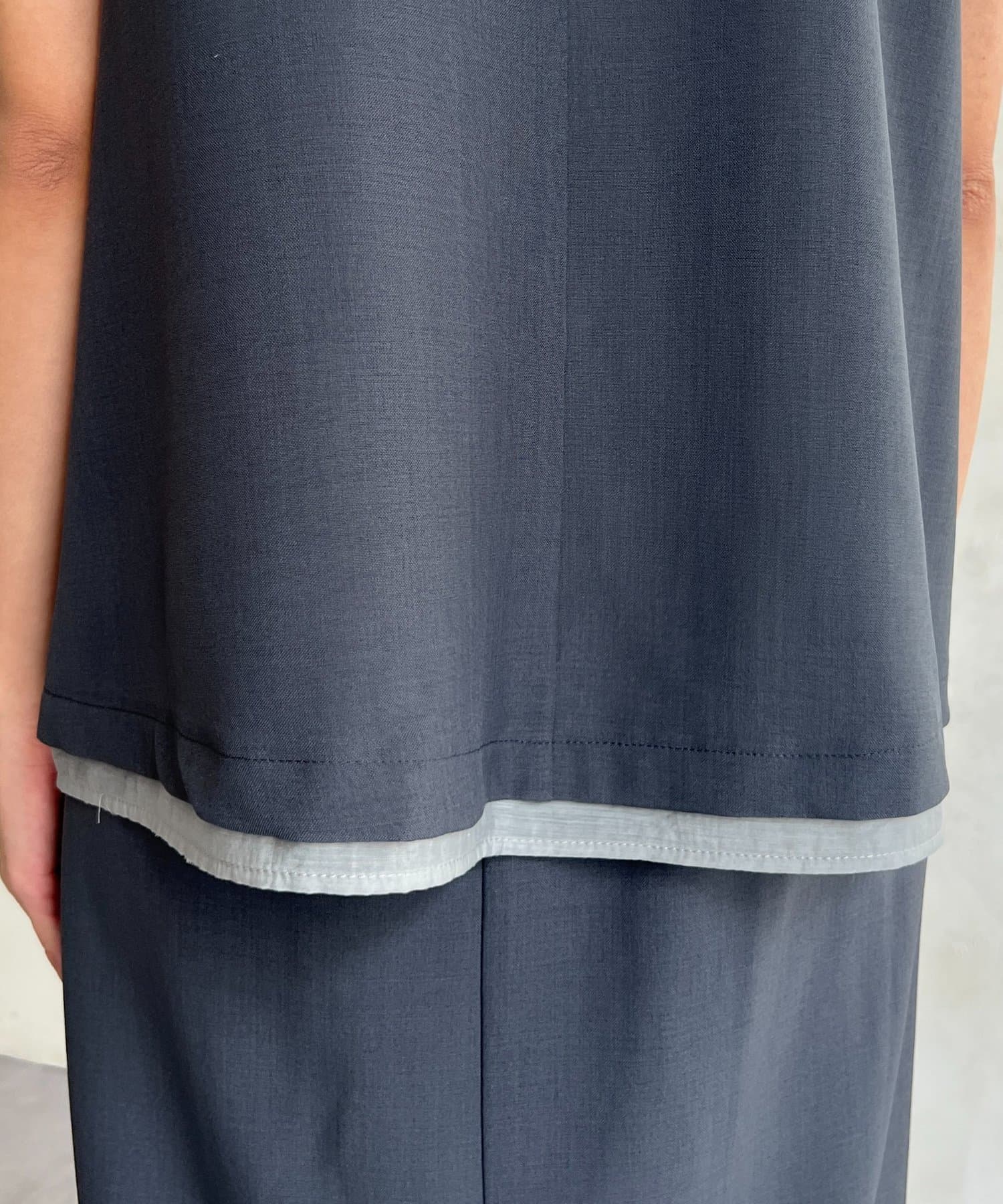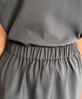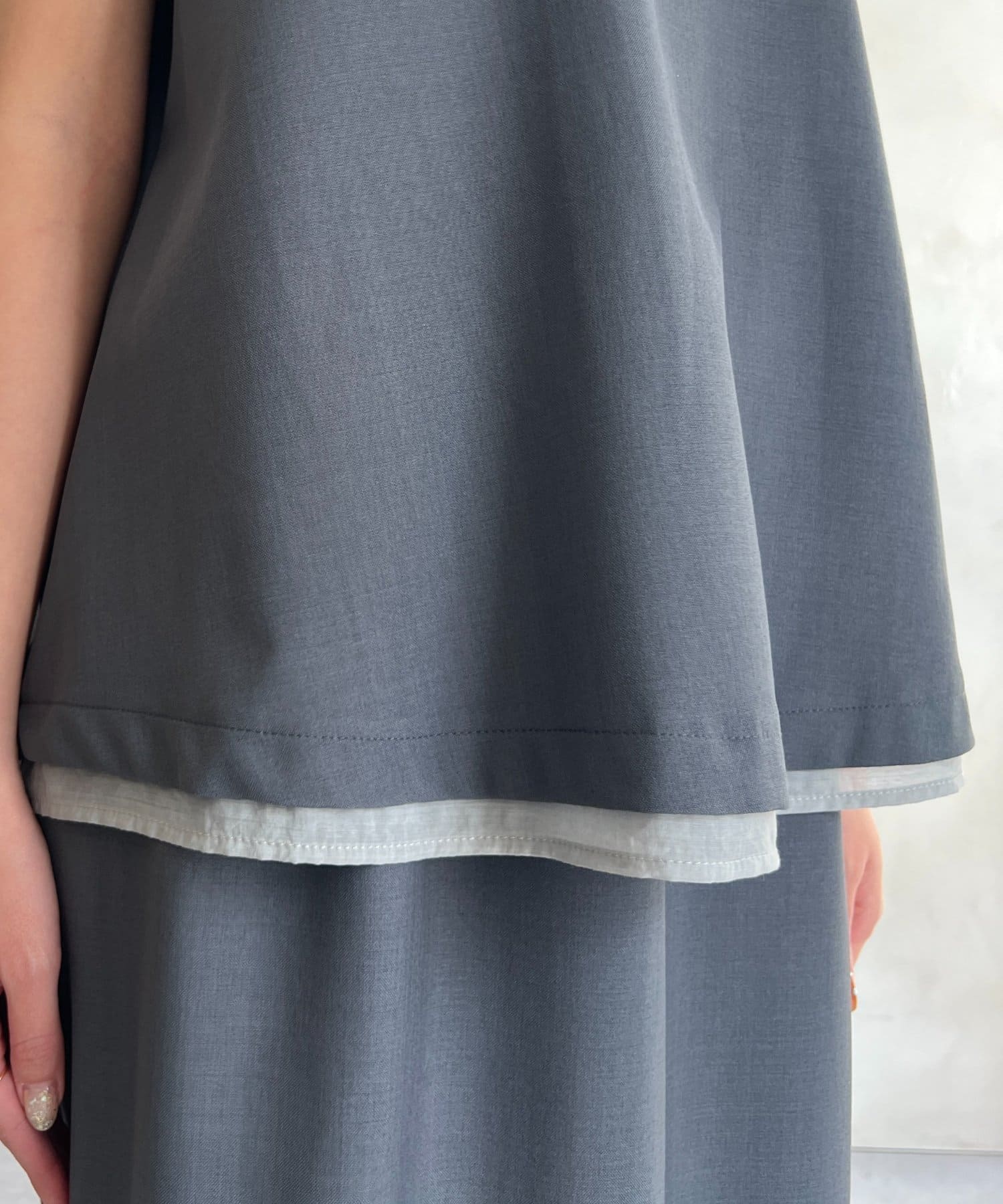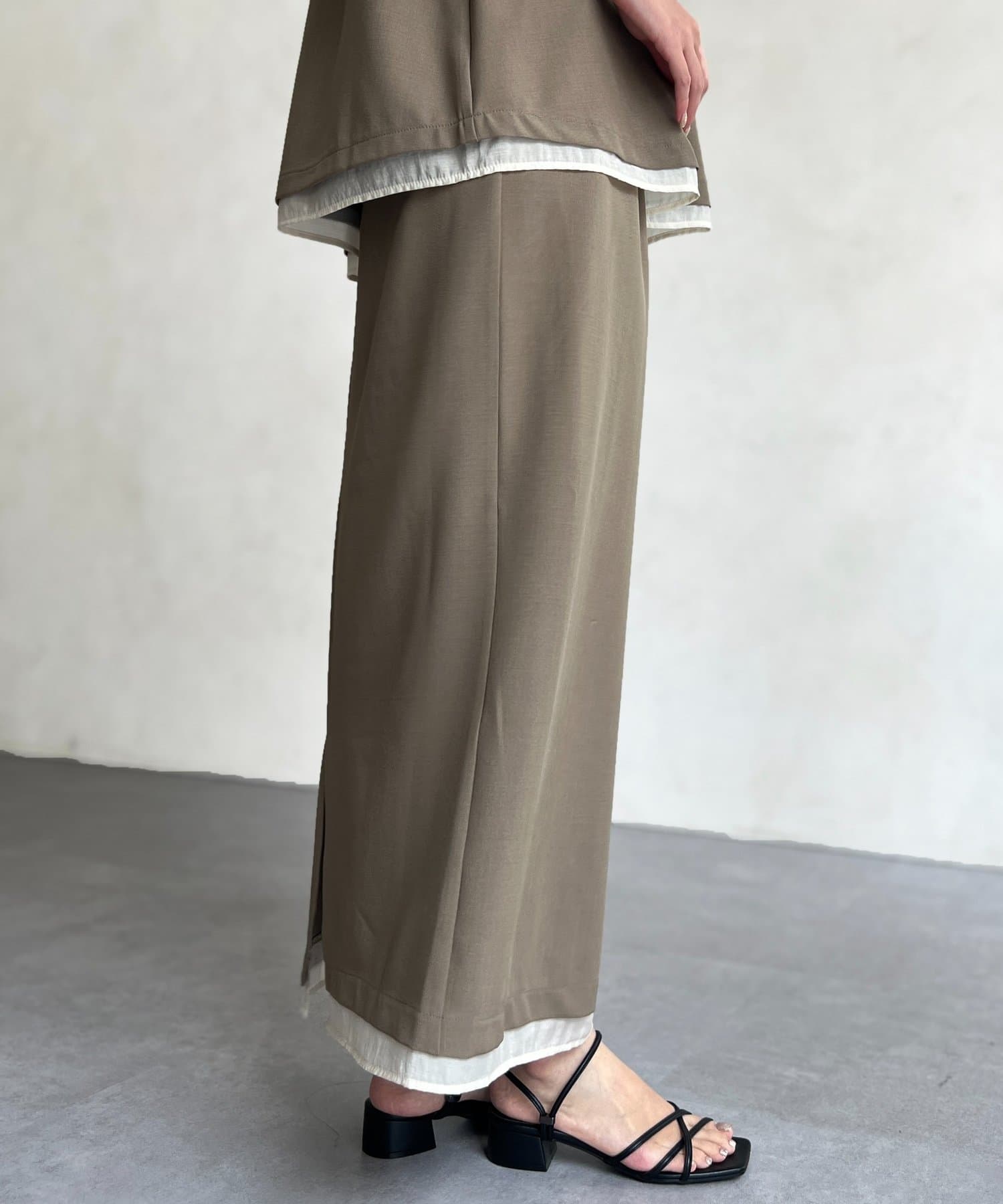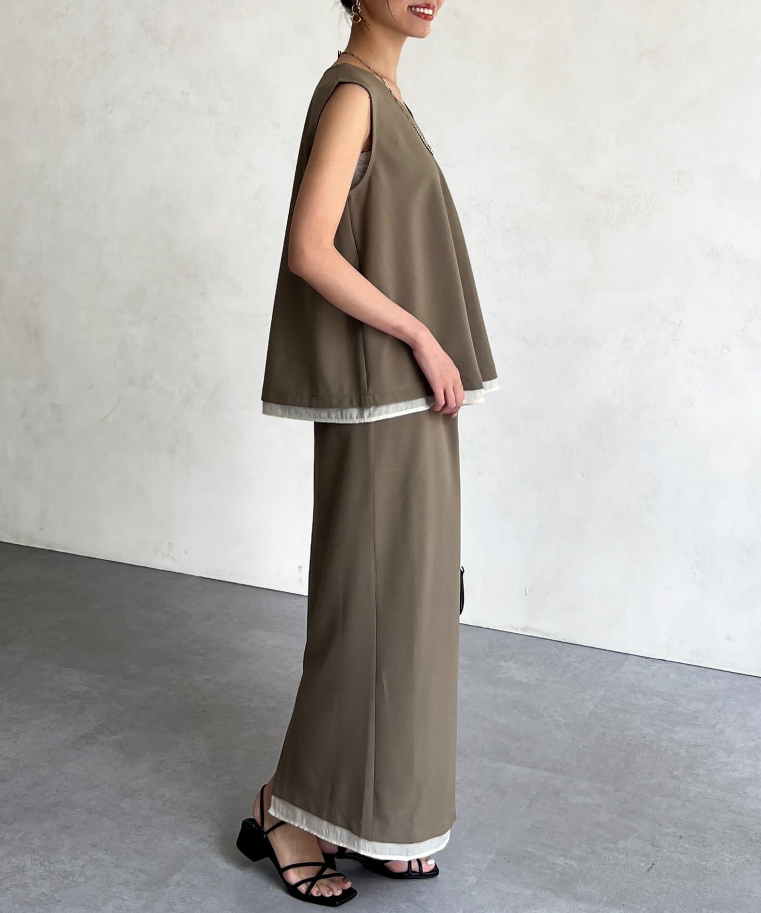 裾口の切り替えがアクセントになり、シンプルなコーディネートに抜け感を演出します。