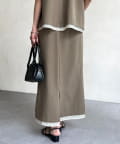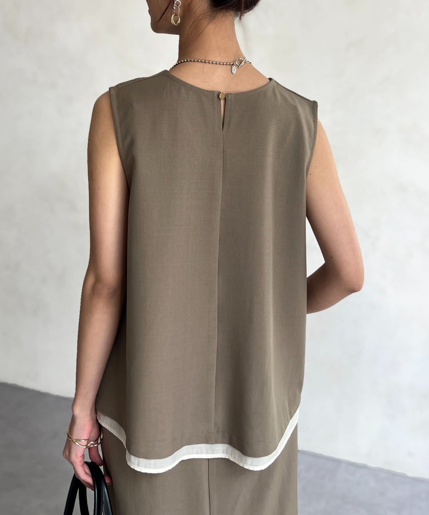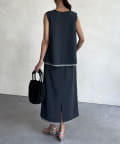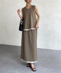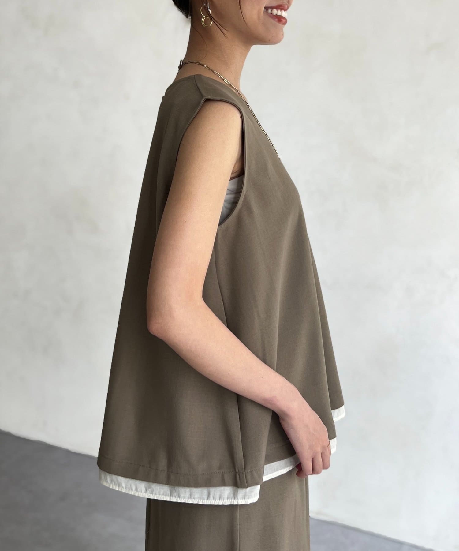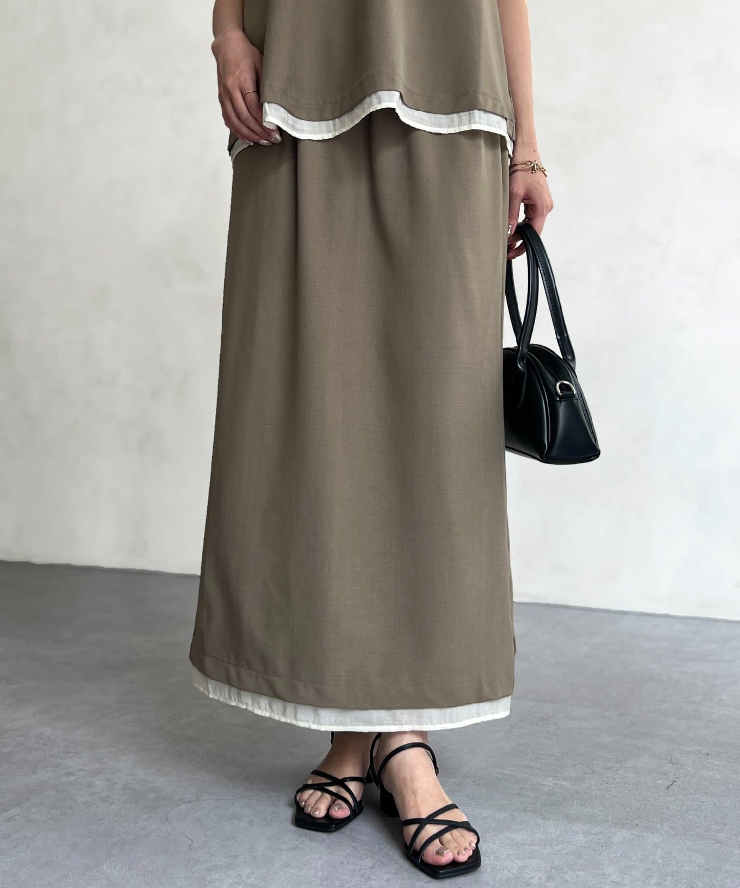 裾口の切り替えがアクセントになり、シンプルなコーディネートに抜け感を演出します。