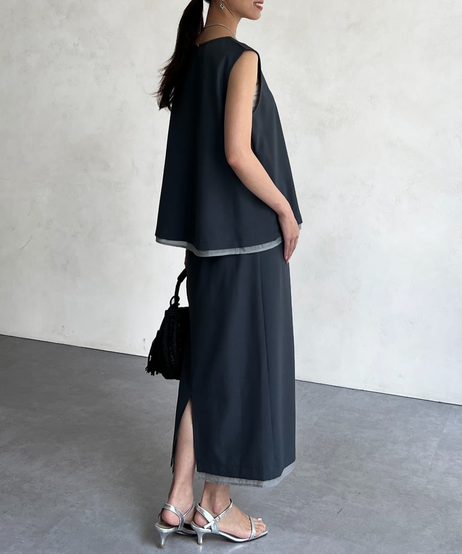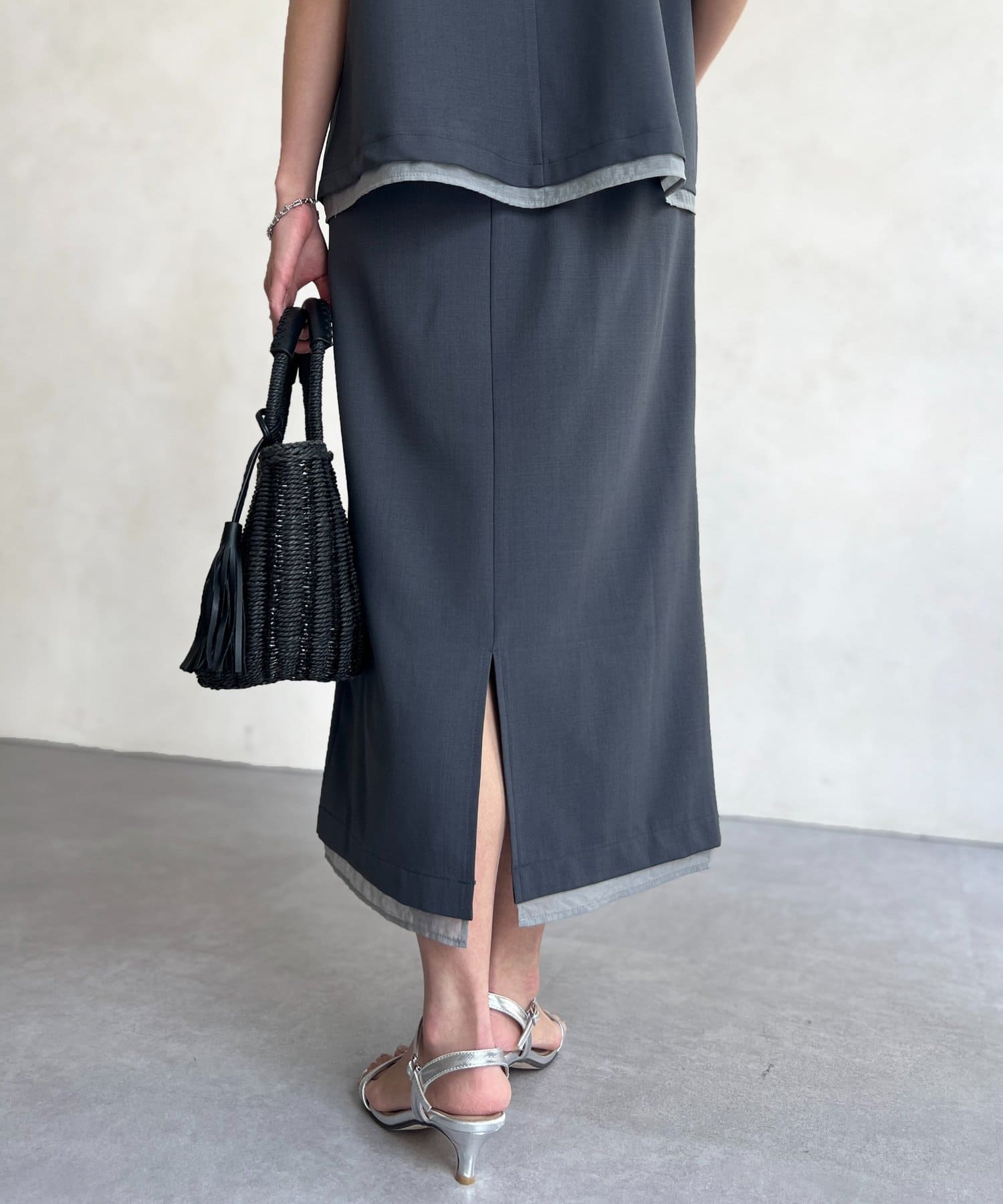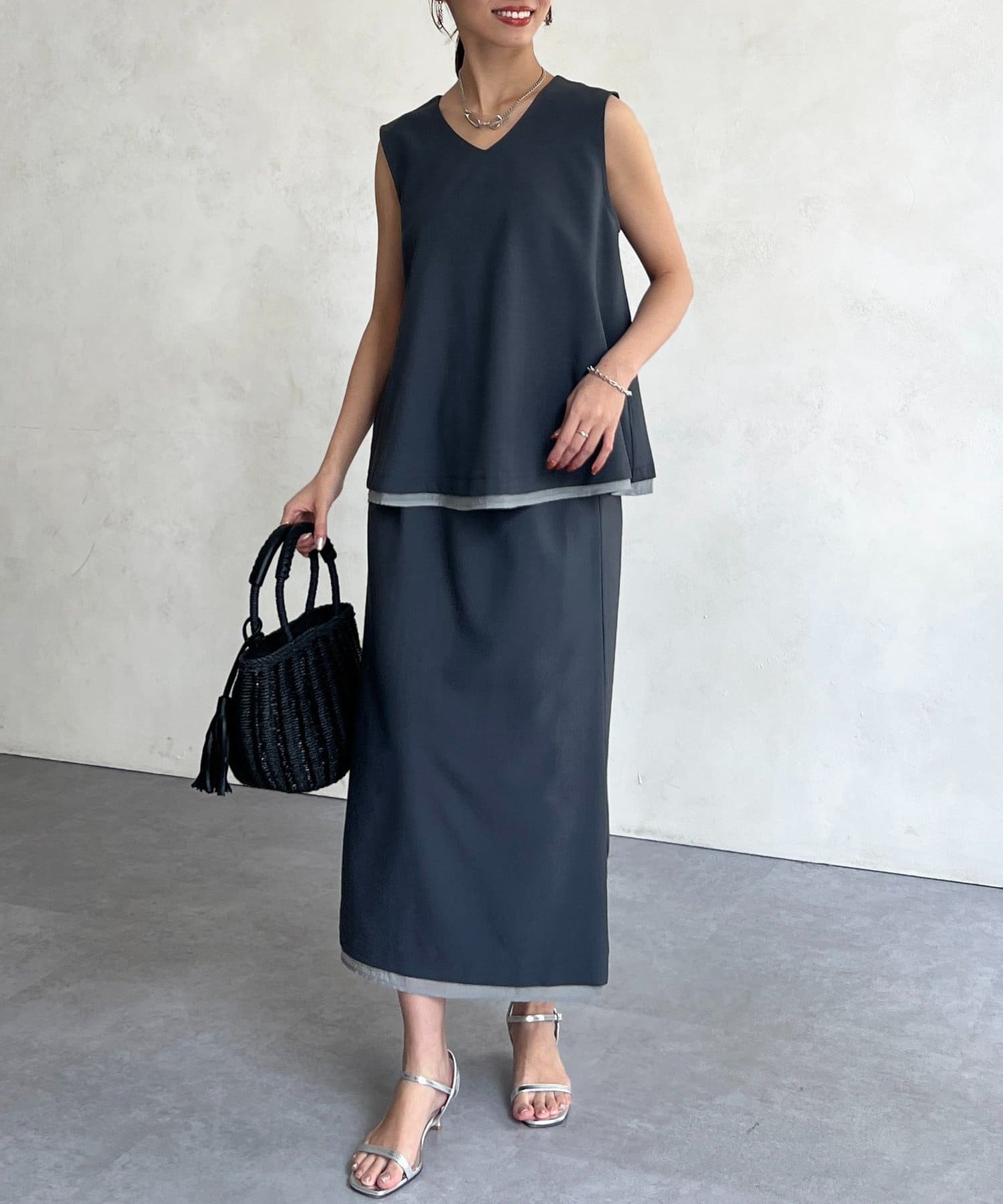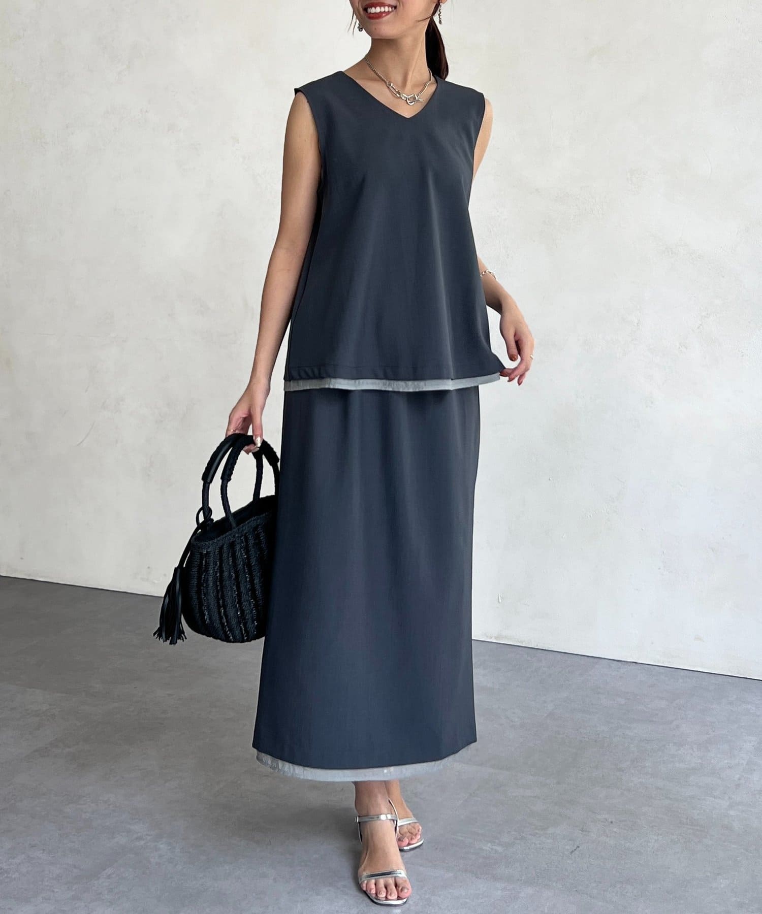 透け感が涼やかな印象を与え、シーズンスタイルにぴったりなセットアイテム。