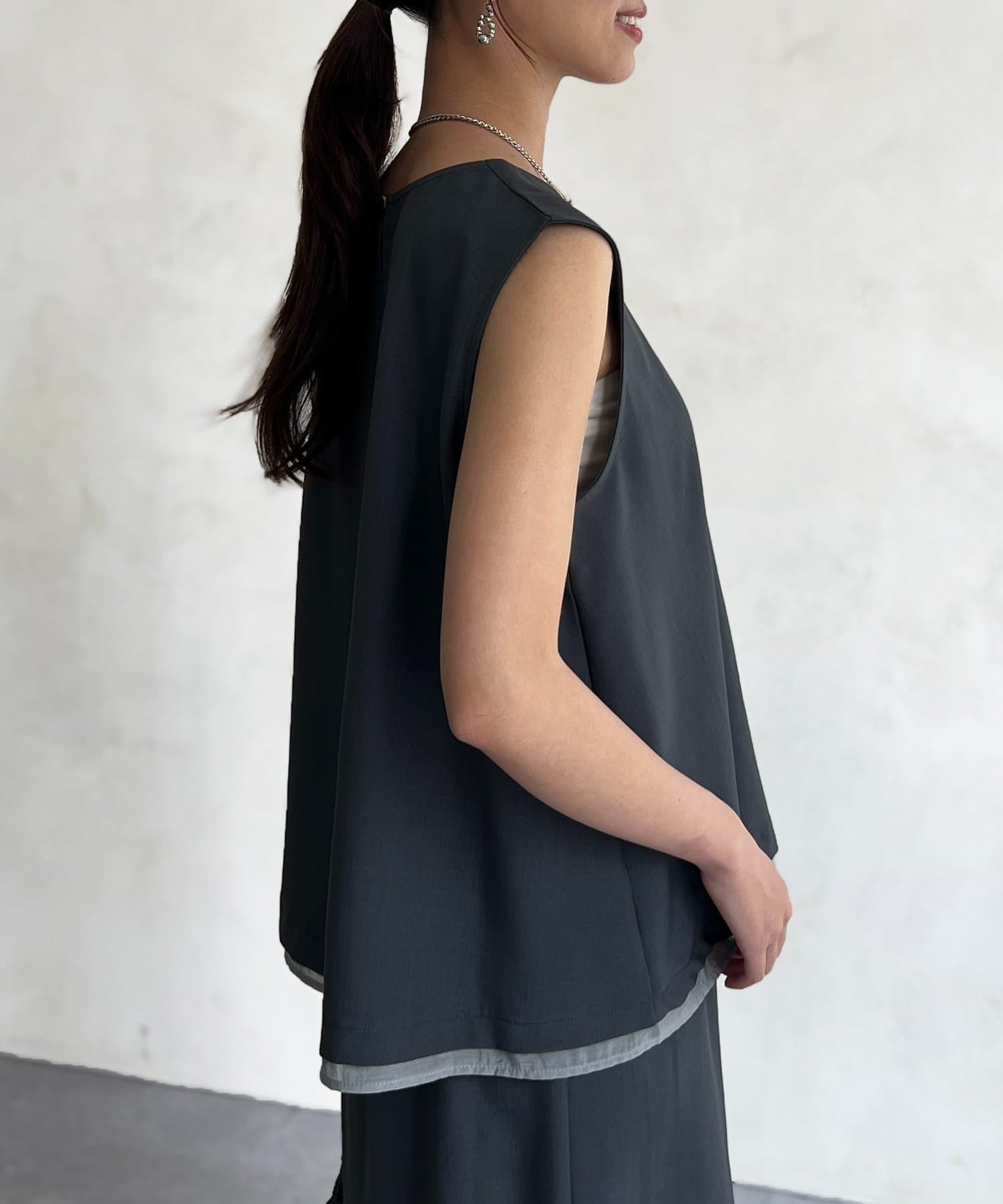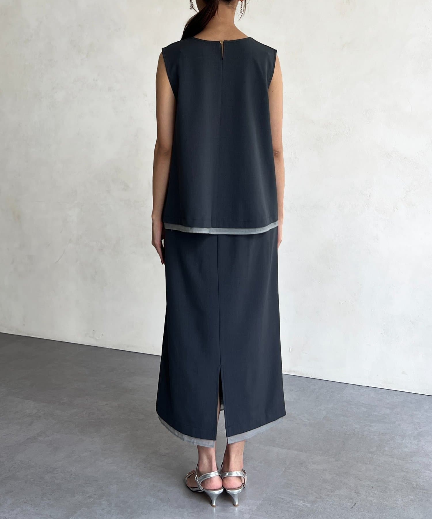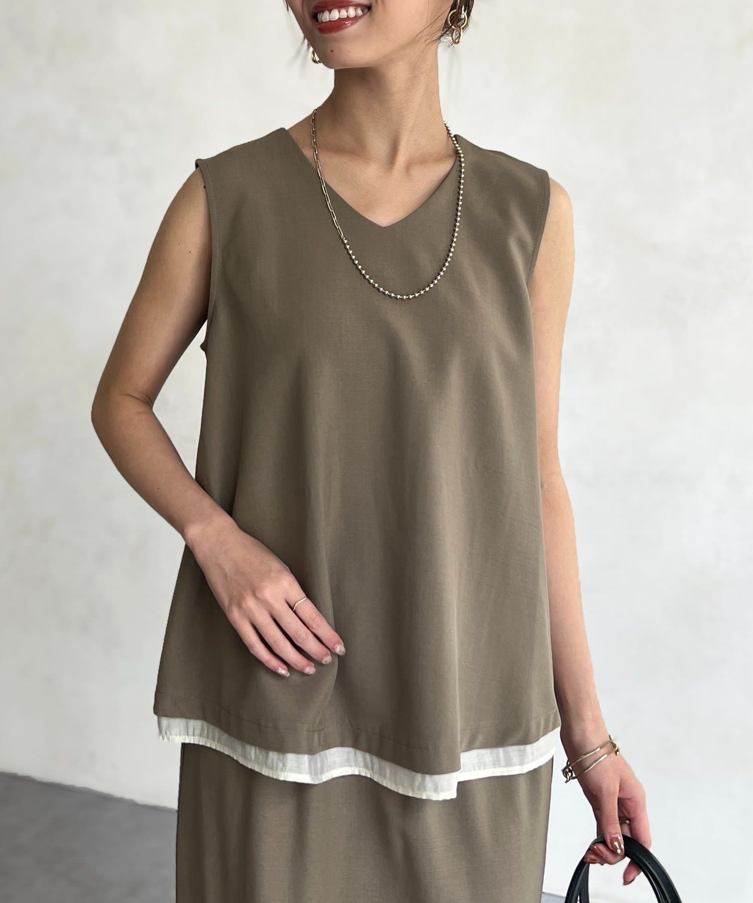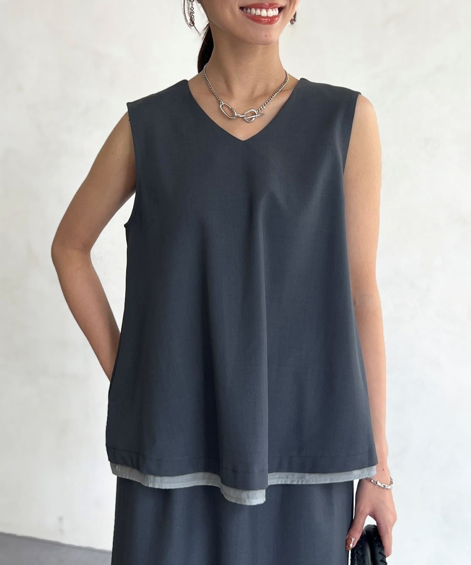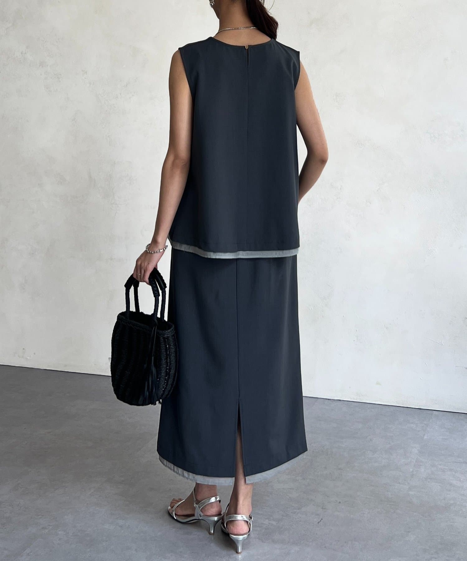 透け感が涼やかな印象を与え、シーズンスタイルにぴったりなセットアイテム。