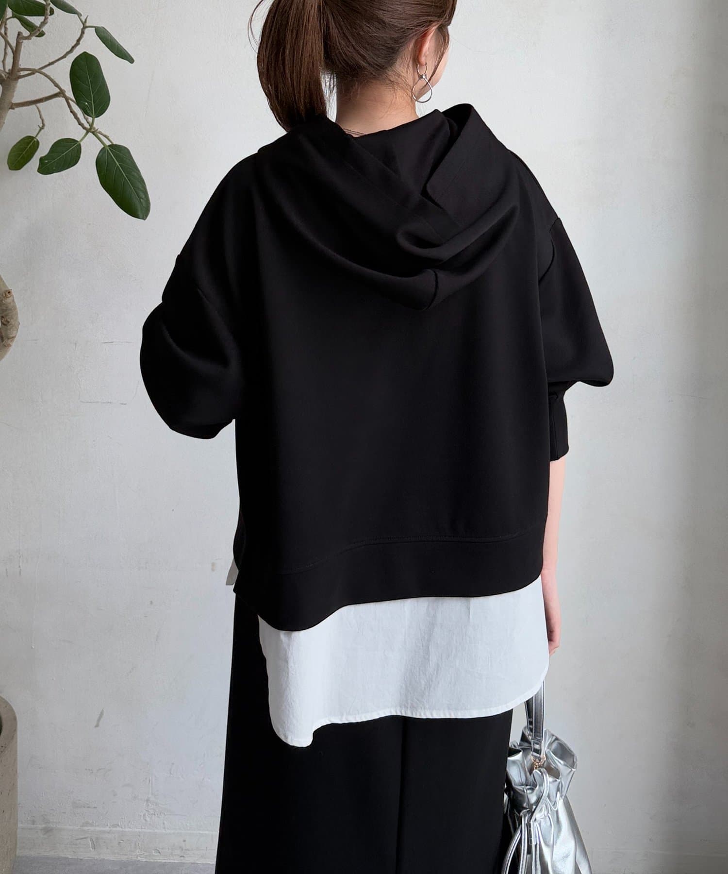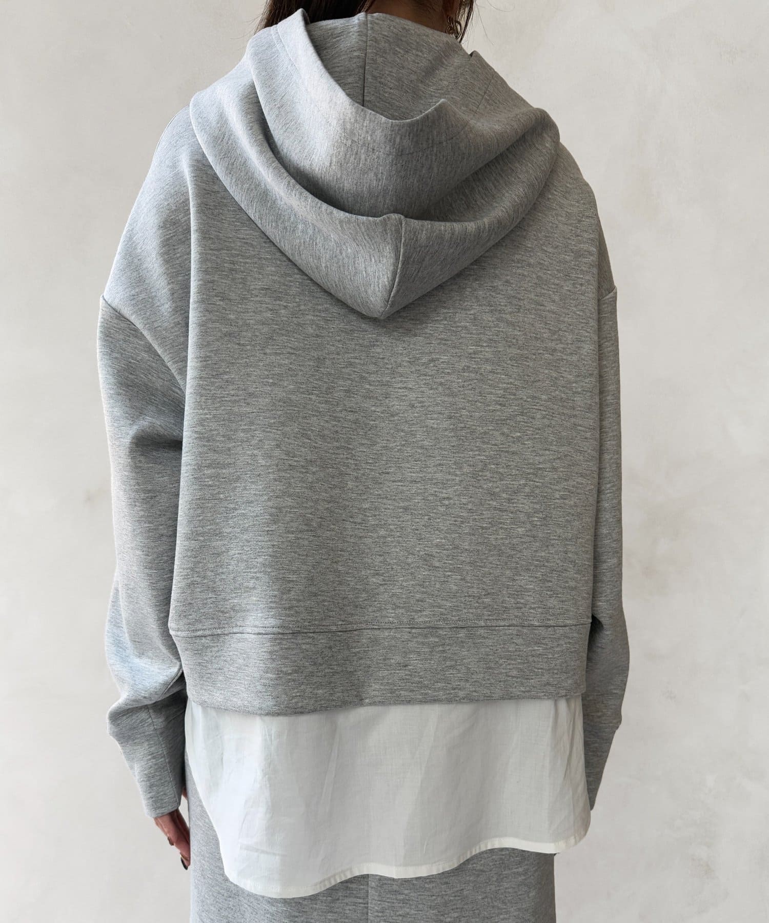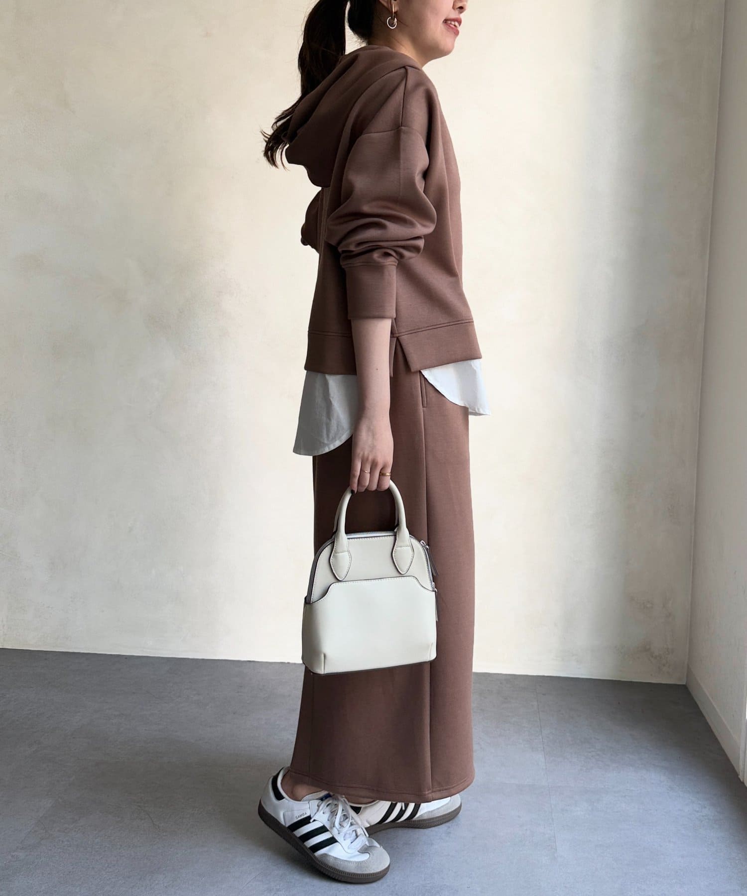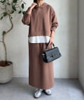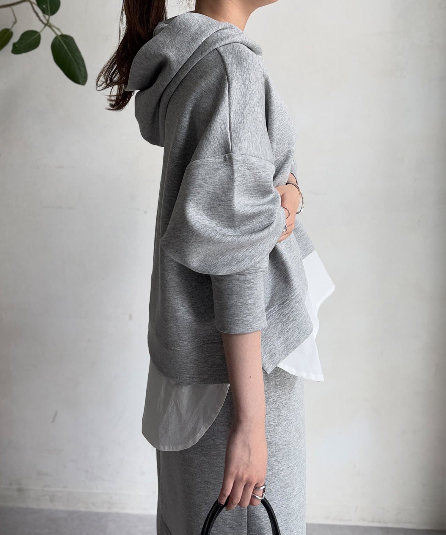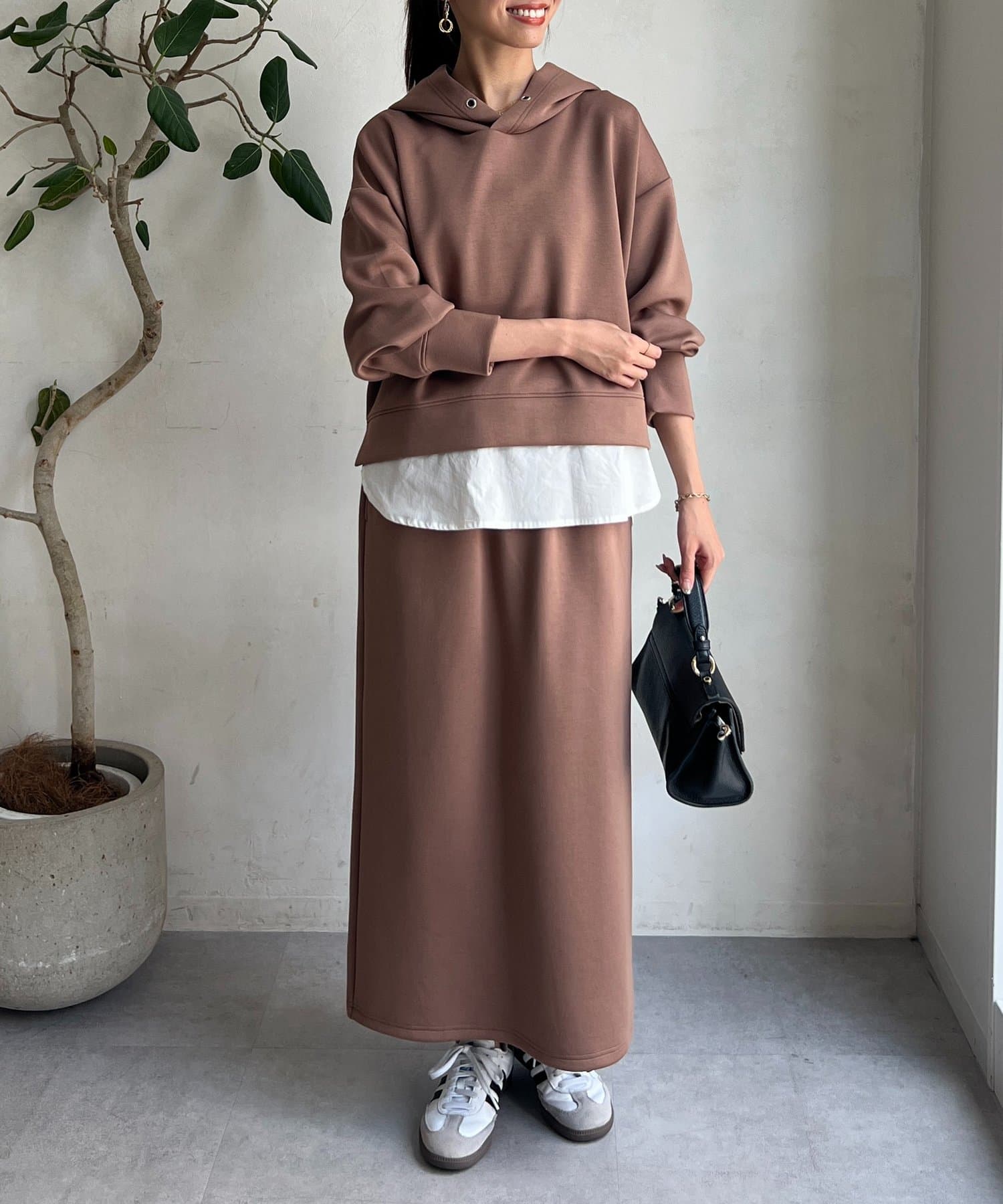ボンディングフードプルオーバー×ナロースカート