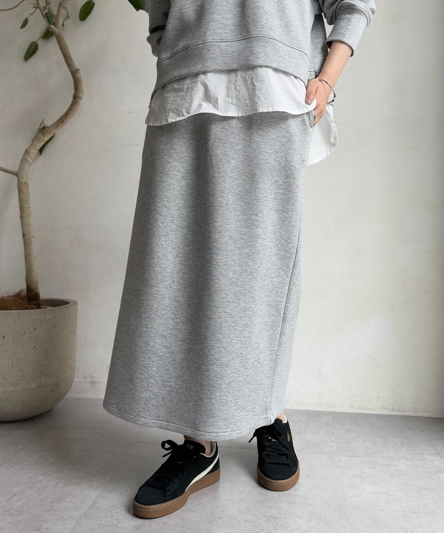 スカートは伸縮性抜群で、ウエストも総ゴムでストレスフリーな履き心地です♪