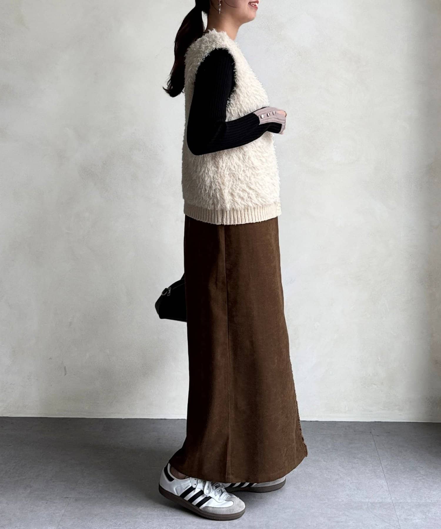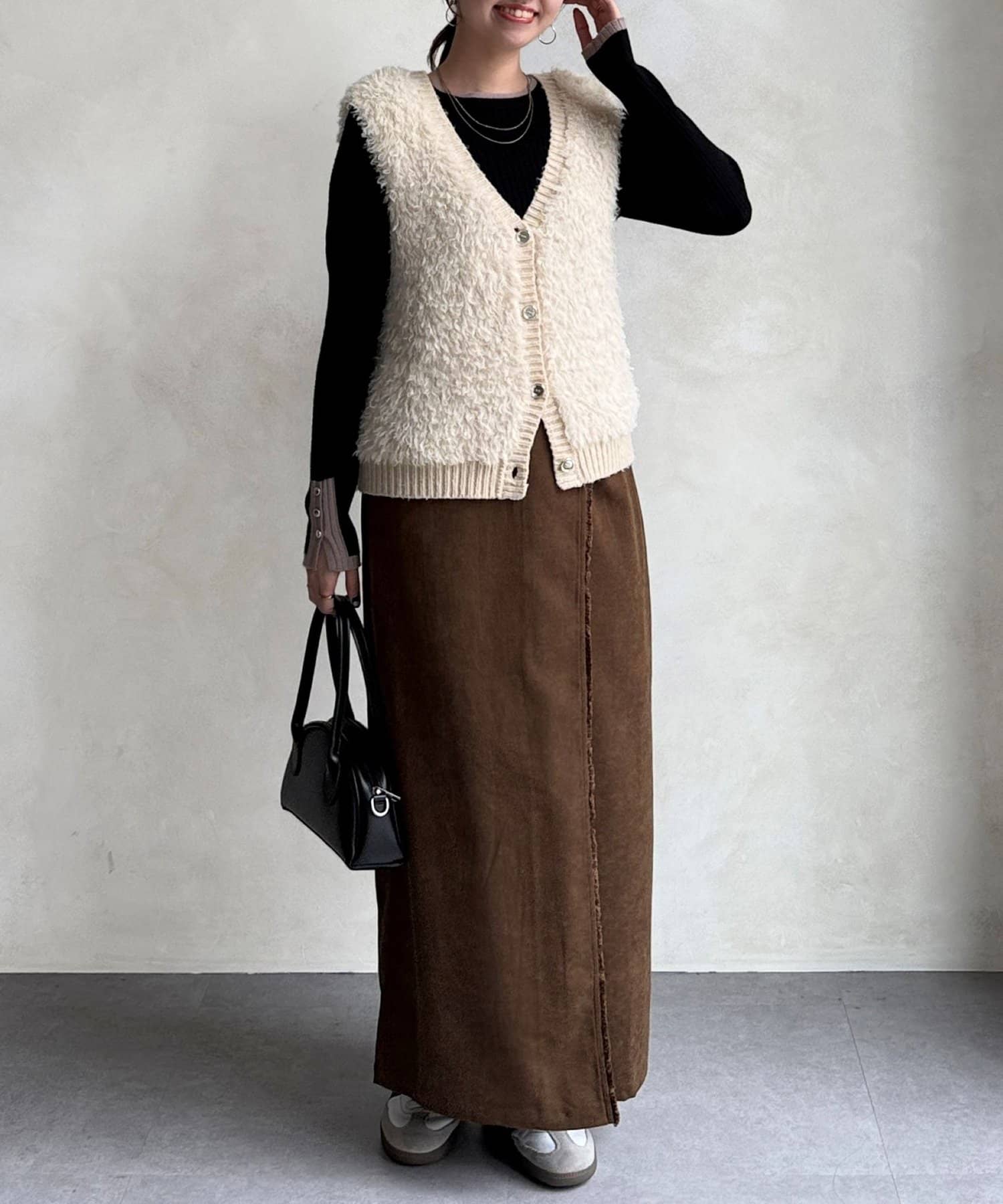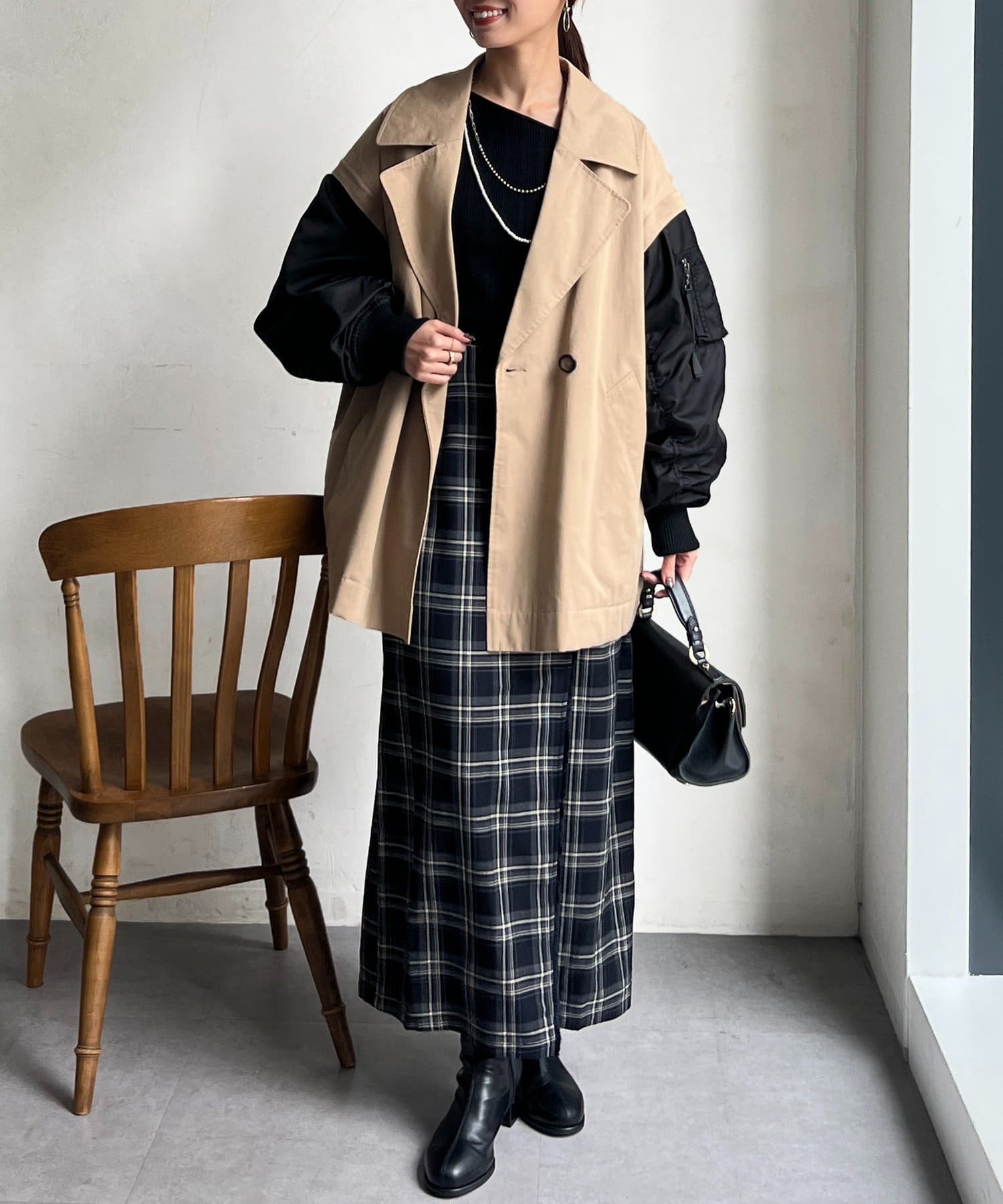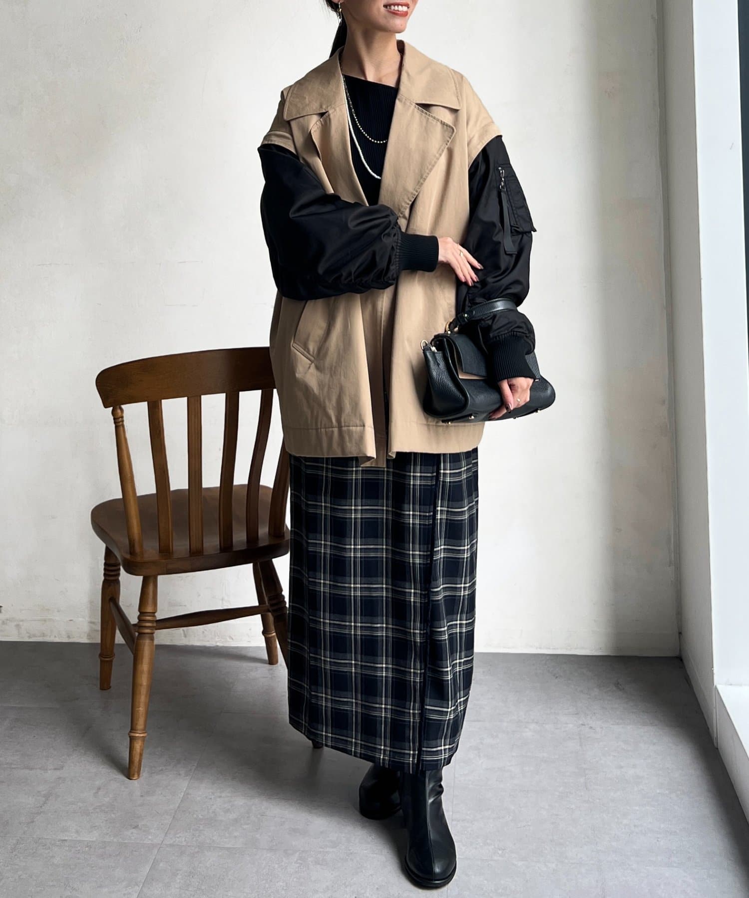 ジレやベストとレイヤードしたり、トップスでボリューム感をプラスするのがおすすめです!