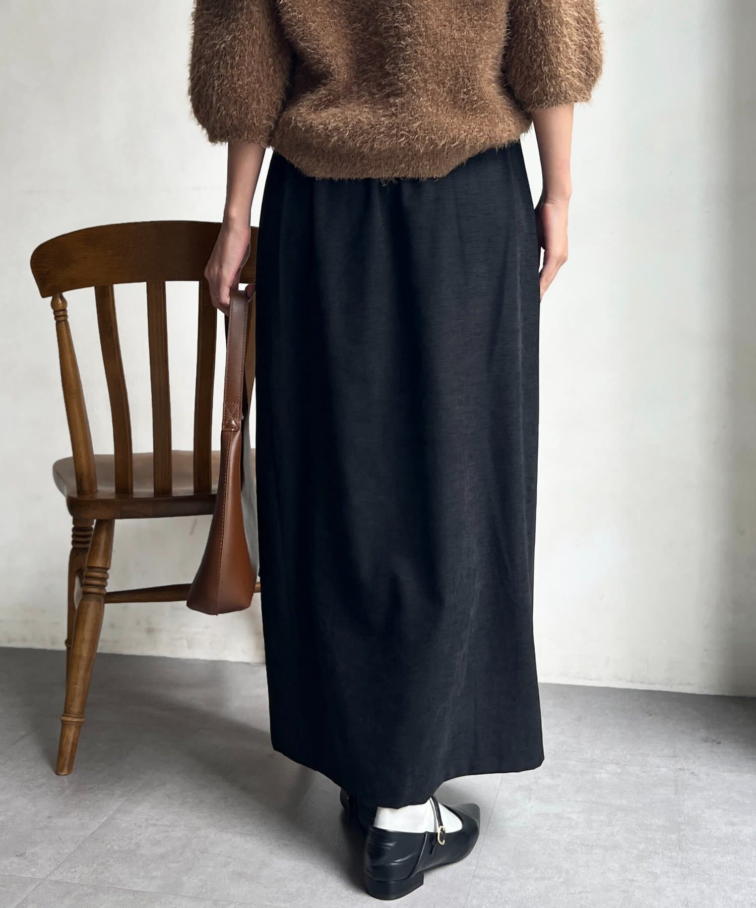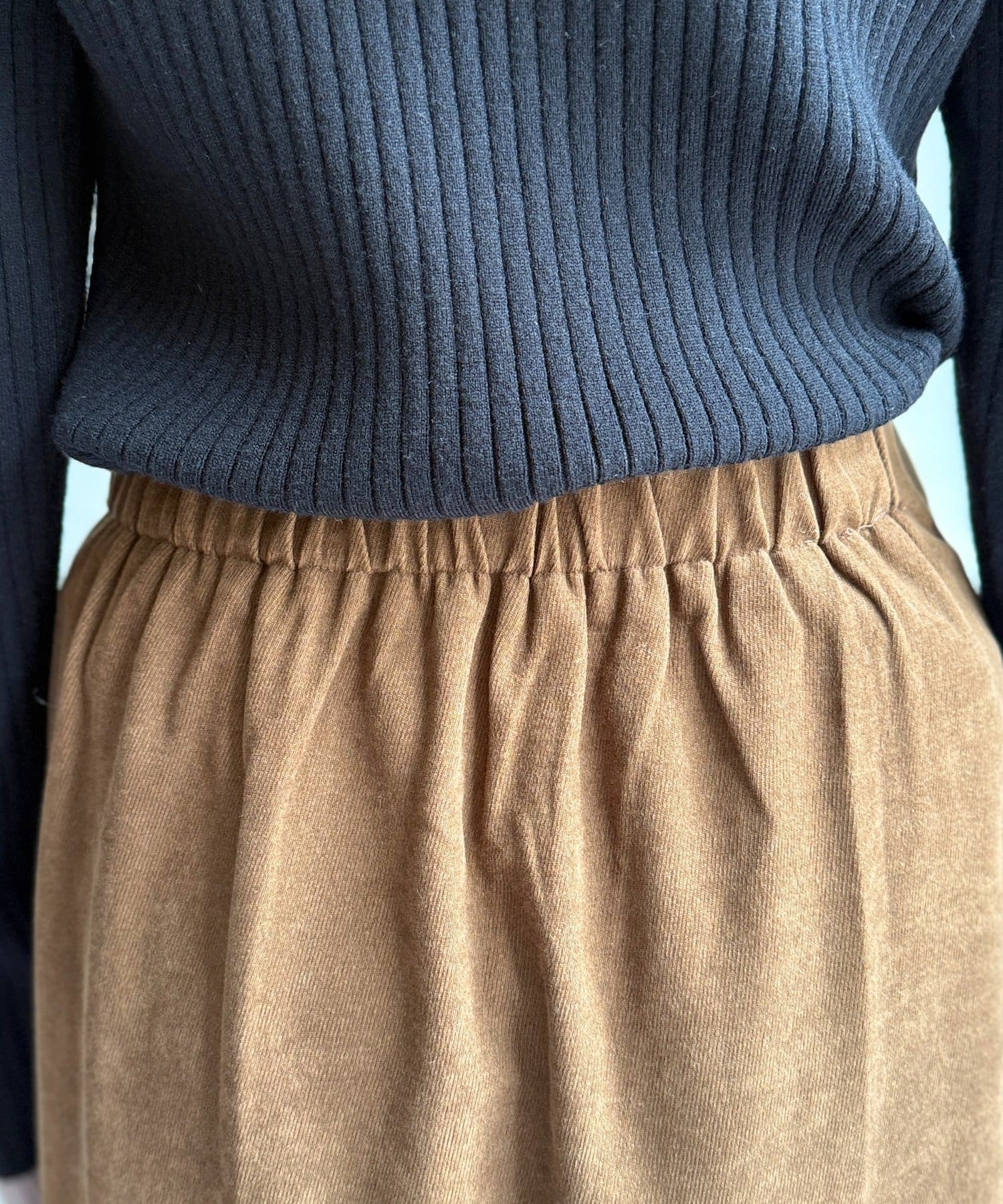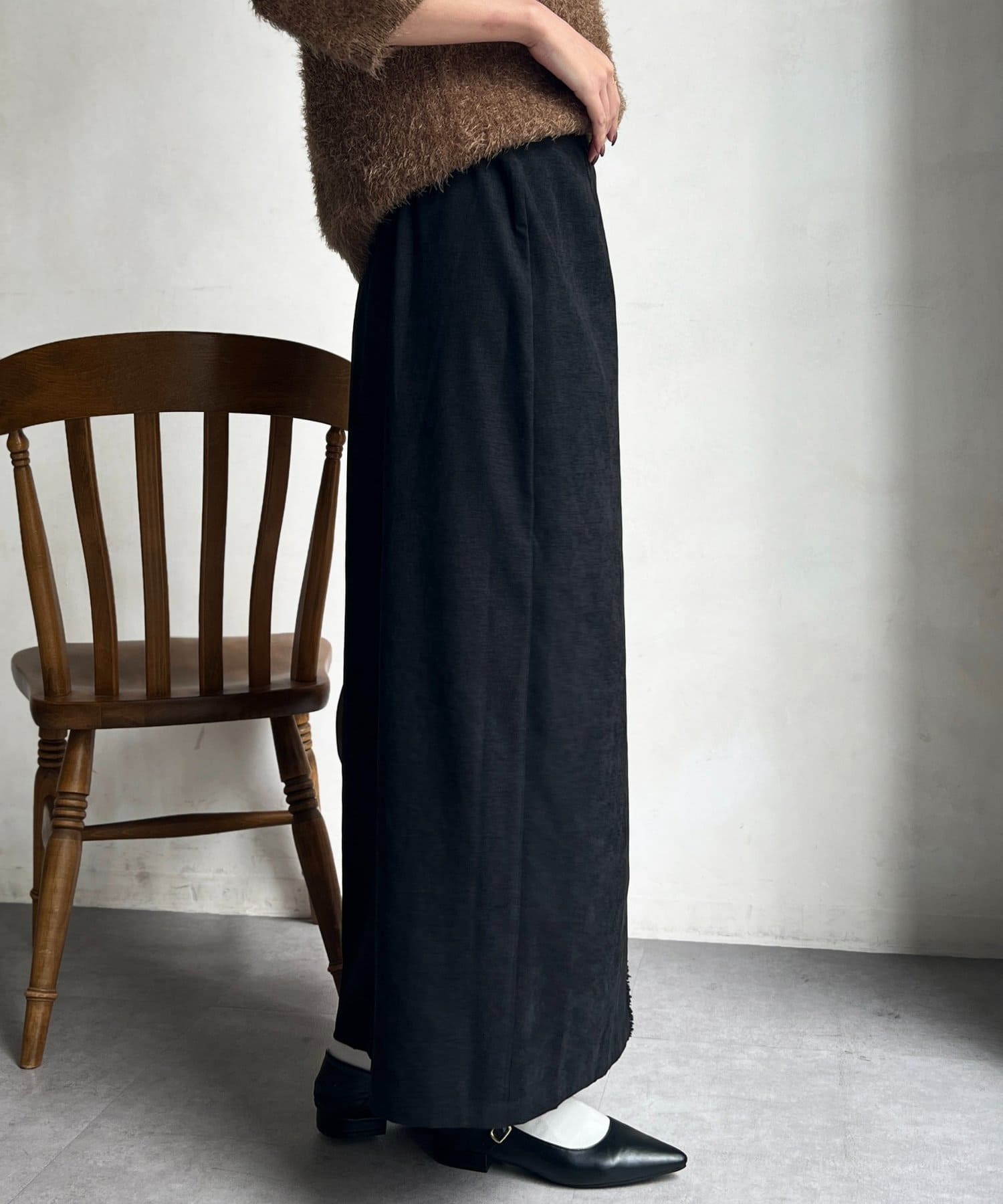 後ろウエストがゴム仕様でウエスト回りもストレスフリーで、着脱に便利なサイドジップ付きなのも嬉しいポイント◎